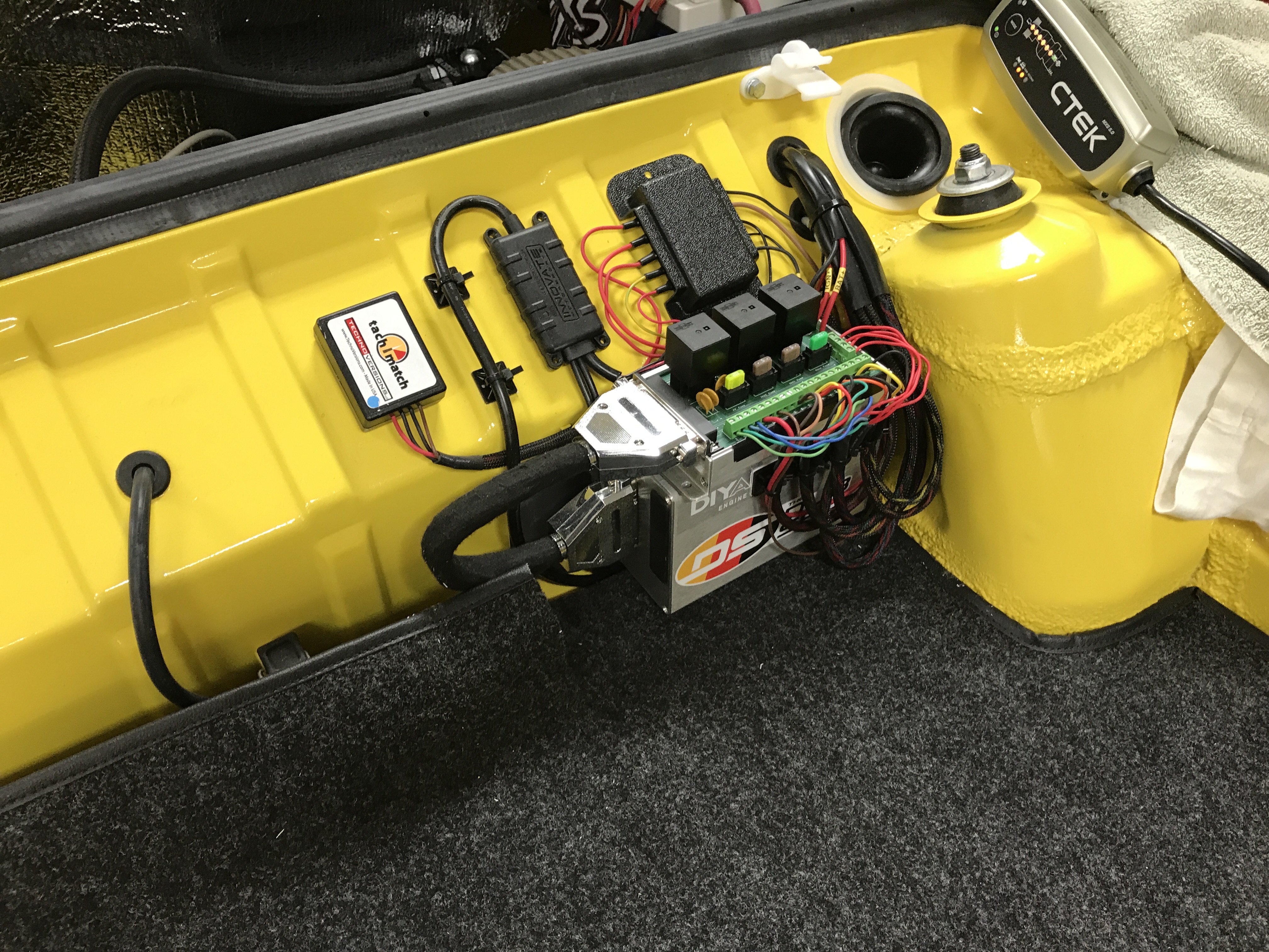 Here's my Megasquirt EFI and ignition control stuff, that needs some protection from other future stuff in the trunk.