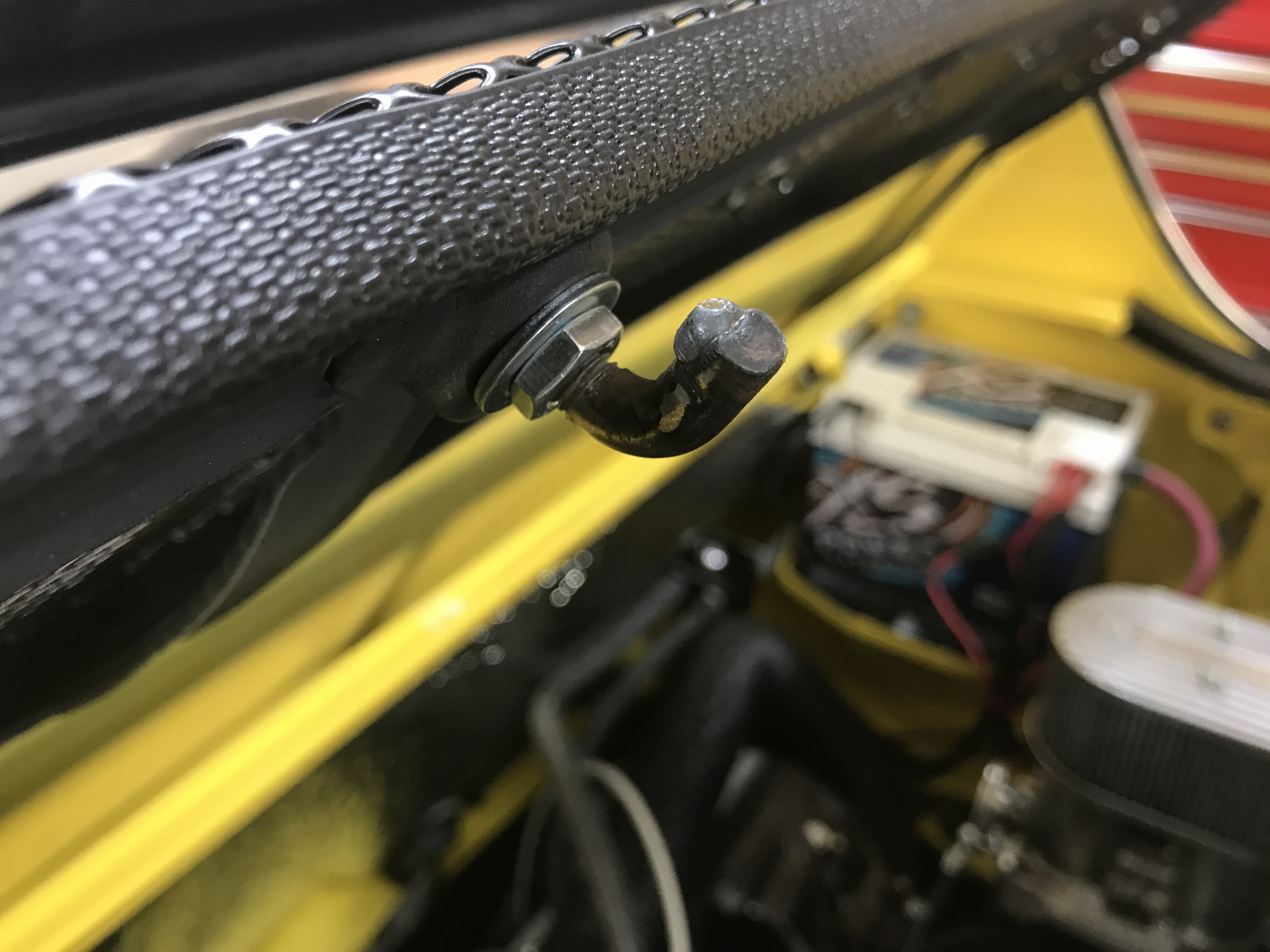 That reminded me of another little task. The engine lid latch has a lot of play. The latch hook end is very warn. Some of this might be the stock notch, but the diameter is much less.