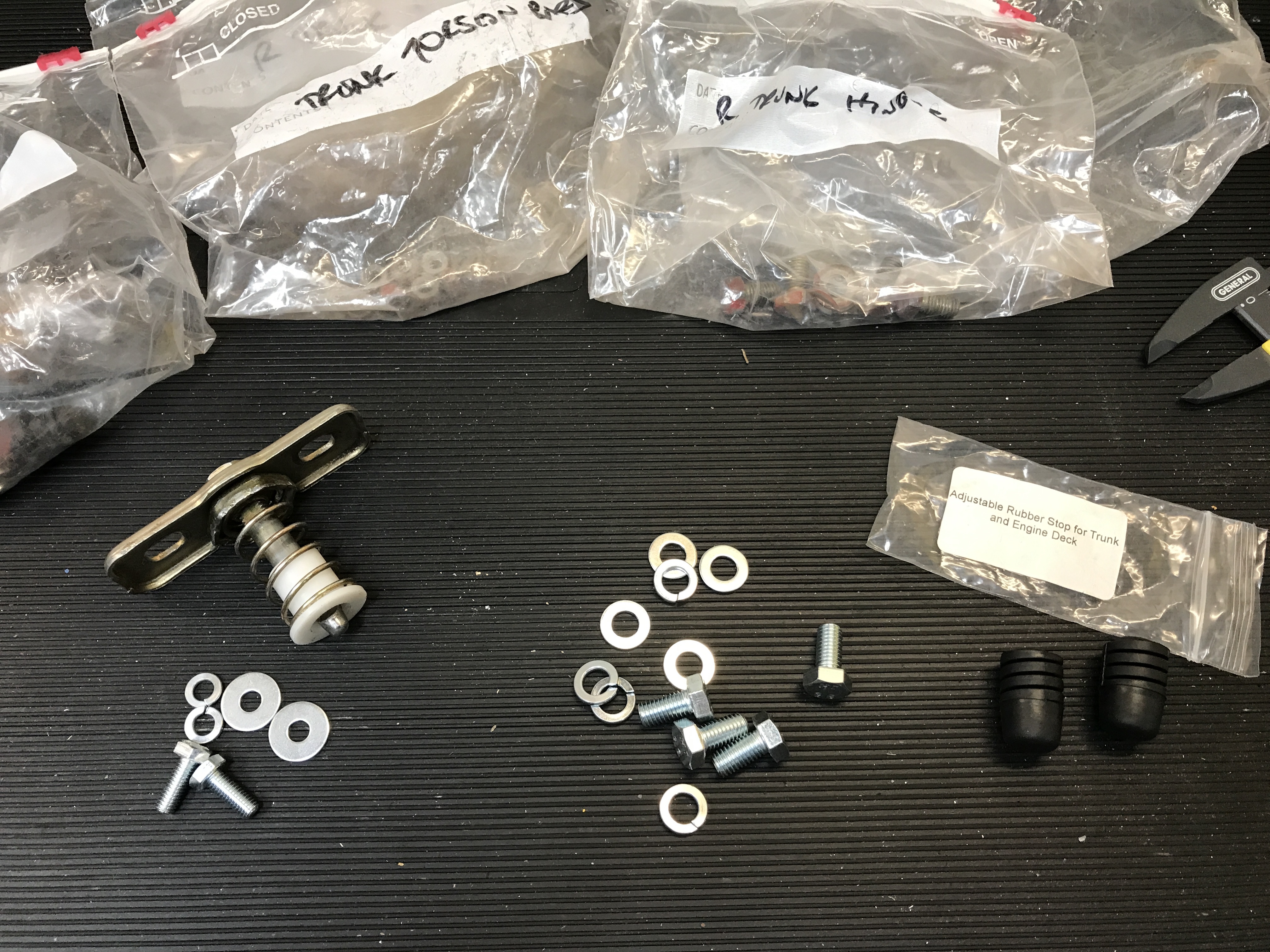 I got out the hardware for the trunk lid, including my rebuilt upper latch.