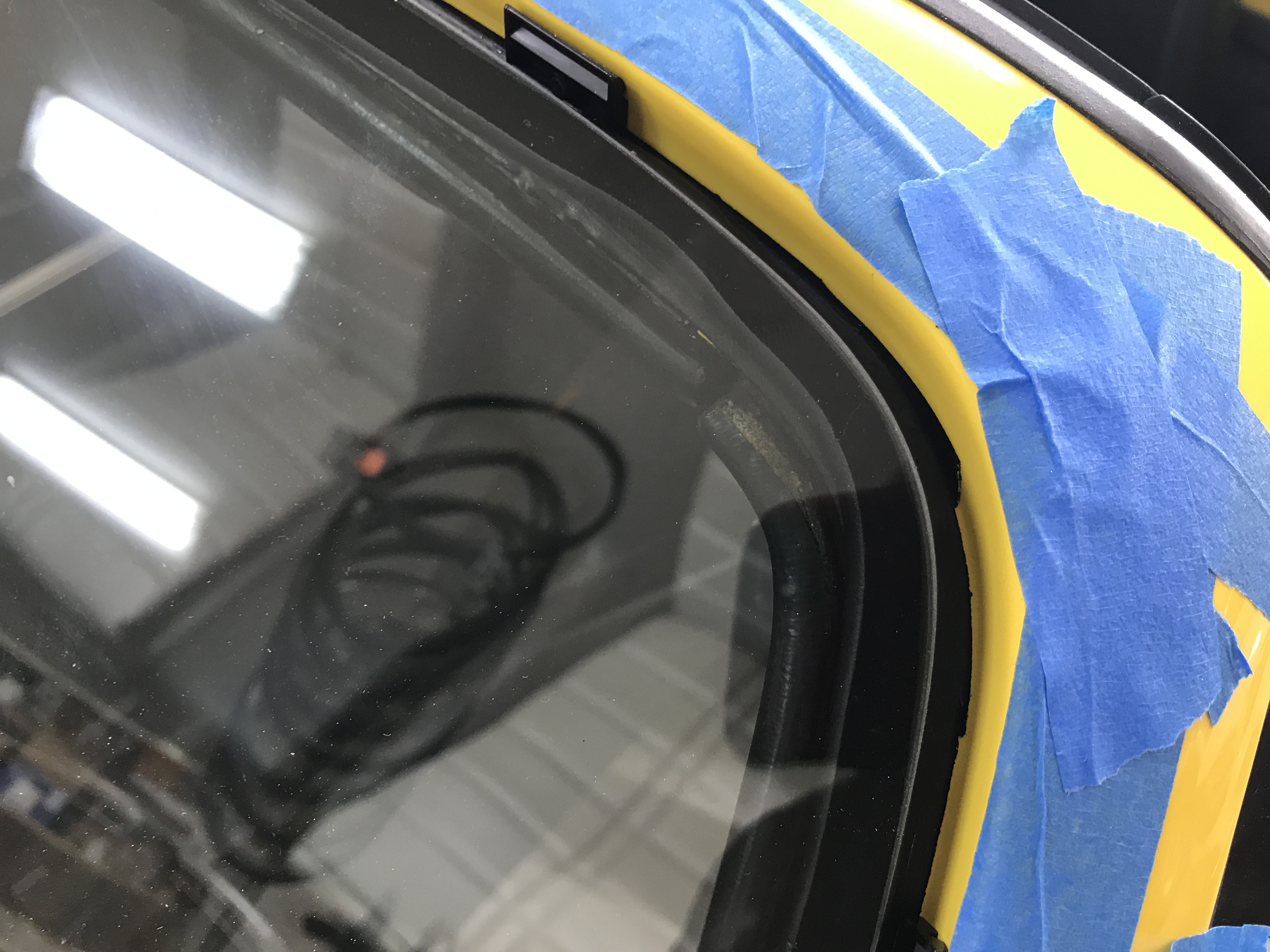 I took about 10 minutes to lay the butyl in the recess. At first, I put it about 1/8" back from the inner edge. When we started to lay the windshield in, I rolled the butyl inward to be even with the edge.