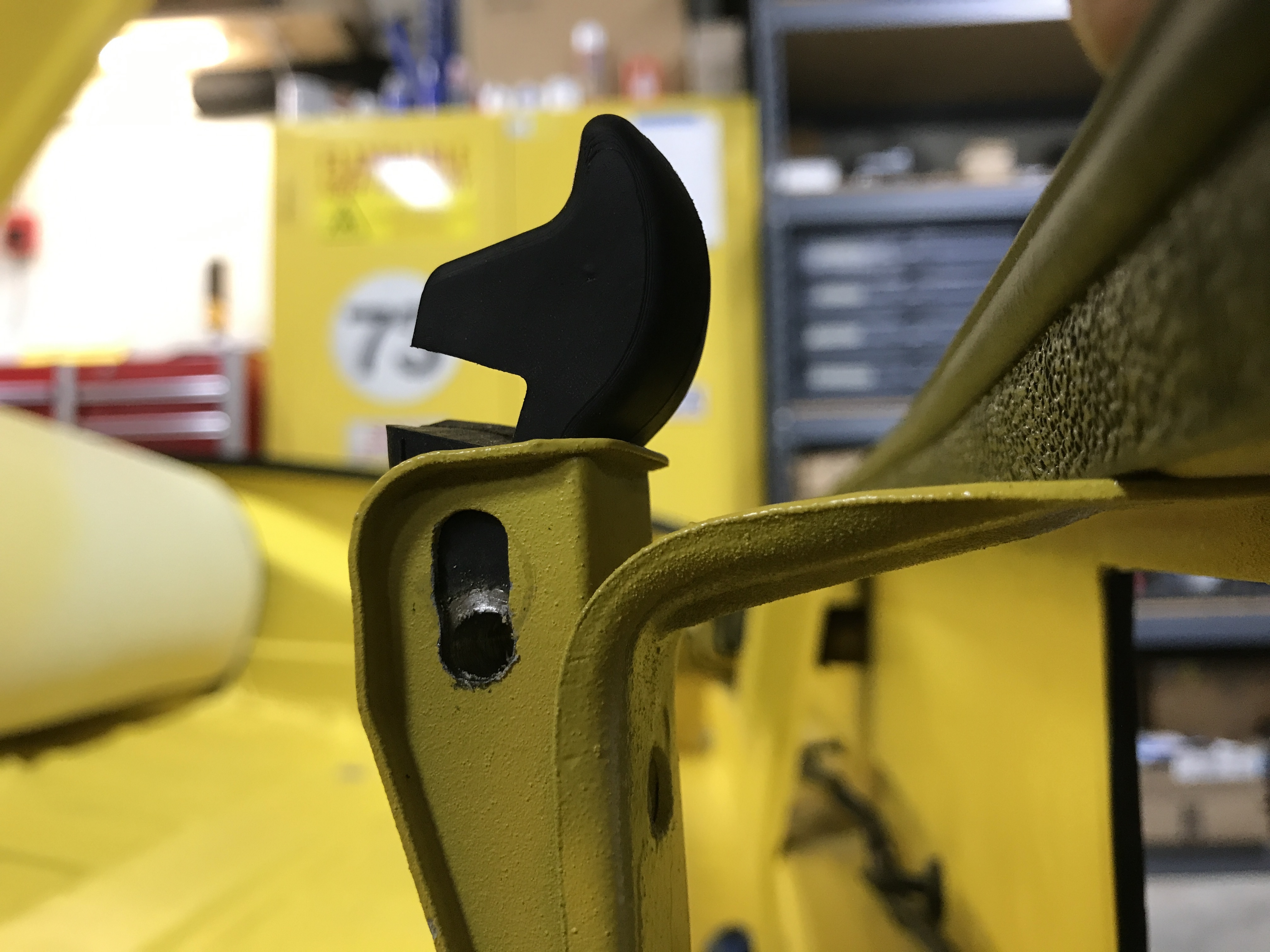 First attempt, with the pin installed. Good news: it latches. Better news: it opens.