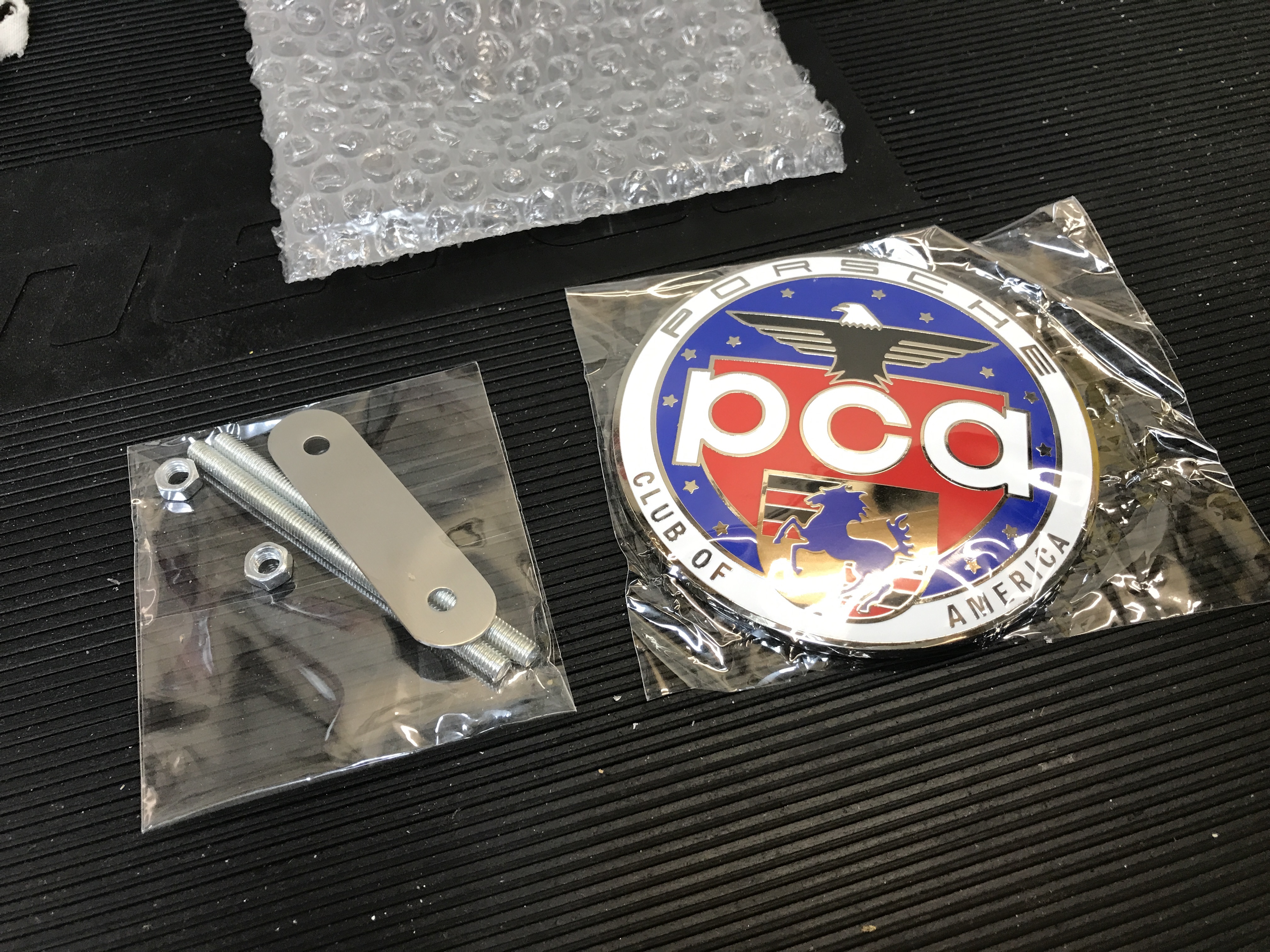 This has the same problem as the 914 World badge: the 5mm studs are too thick for the stock grill holes. And the stud spacing is not quite right.