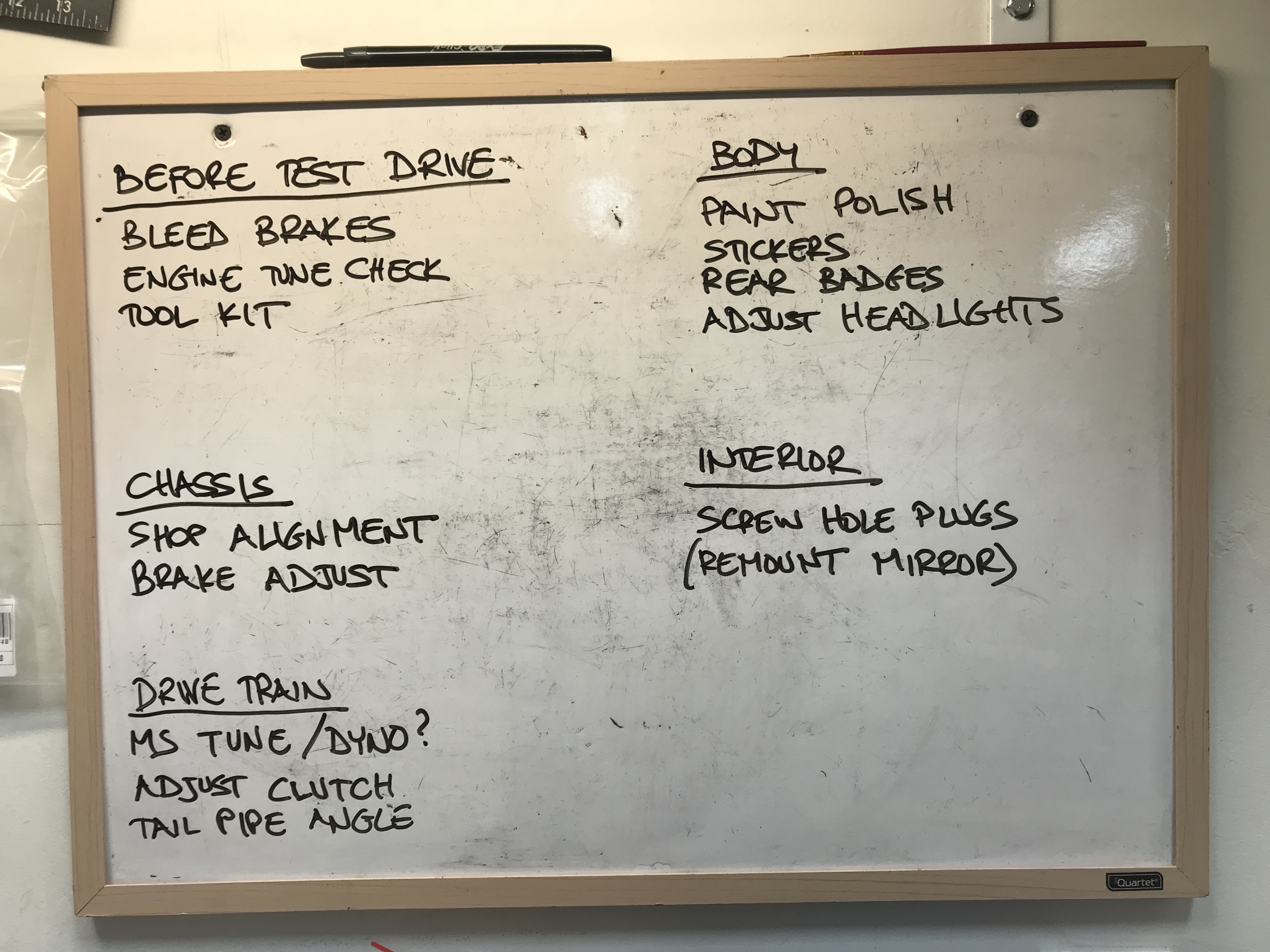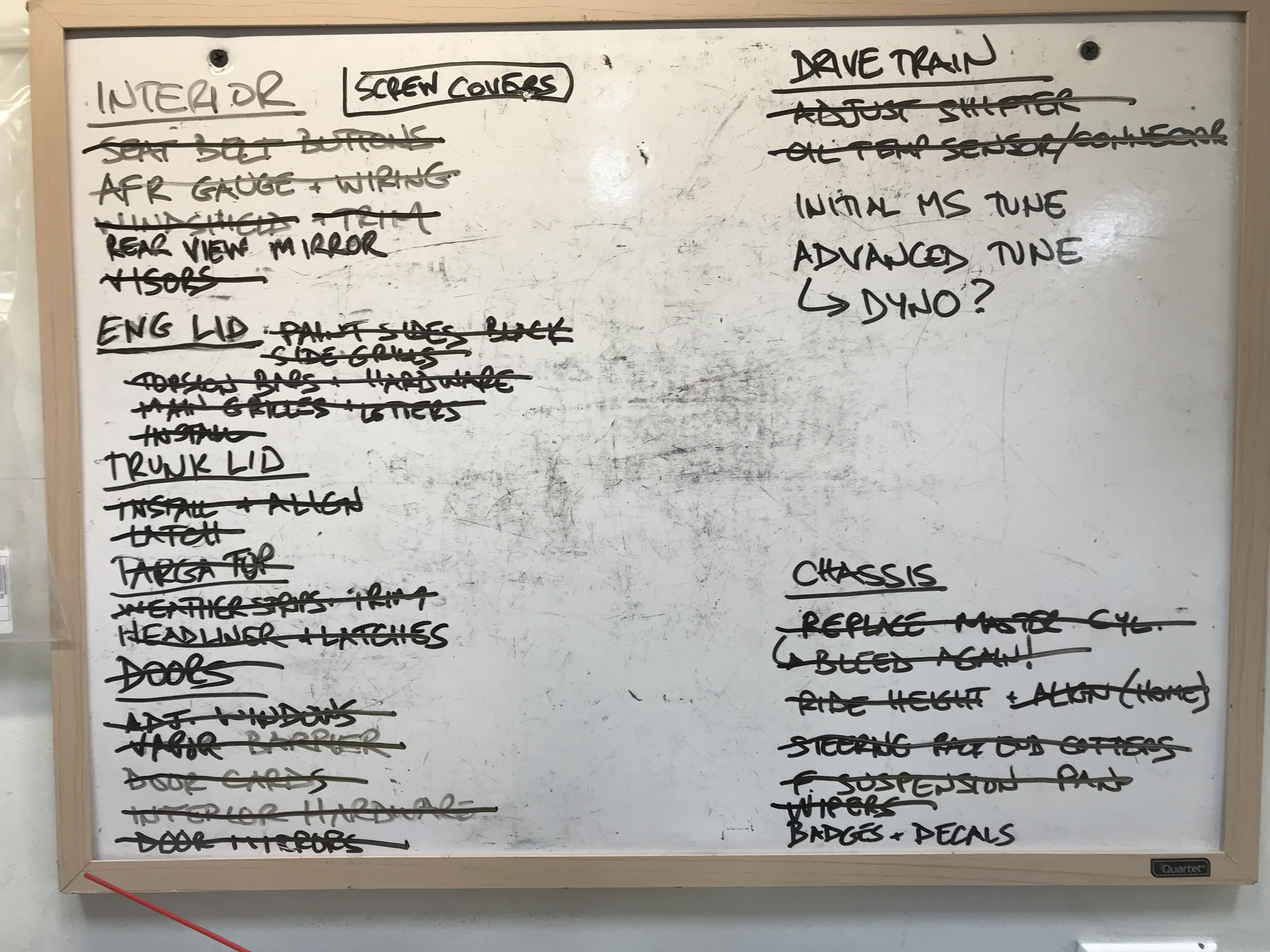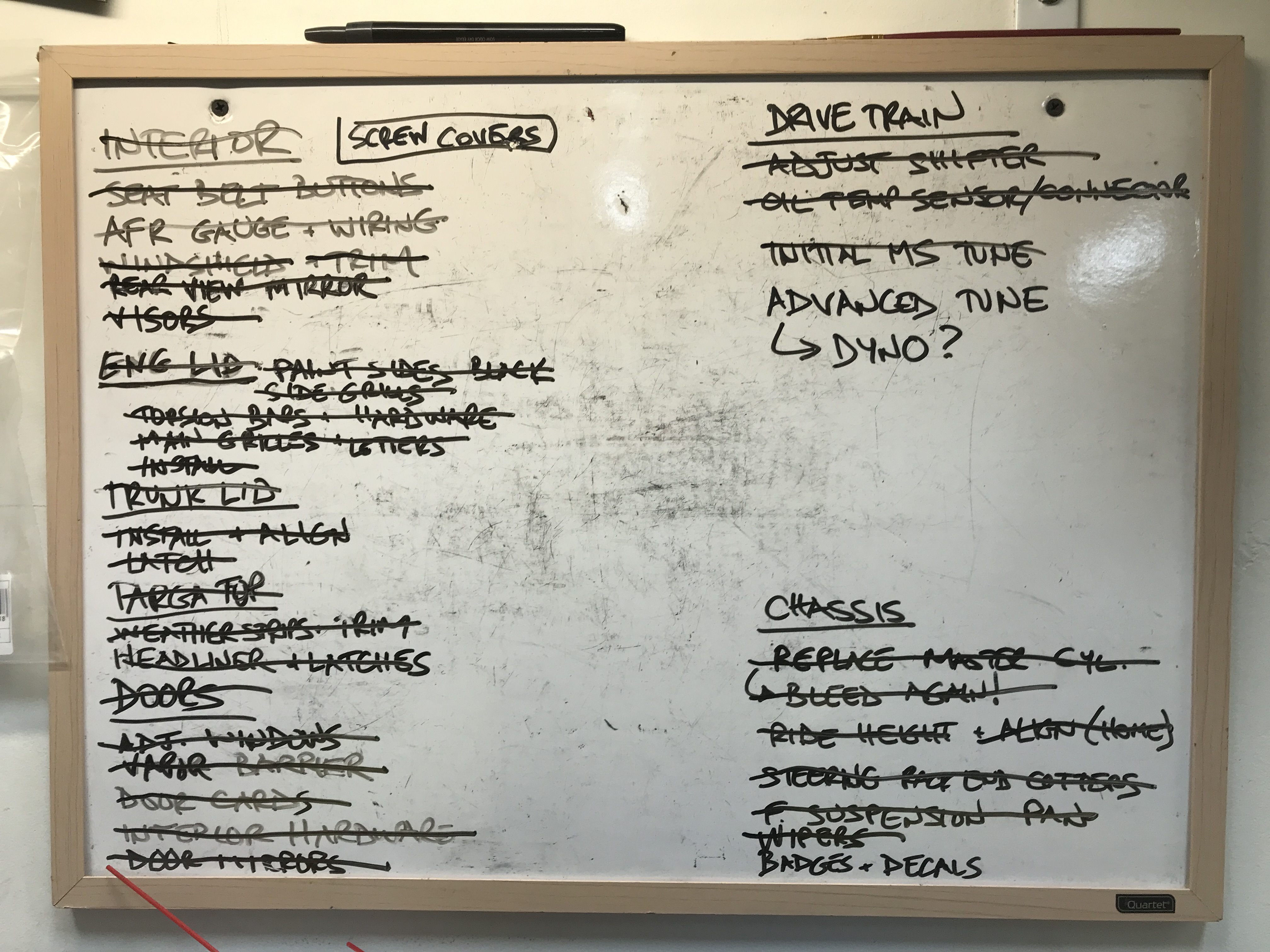 Of course, still lots to do before I can claim that overall the car is done (if ever). So here's the next set of lists.