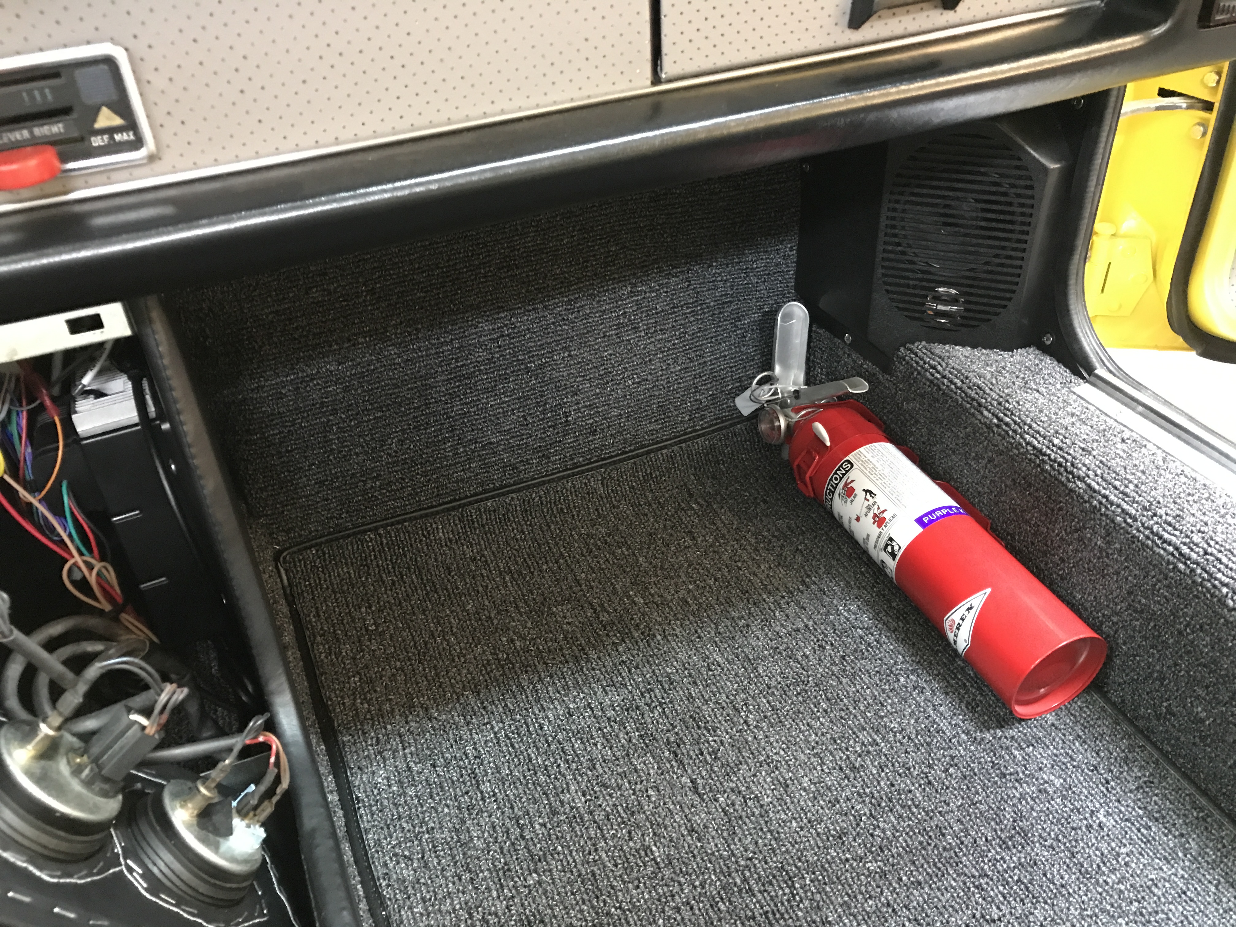 Now I need to mount my fire extinguisher someplace. I have one in every car, and especially want one in my 914. So far, I like this location best. Any other ideas?