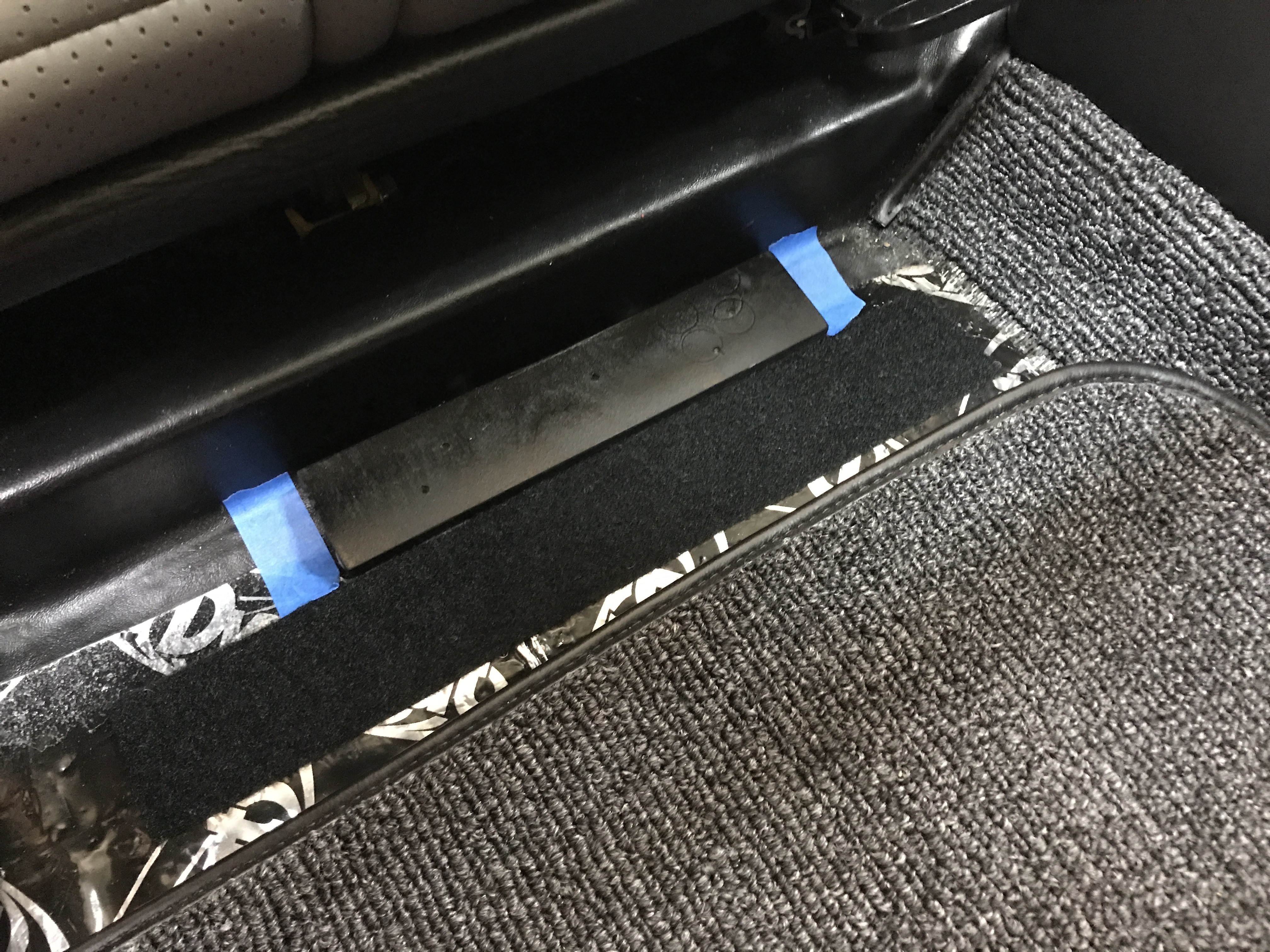 I decided to try this position, as most out of the way, protected for the trigger, and in reach of the driver. I thought about creating a bracket to bolt to the seat rails or bottom, and might try that someday.