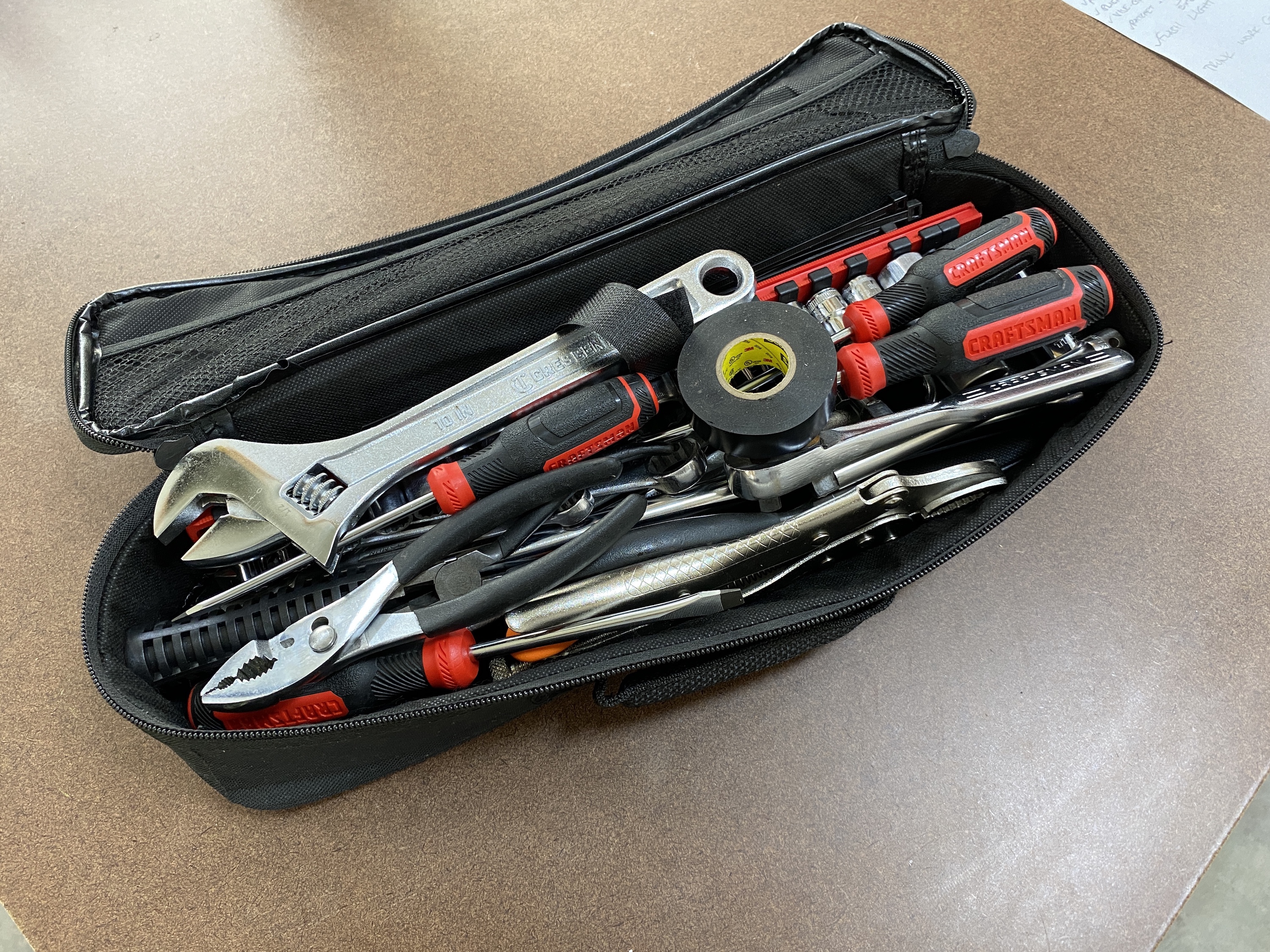 Every 914 needs a toolkit onboard, right? I have long been a fan of voodoo, at least the kind that seems to prevent any incidents I am prepared for. I grabbed some old tools and some new ones, and a tool bag that was sitting on a shelf. This includes wrenches, pliers, screw drivers, sockets (including a 19mm deep socket and breaker bar for lug bolts), and a few other things.