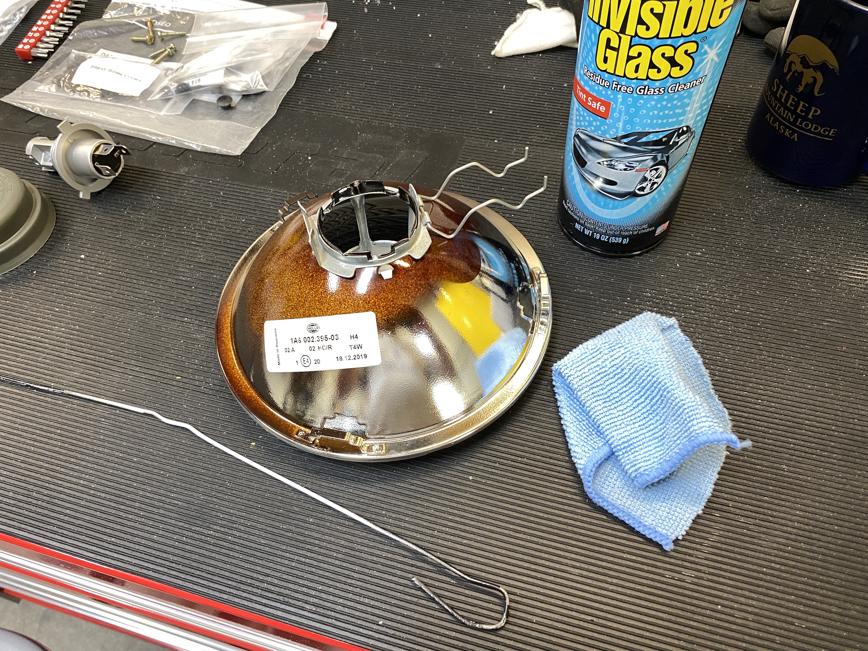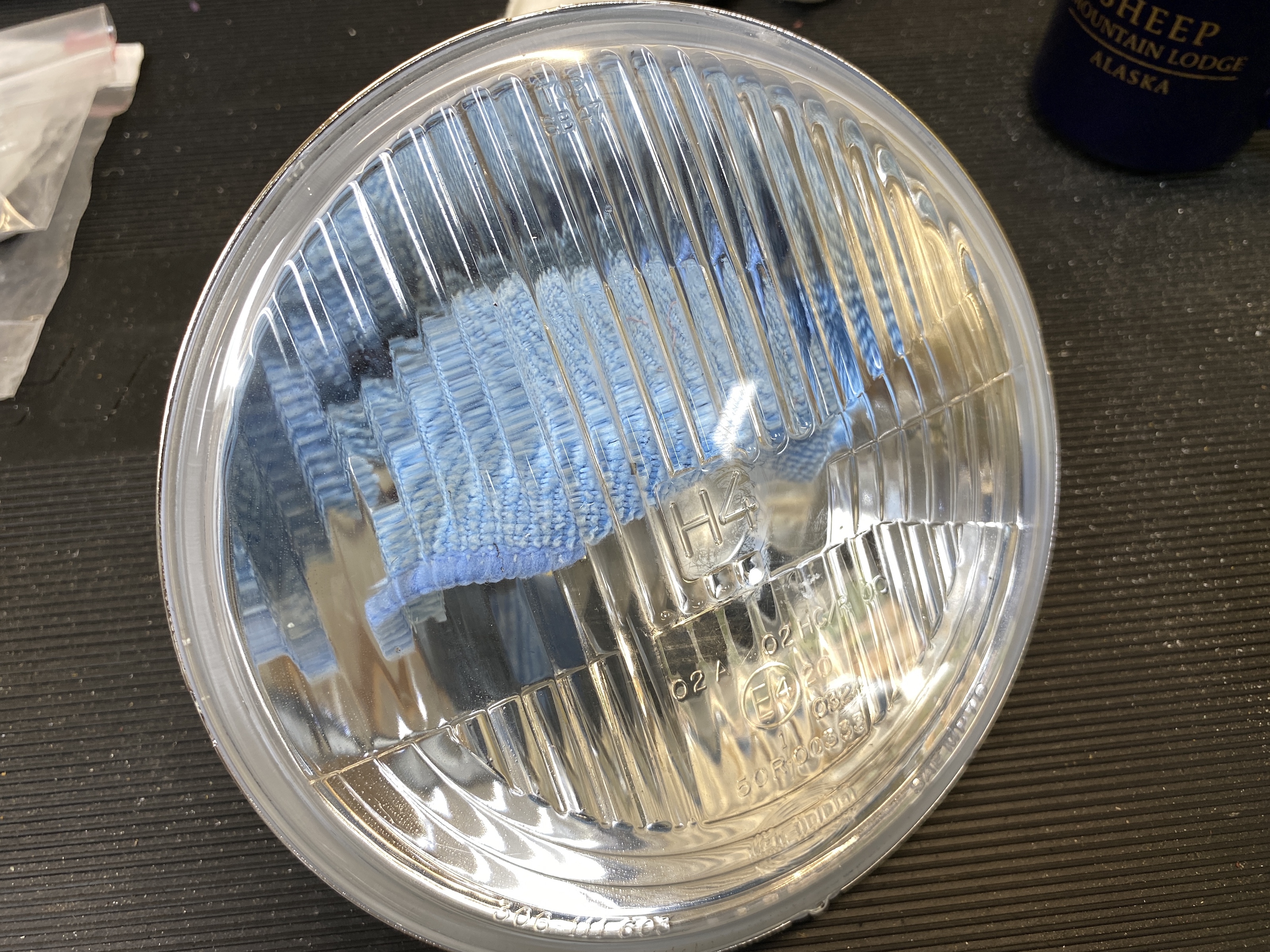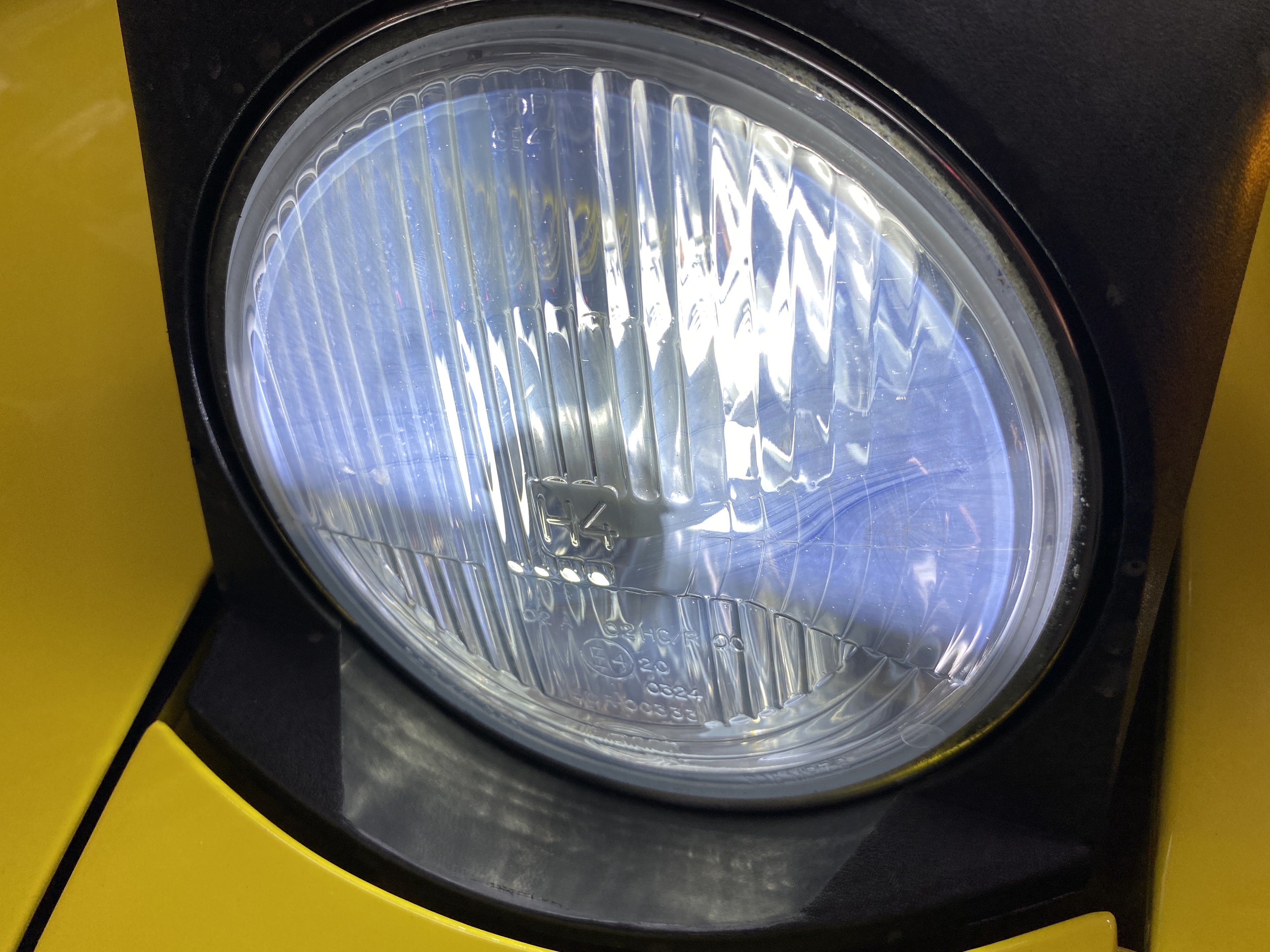 I tackled the headlights today. It might be hard to see, but the general fogginess of the lens, and the bands on the right, are on the inside. This was not how they looked when installed.