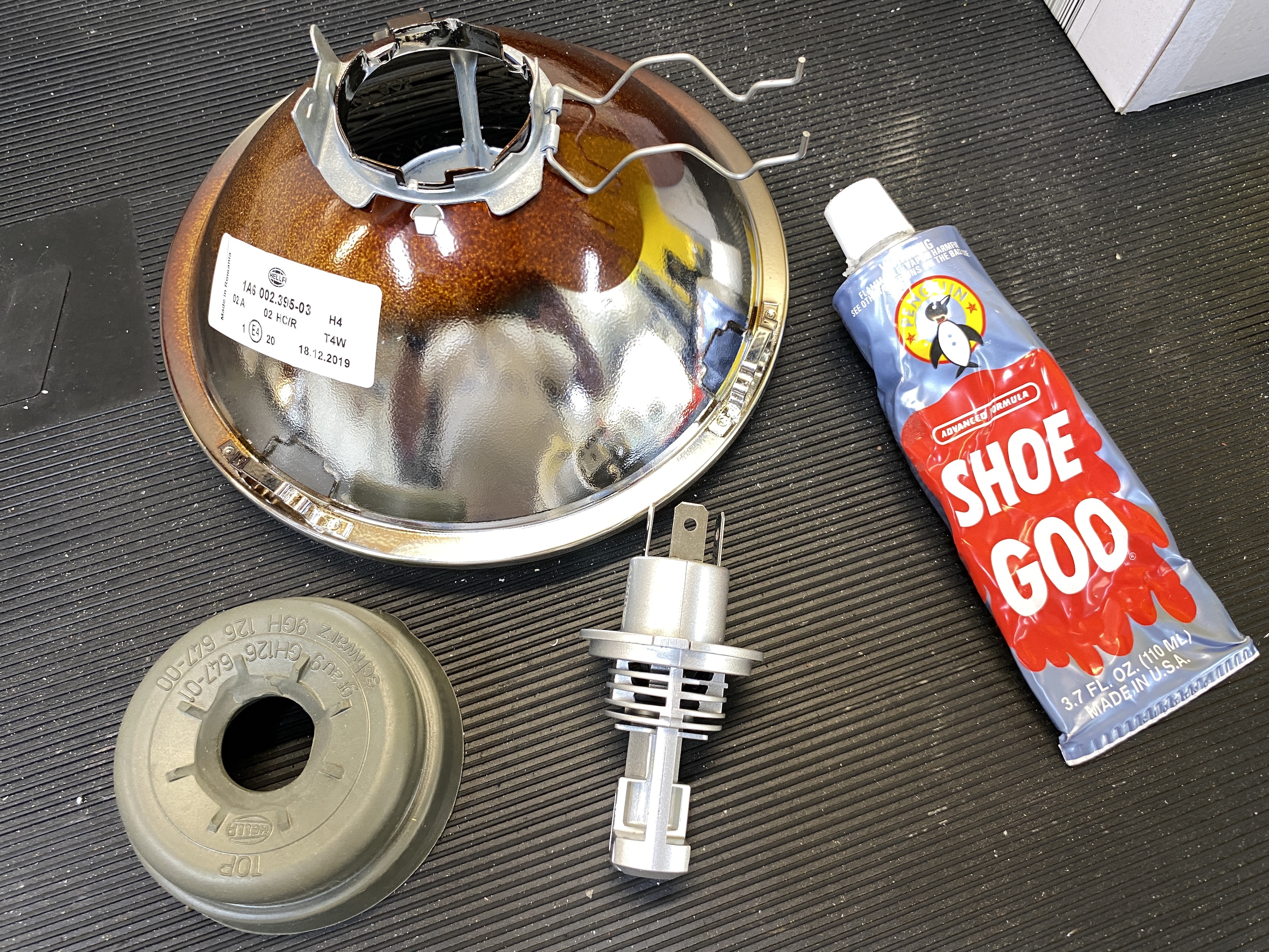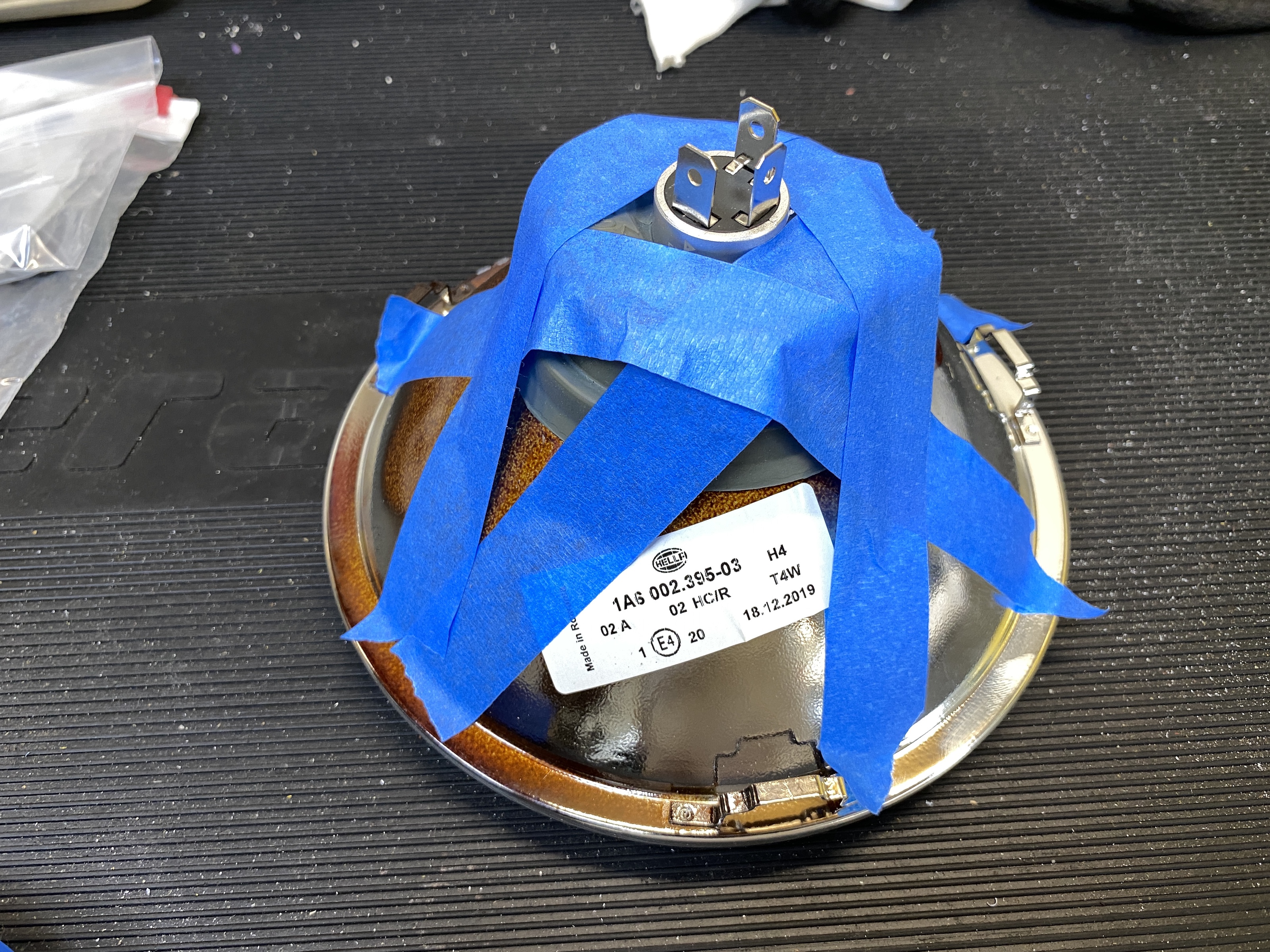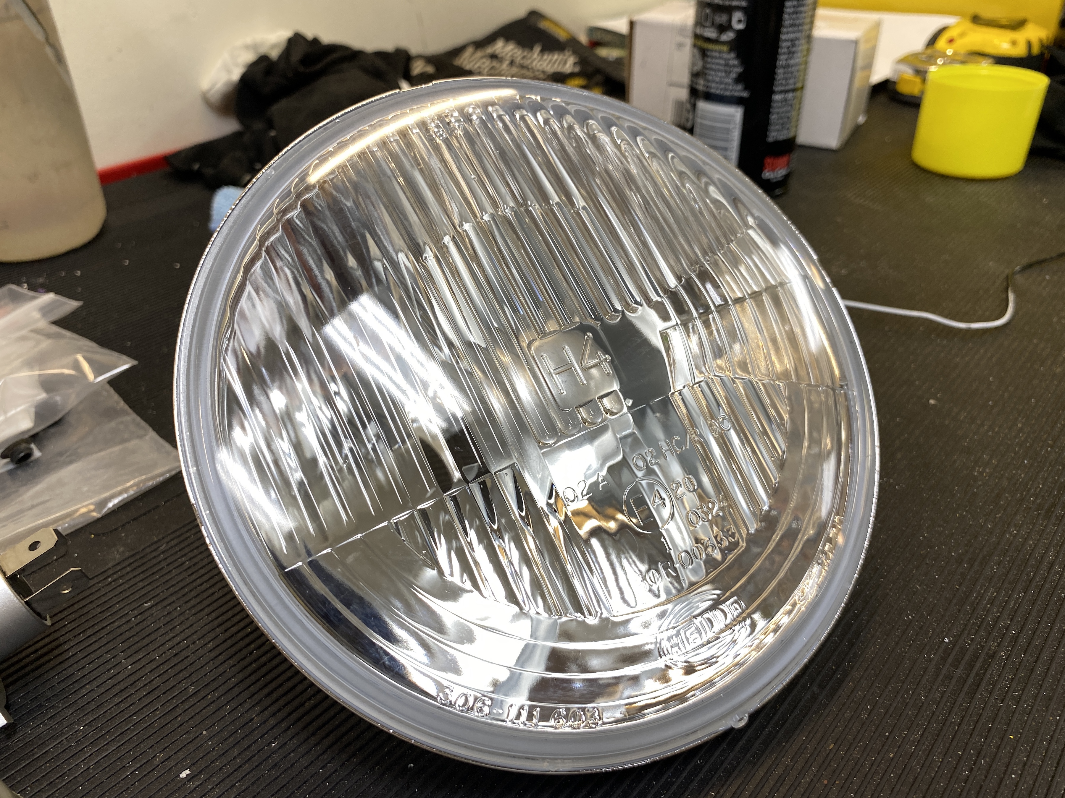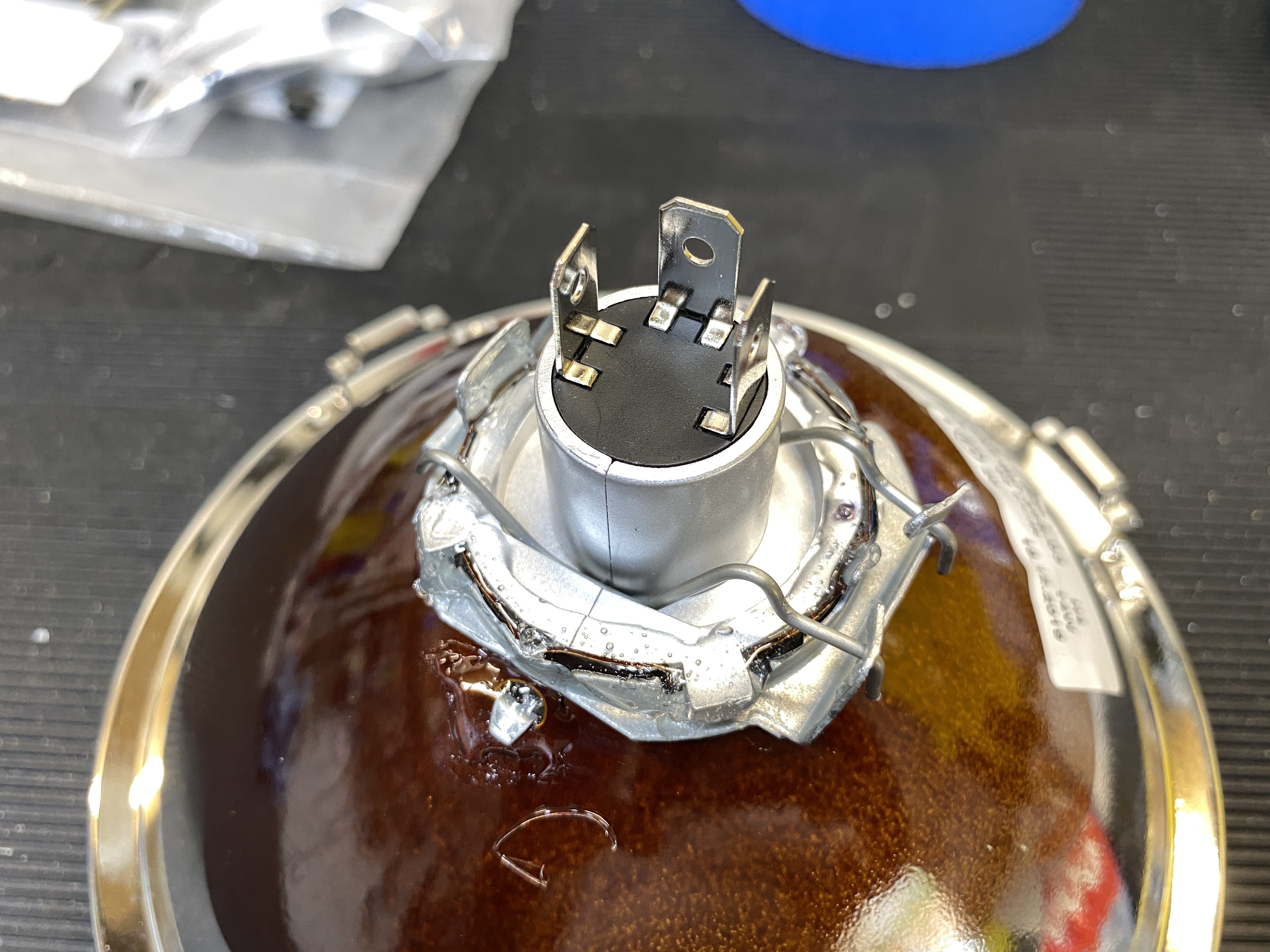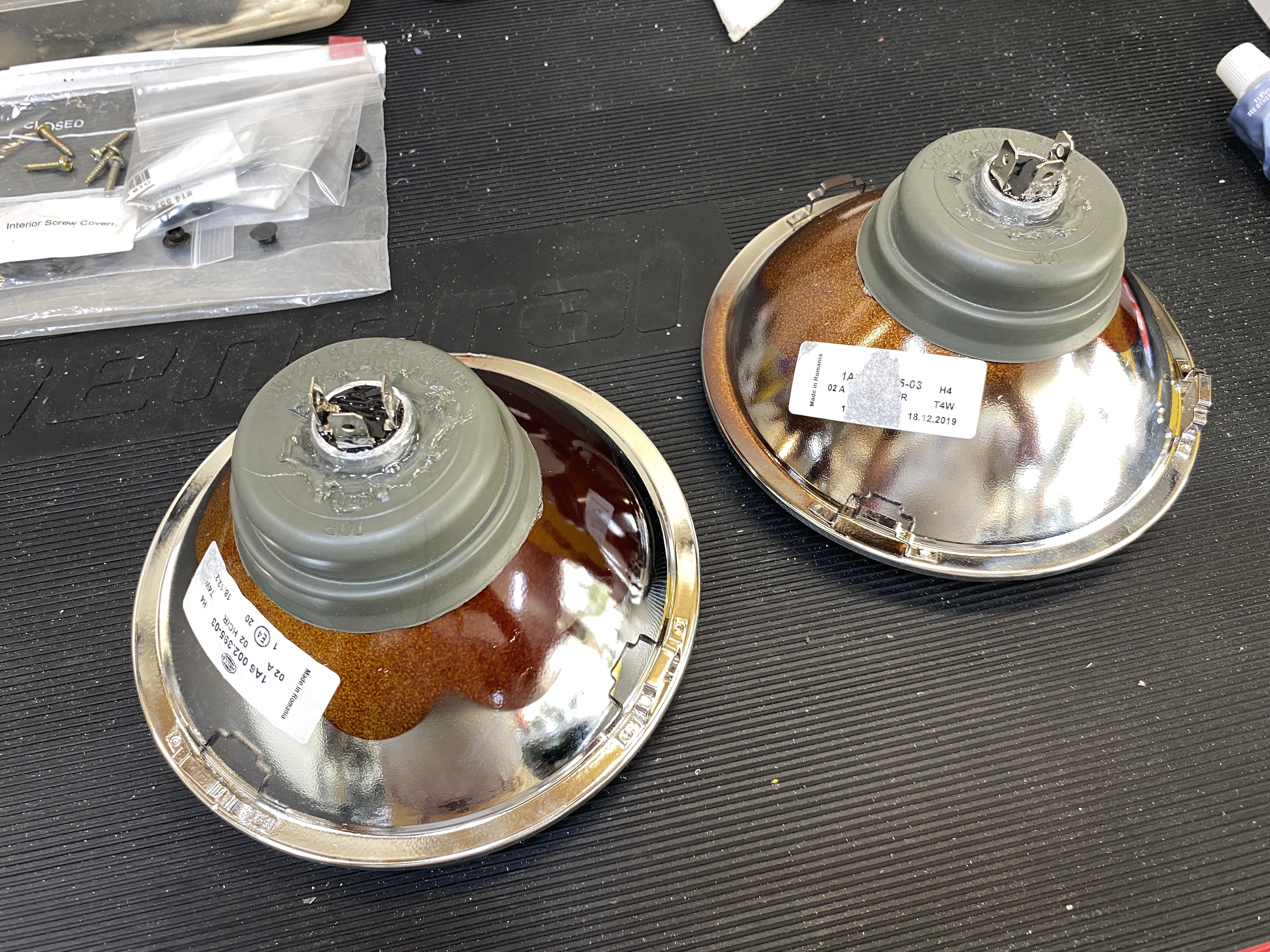 Headlights ready to instal, with a bead of goop around the bulb itself.