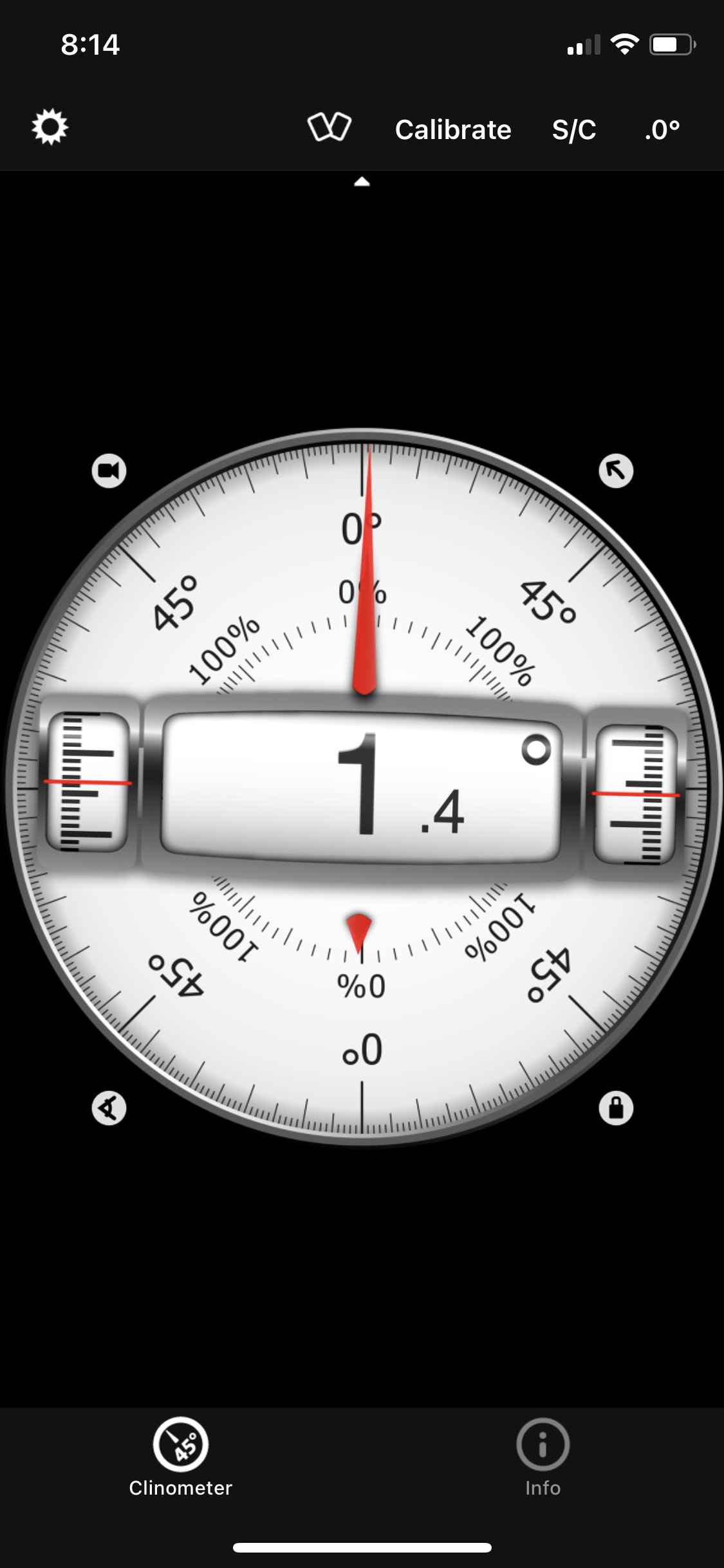 I also tried using my iPhone, with a clinometer app that claims 0.1° precision. To use the phone I had to hold it against a straight edge, while holding a straight edge against the rim, and with a spacer in-between so the phone side buttons did not screw up the measurements.