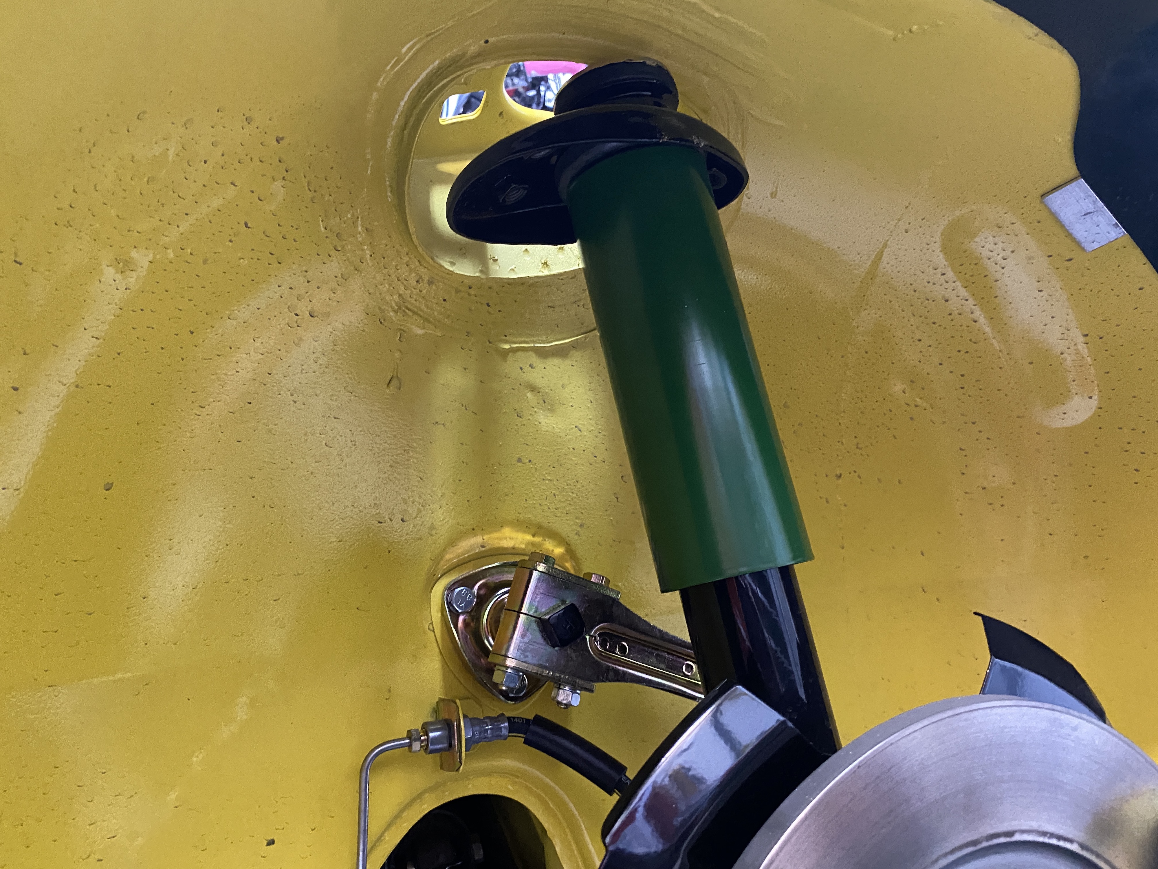 But...the front right strut top is already as far to the outside as possible. To reduce the camber by about 0.4° I need to get the strut top further out. I will also raise the ride height a bit.