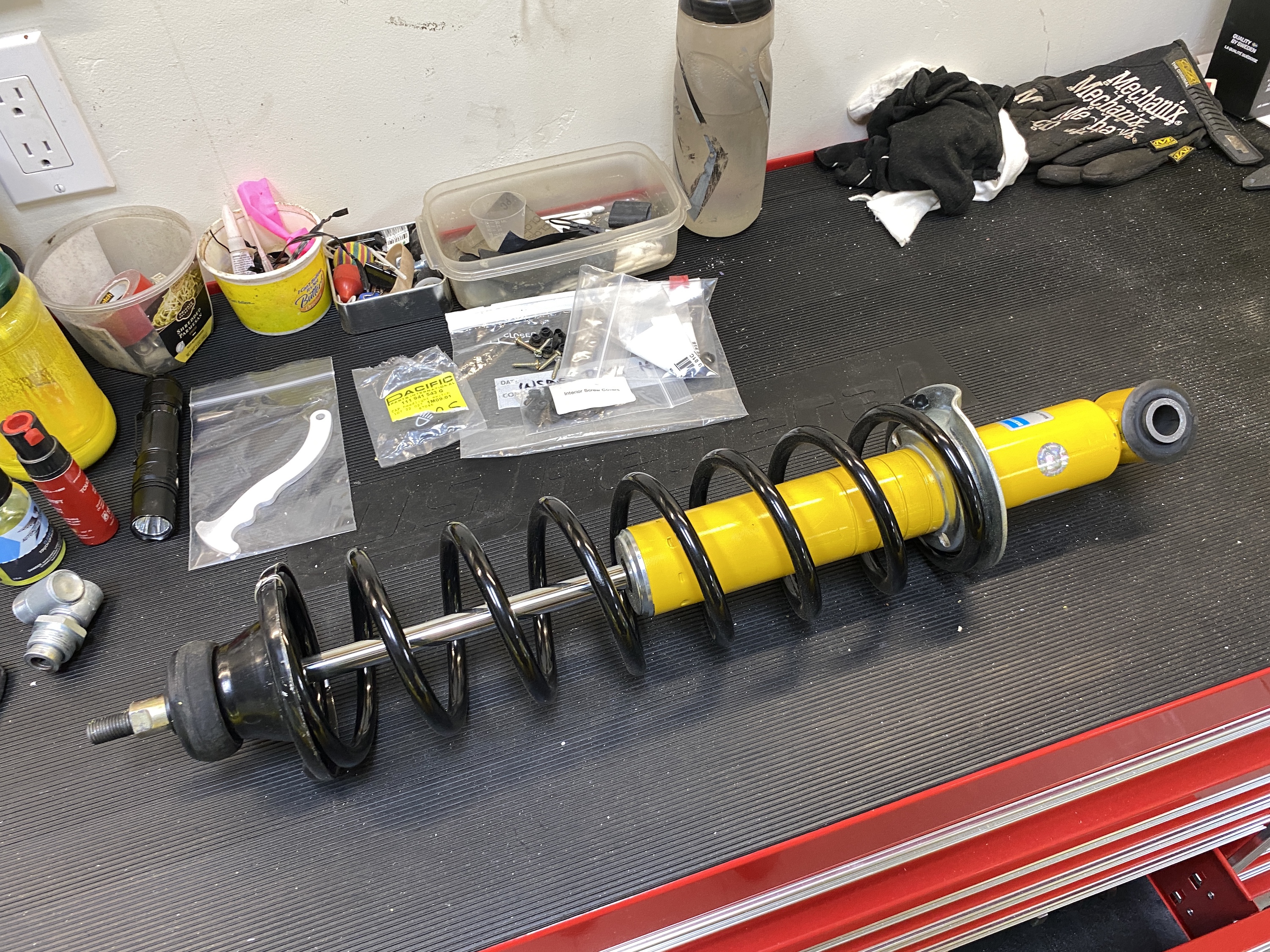 Meanwhile to keep the rear in sync with ride height changes, I pulled both shocks.
