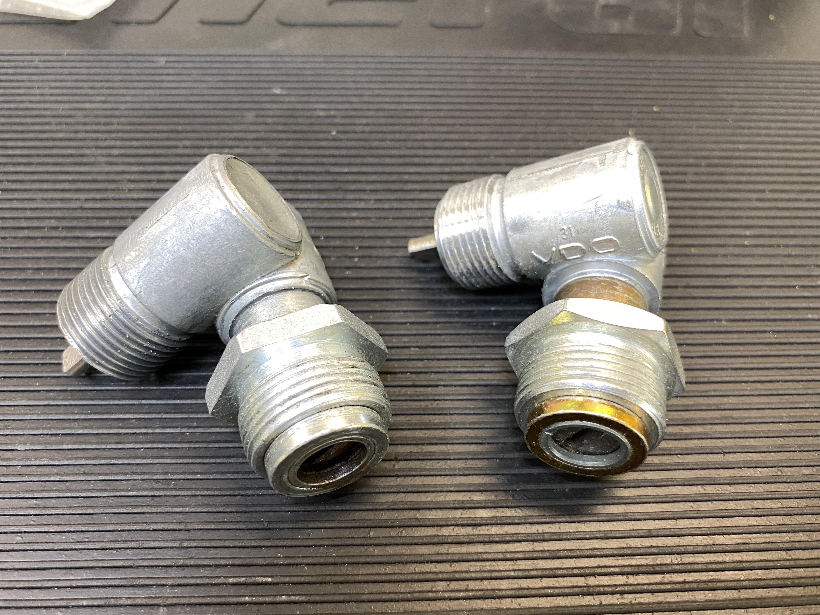 Back on the job. Before finishing the alignment, I installed my new speedometer angle drive. The new one (on the right) is by VDO, and has number markings, compared to the no-name unit on the left. Most important, the new drive spins correctly.