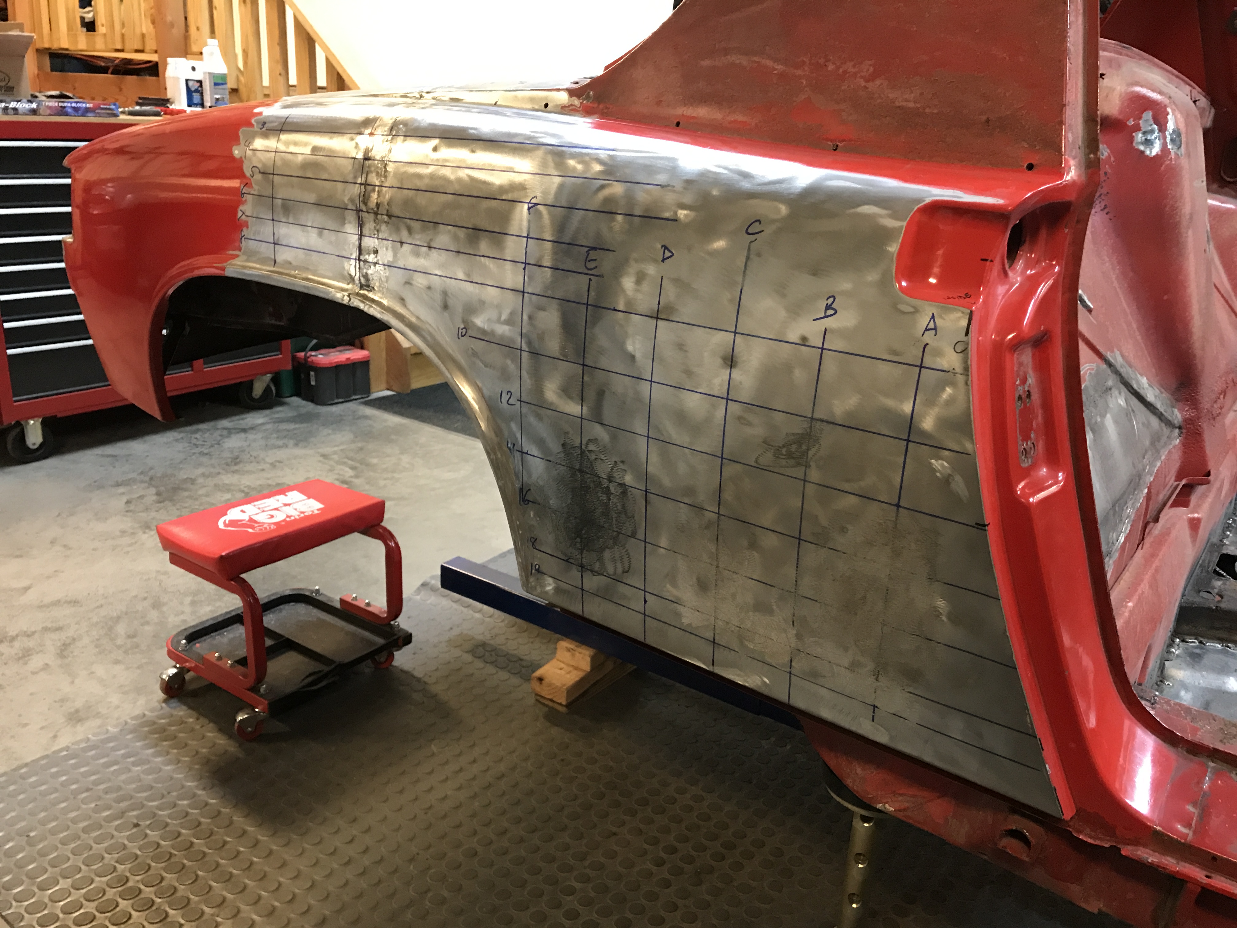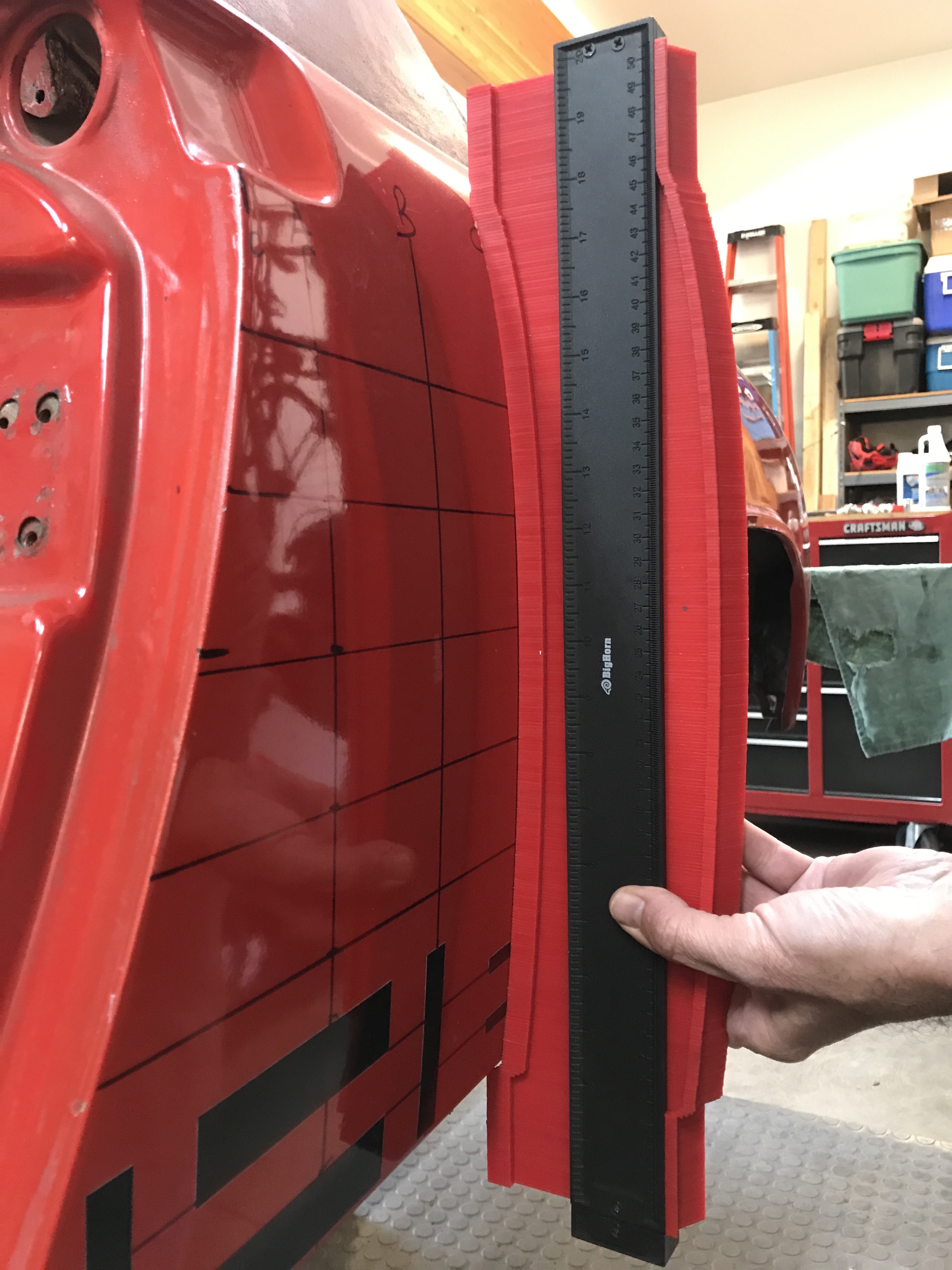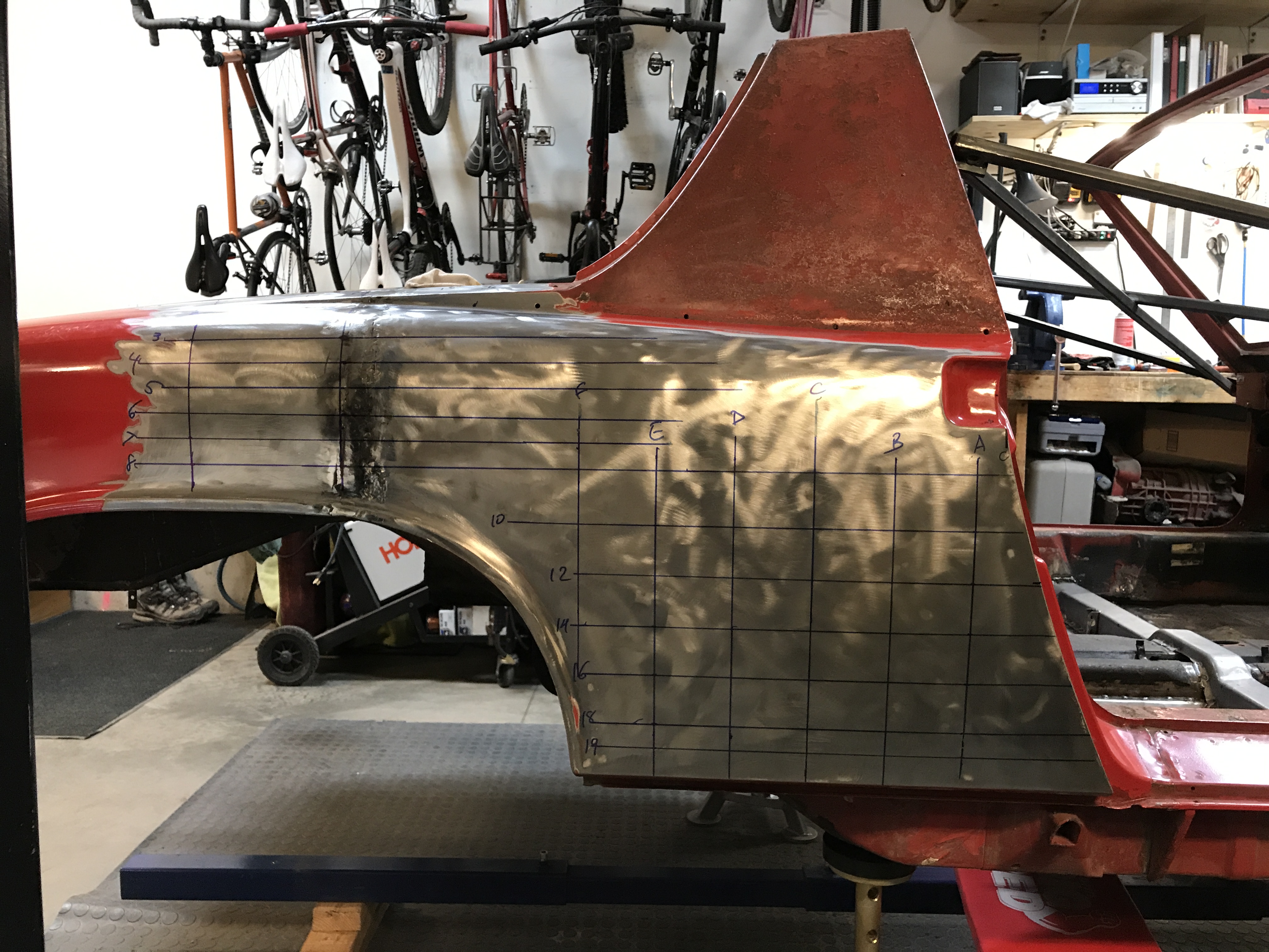 I also got started on the right rear fender, laying out guidelines to compare profiles.