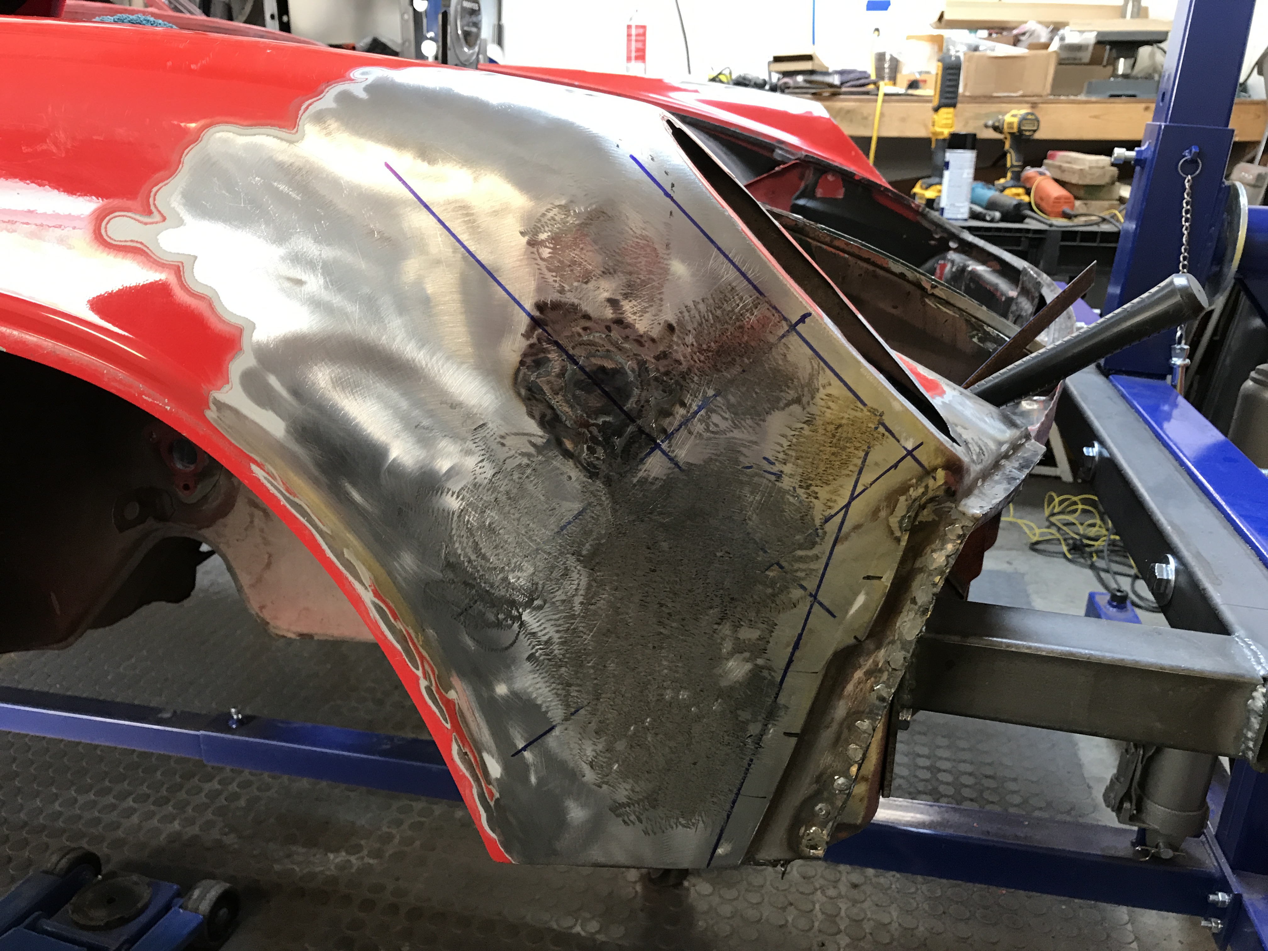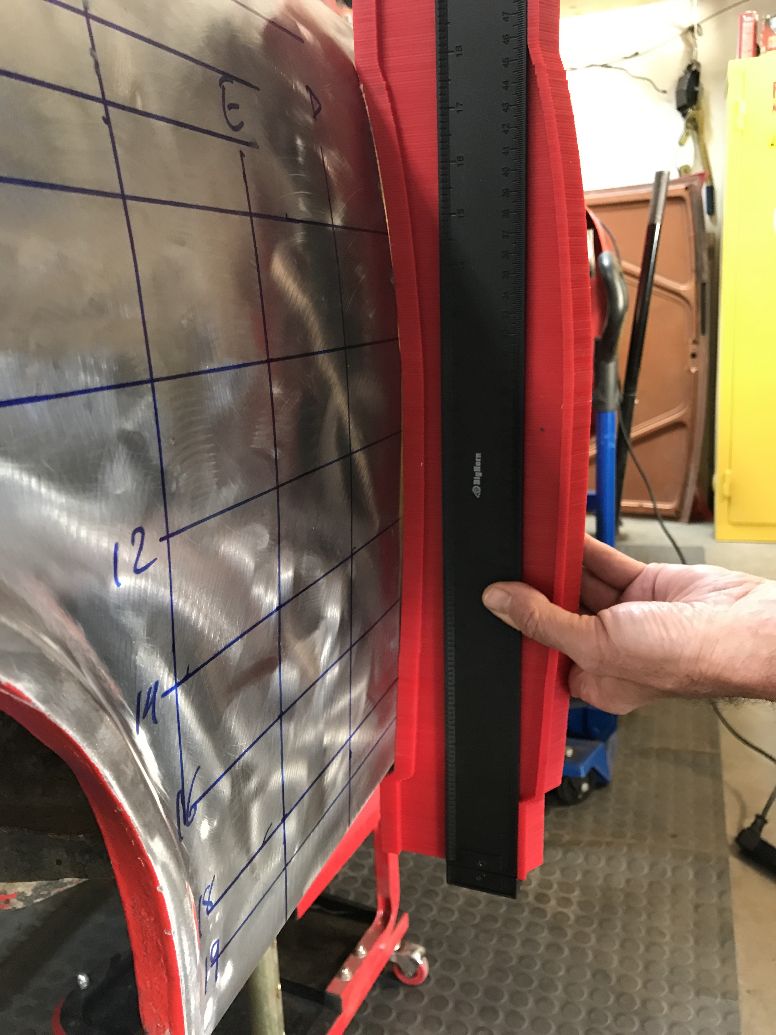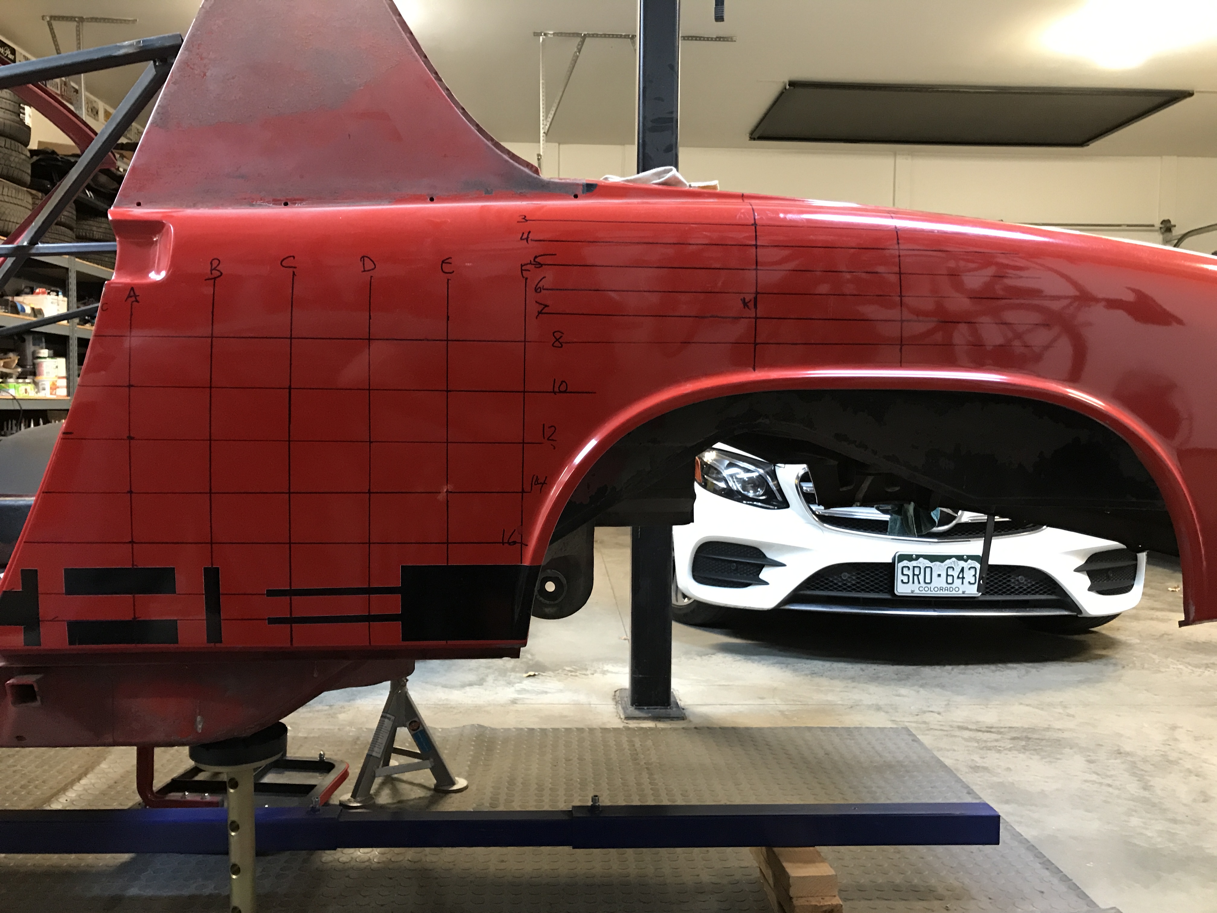 I also got started on the right rear fender, laying out guidelines to compare profiles.