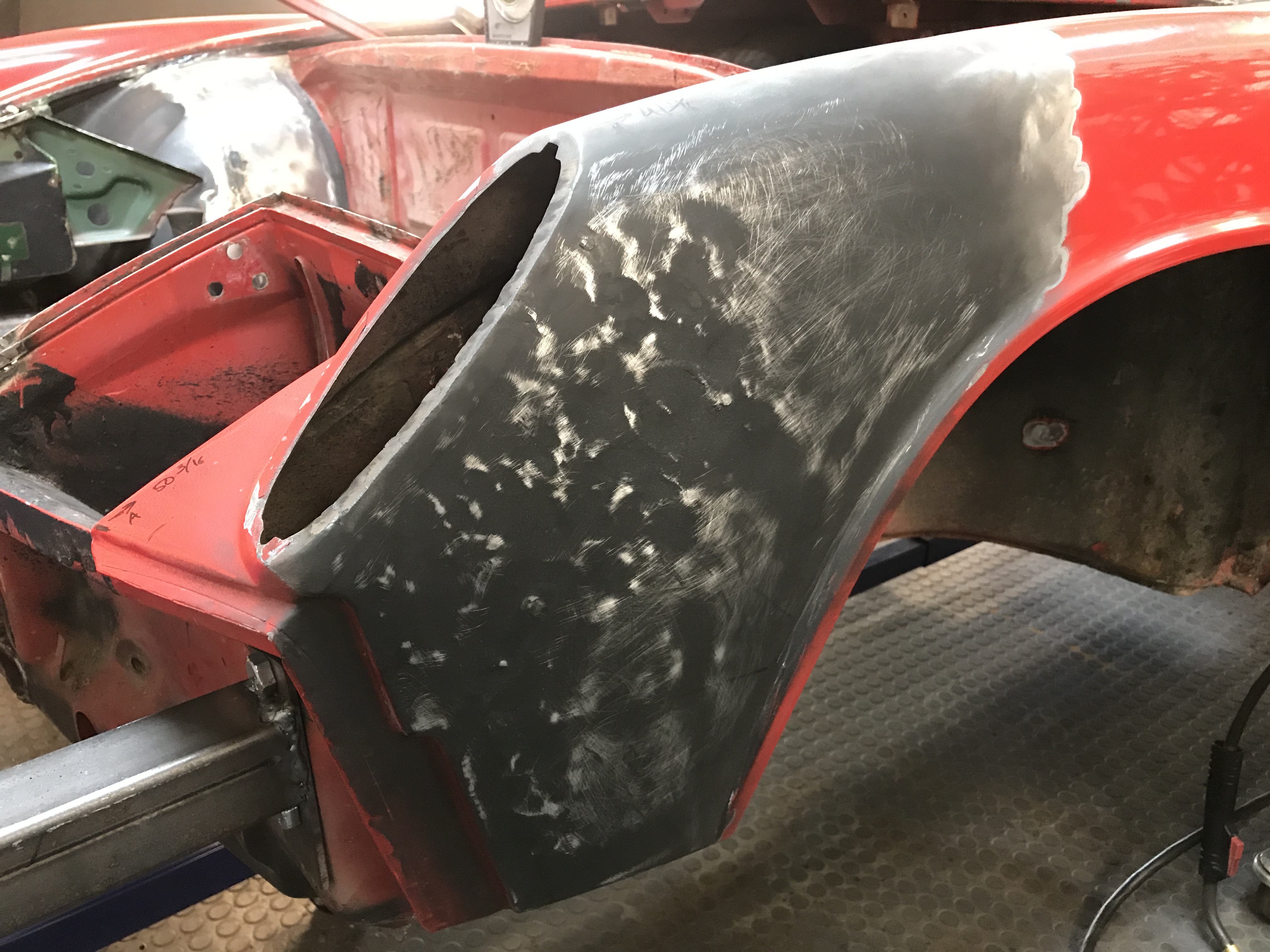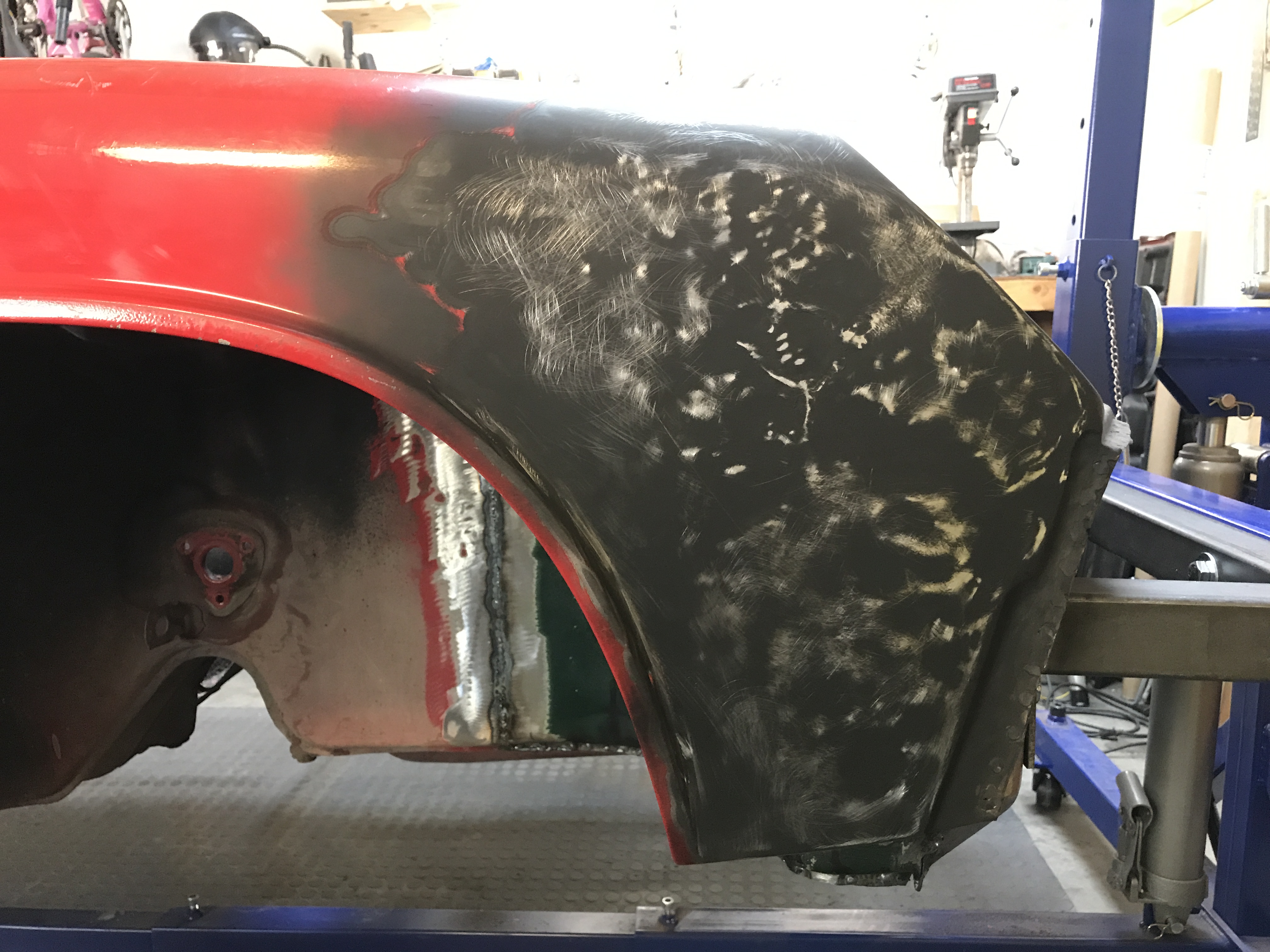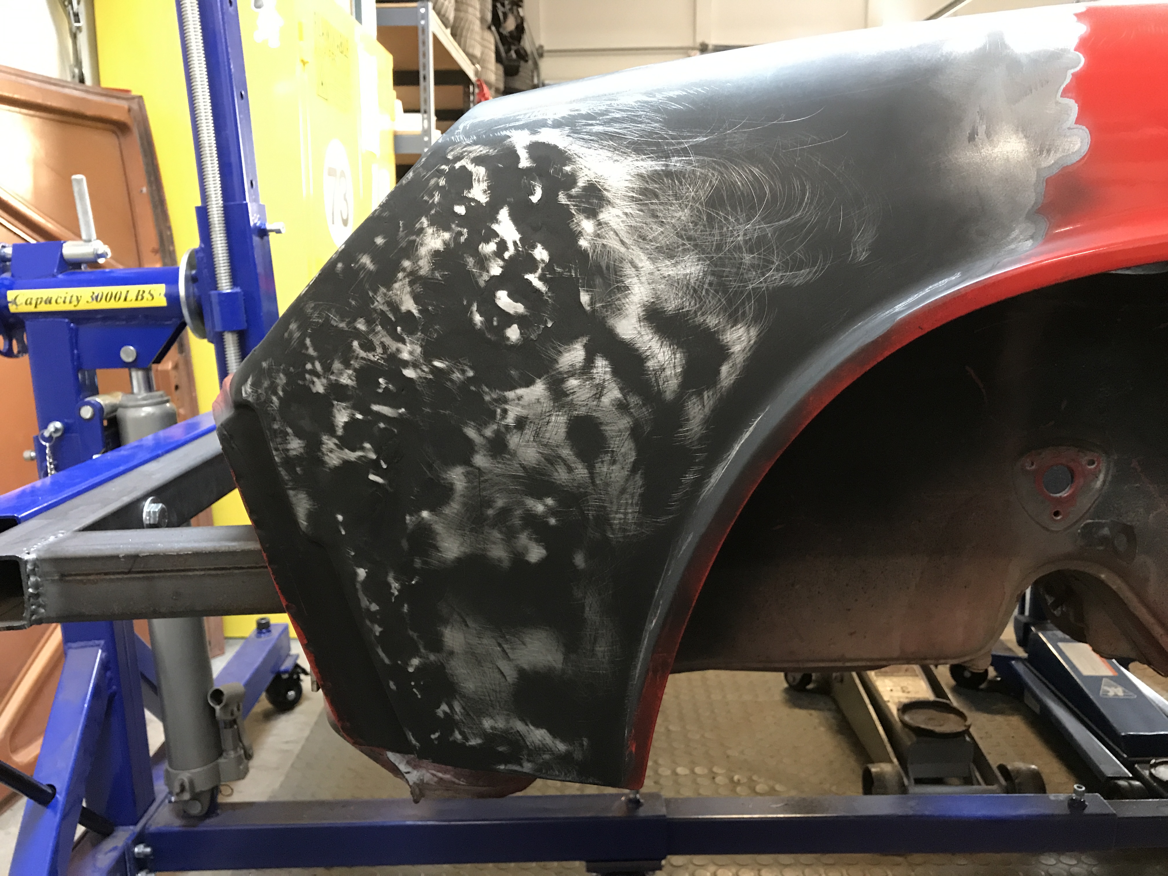 I then went back to the front fenders, trying to level out the high spots, followed by another guide coat and sanding. I might be getting as close as I can without going nuts.