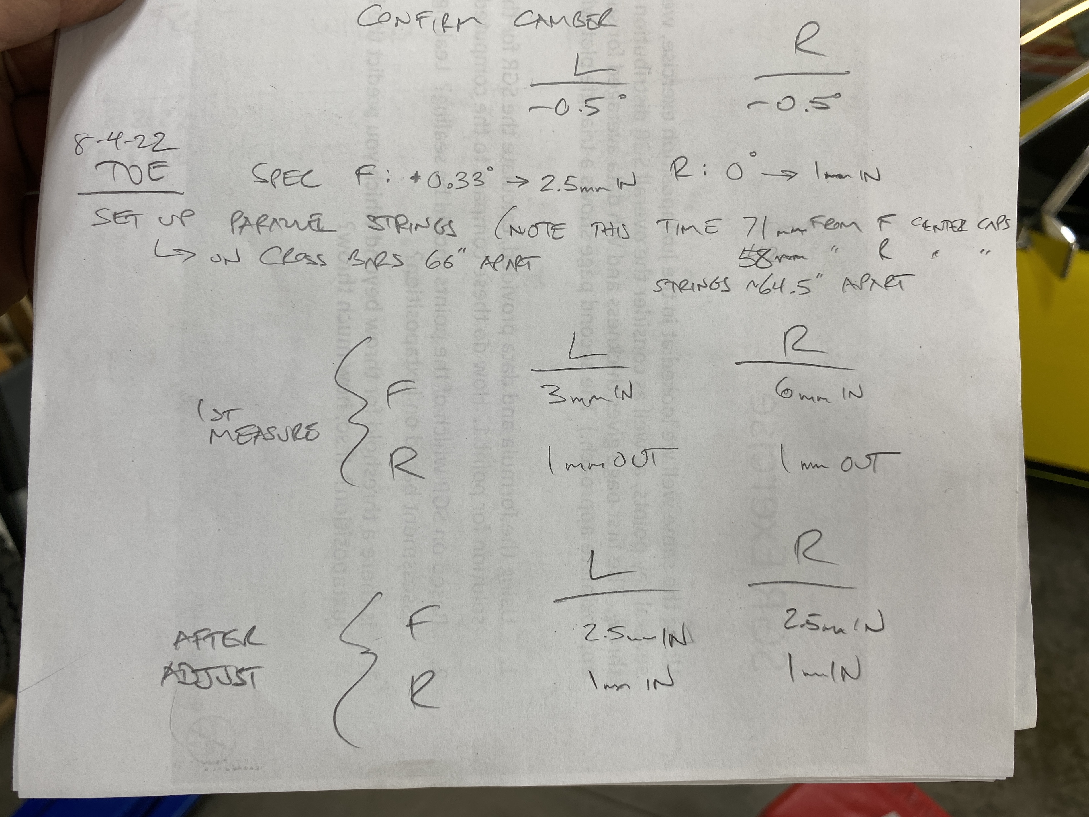 This second home effort was a chance to see how precise I could work, and what kind of results are possible. I did get another digital camber gauge to try, and an offer from a friend with other home alignment expertise. |