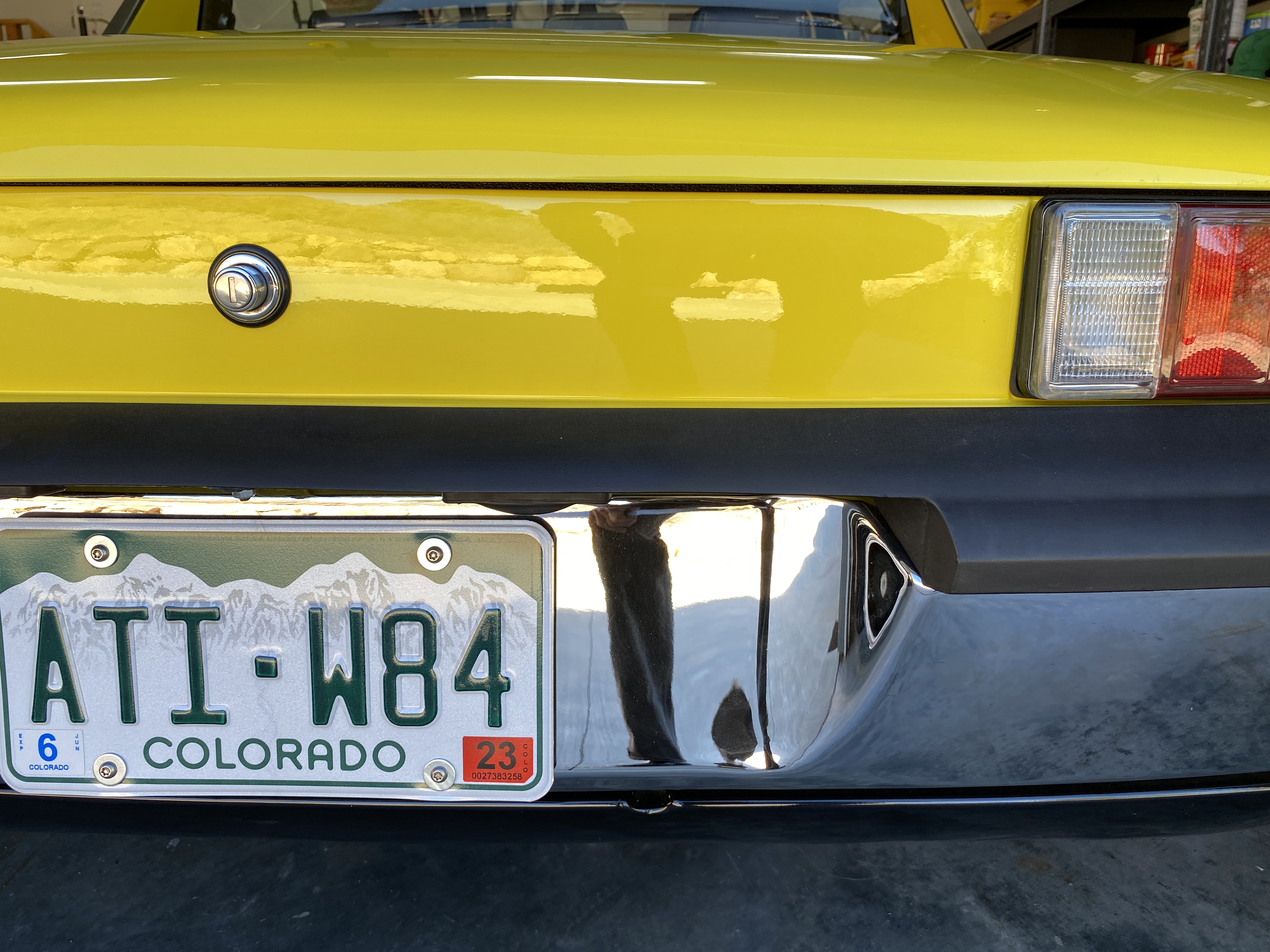 I brought the car home from the paint shop. They did a few local touch-ups, and polished the exterior. It looks very good. Rain was threatening, so I did not stop until I got home.