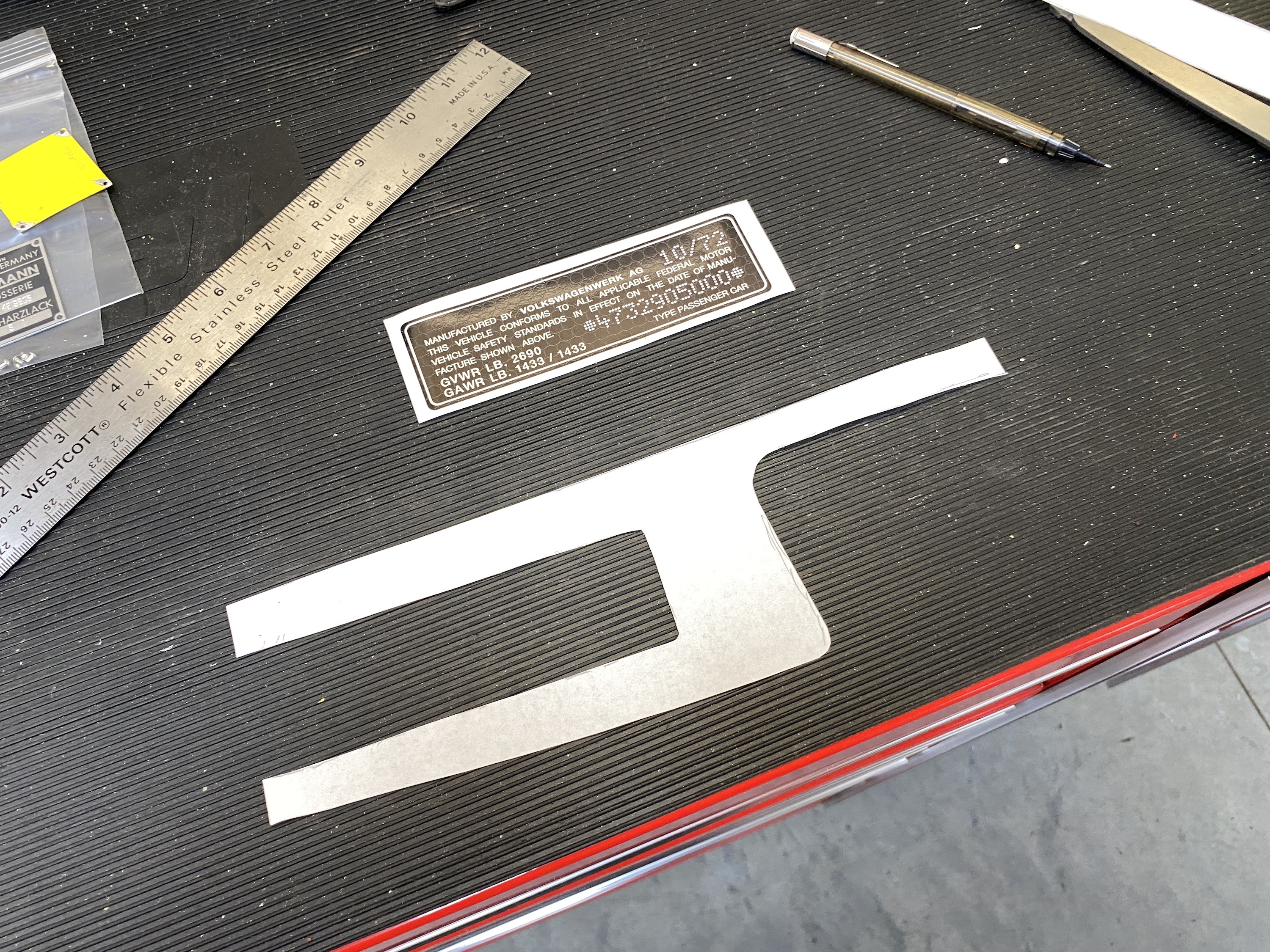 Next, I tackled the build sticker. I made the paper template from the original on the door jamb.