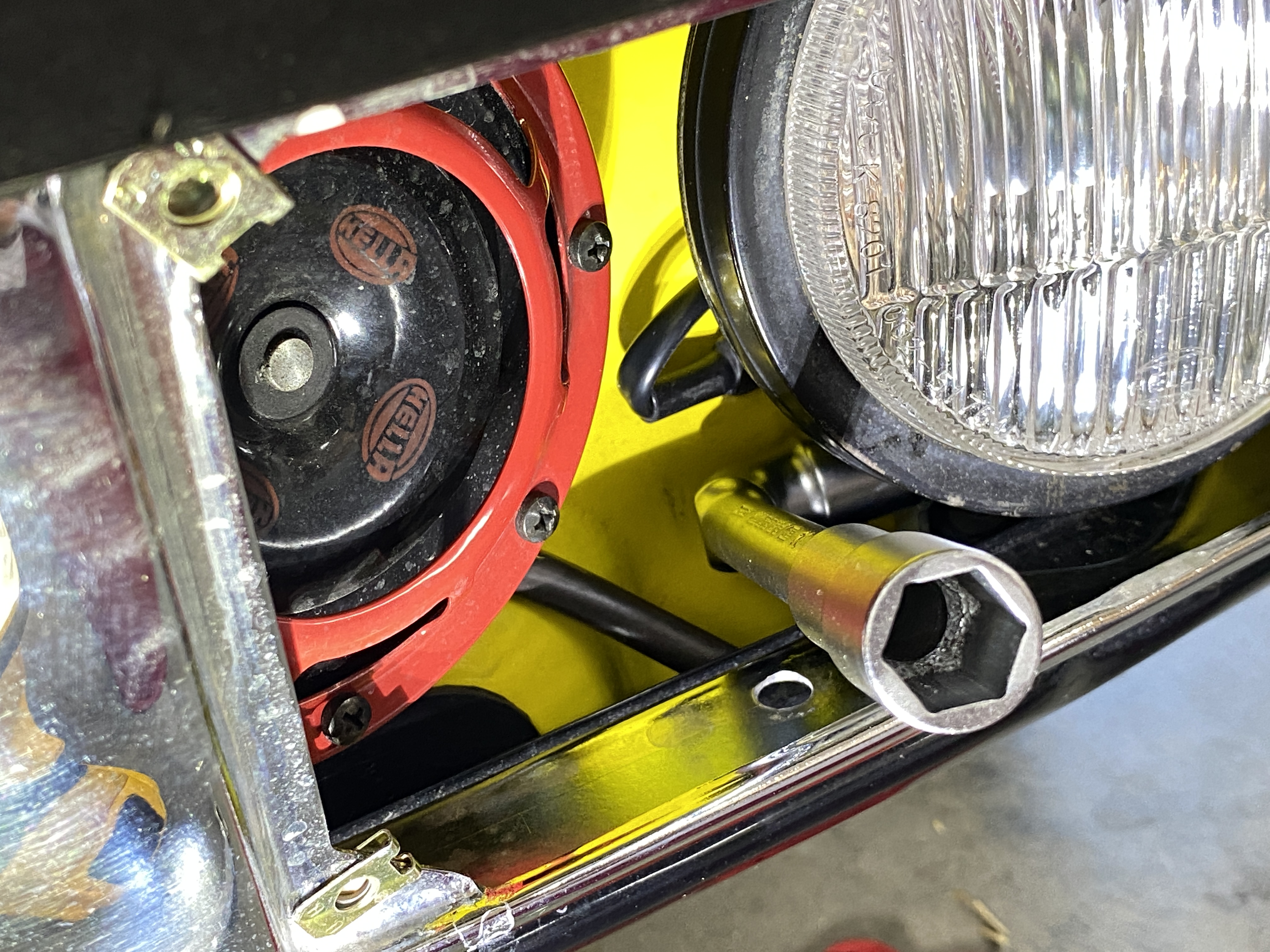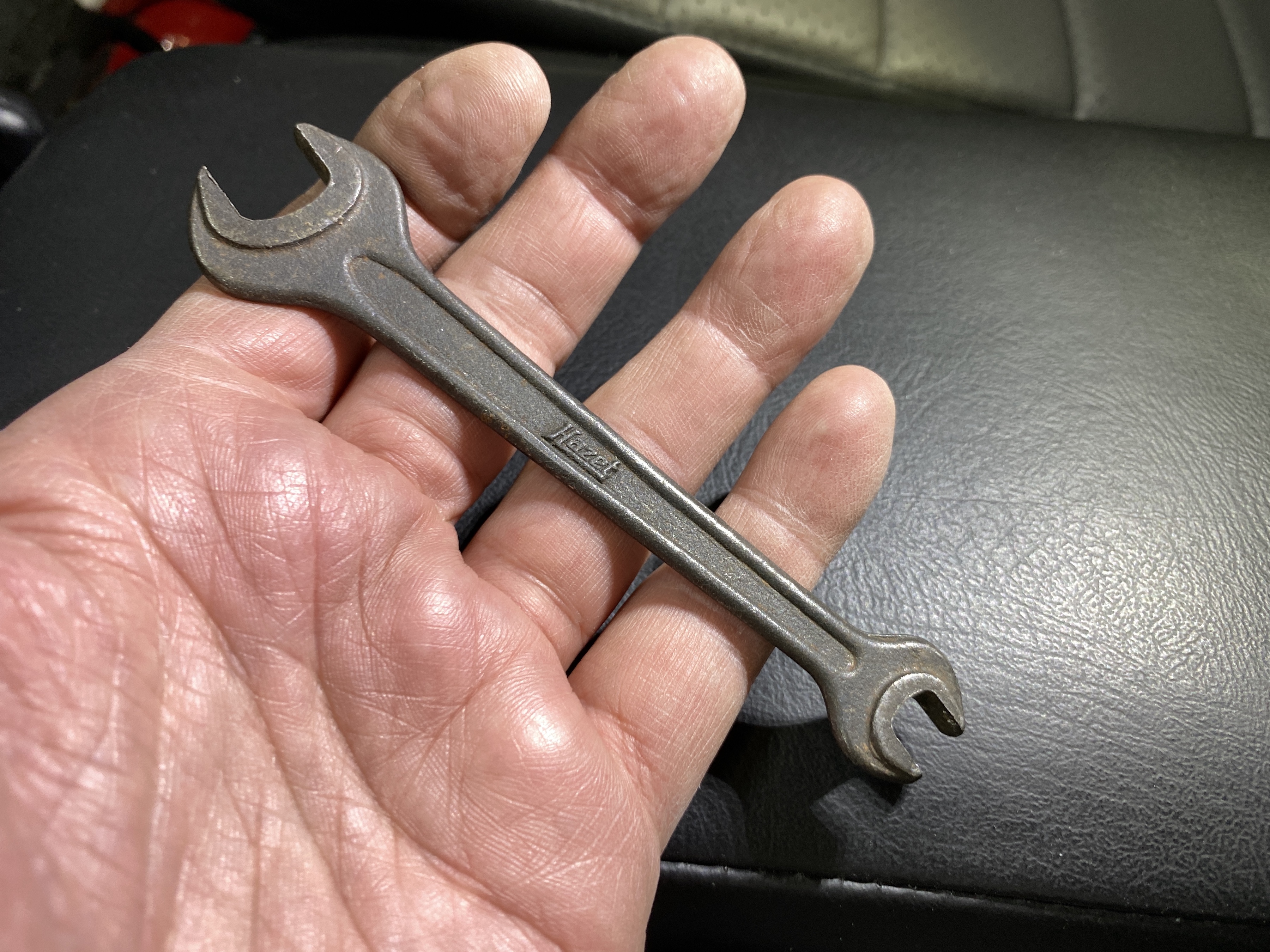 Time for another special tool, this one from the back of the tool chest: a vintage Hazet wrench from an old 914 tool kit. The head on the 13 mm end is thinner than any other wrench I own.