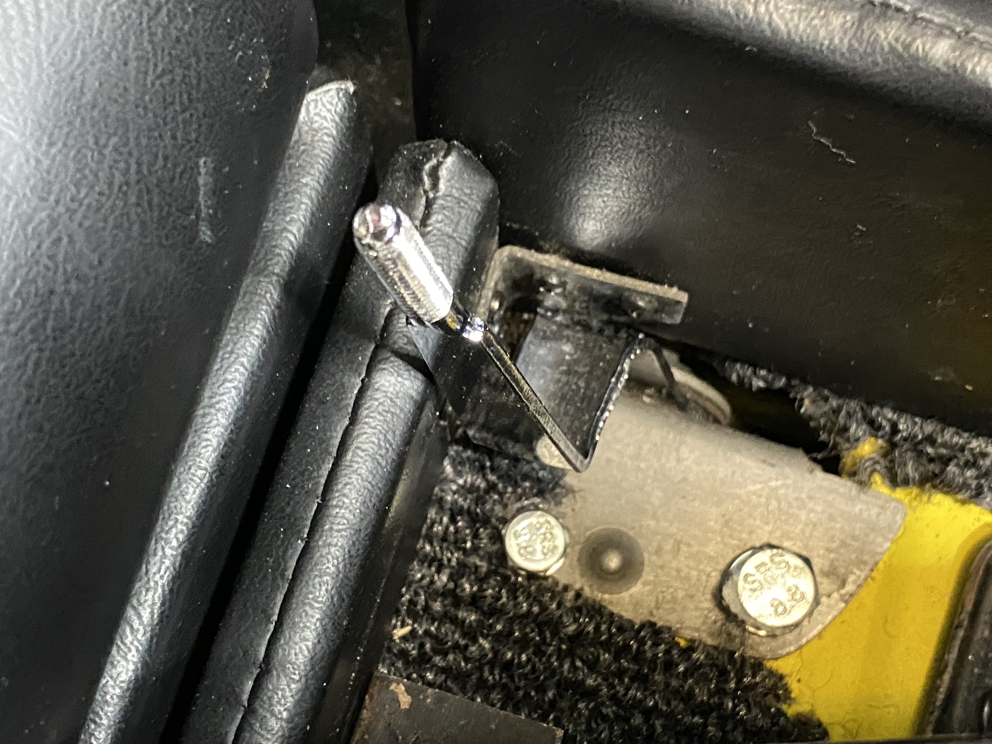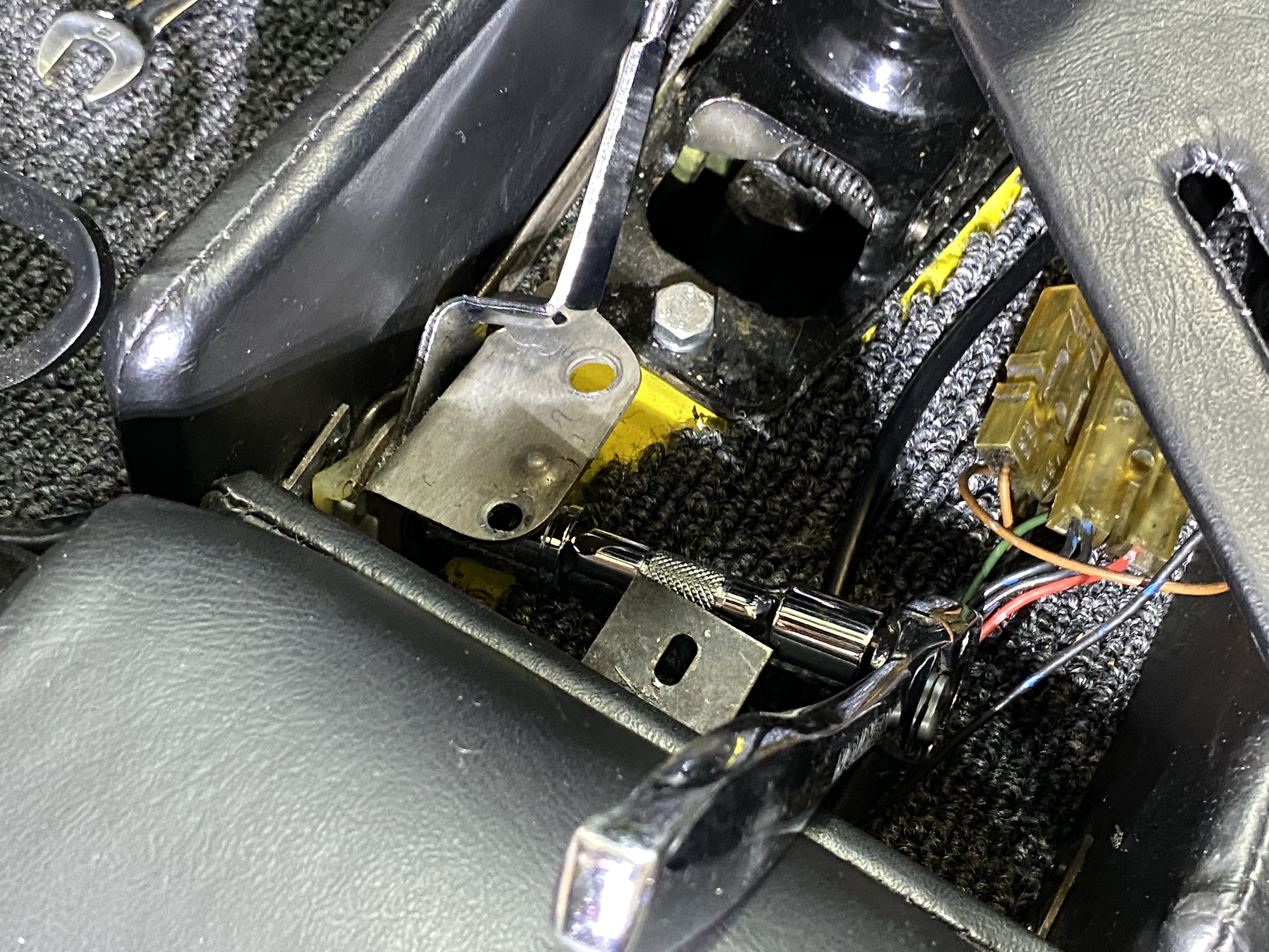 Success--maybe. The pivot bolt is tight enough to hold the lever in the middle, against the tension of the heat duct valve cables.