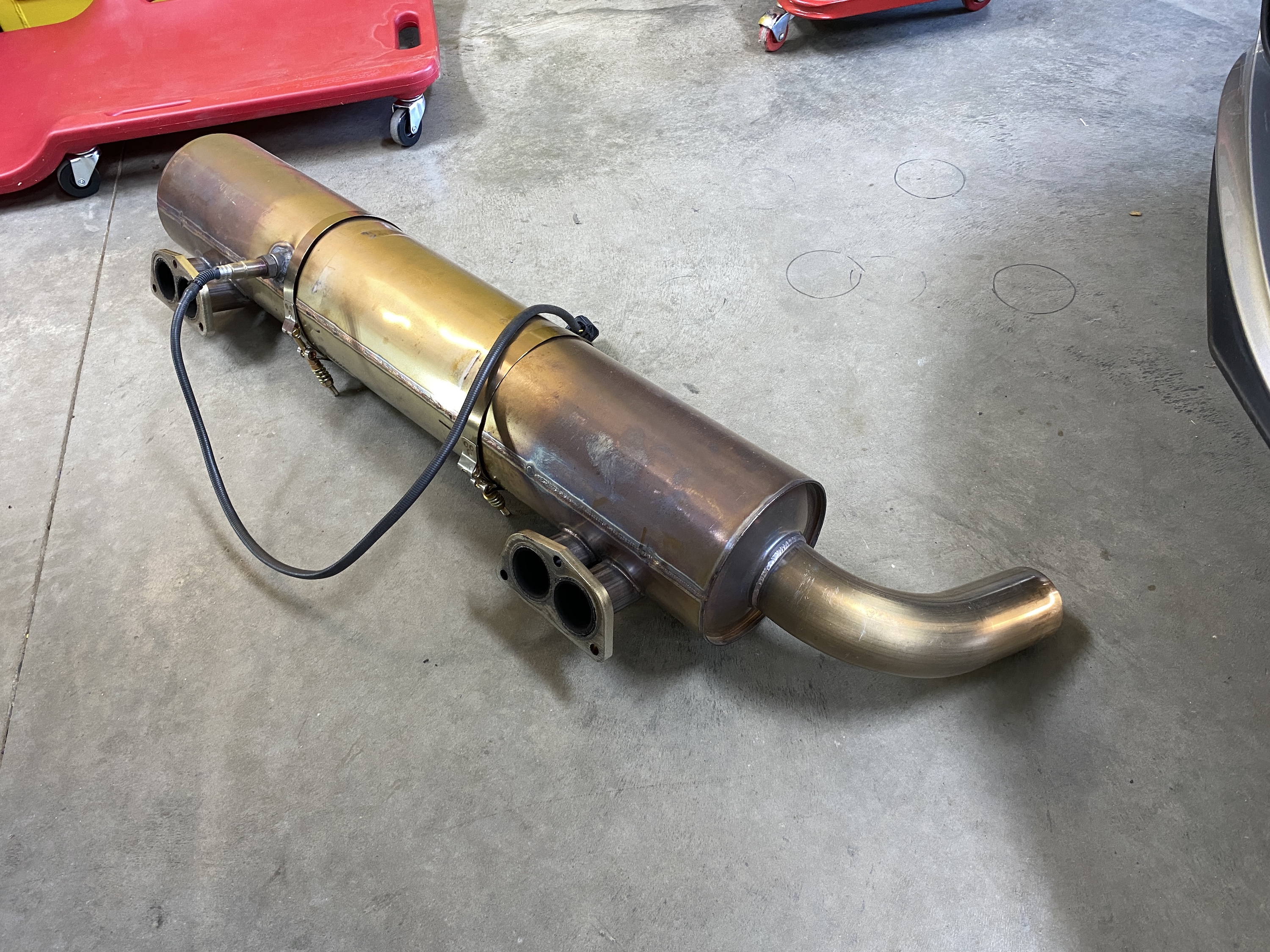 Starting on the bottom: muffler out.