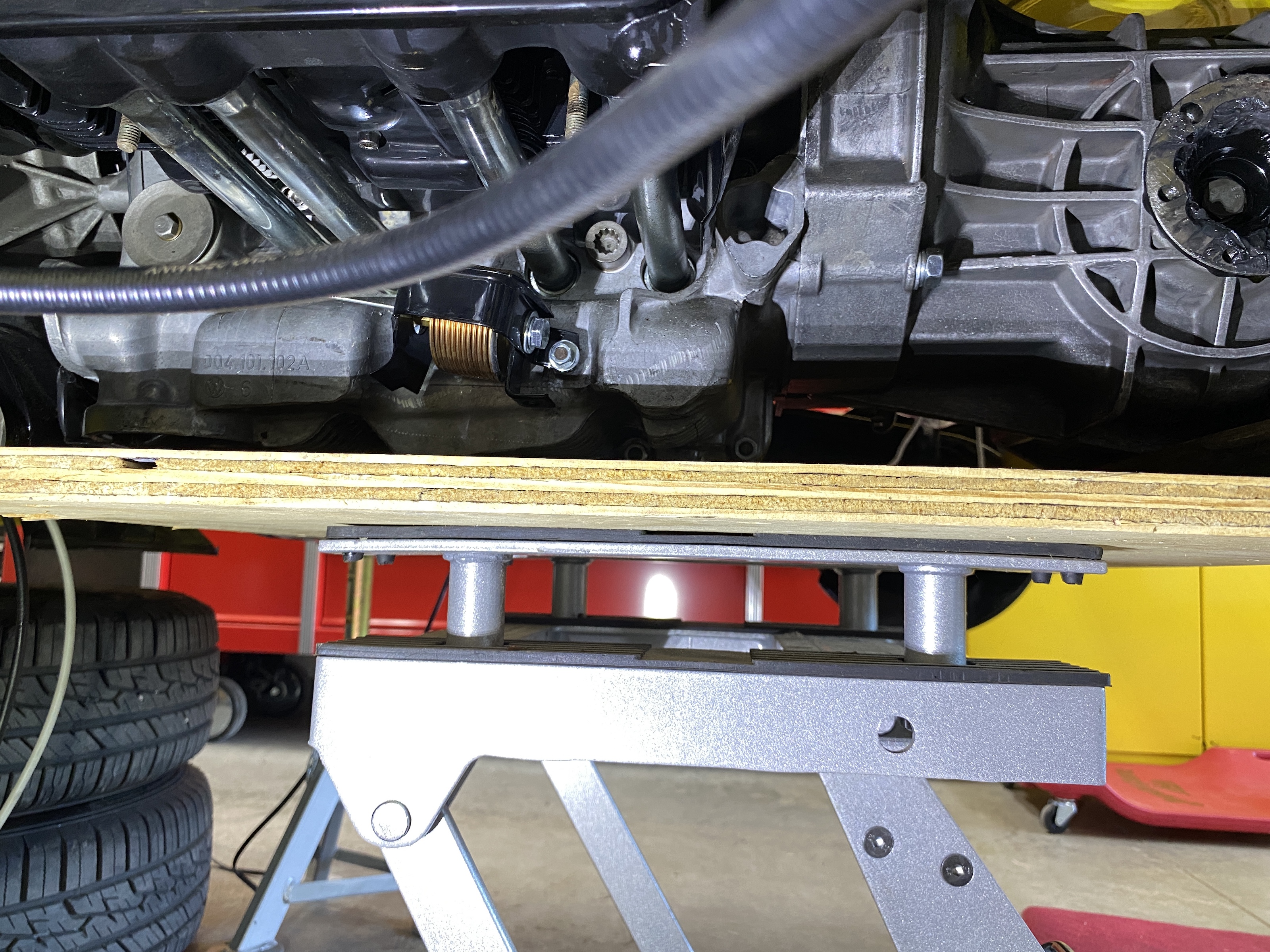 I got out my trusty 914 motor-trans support.