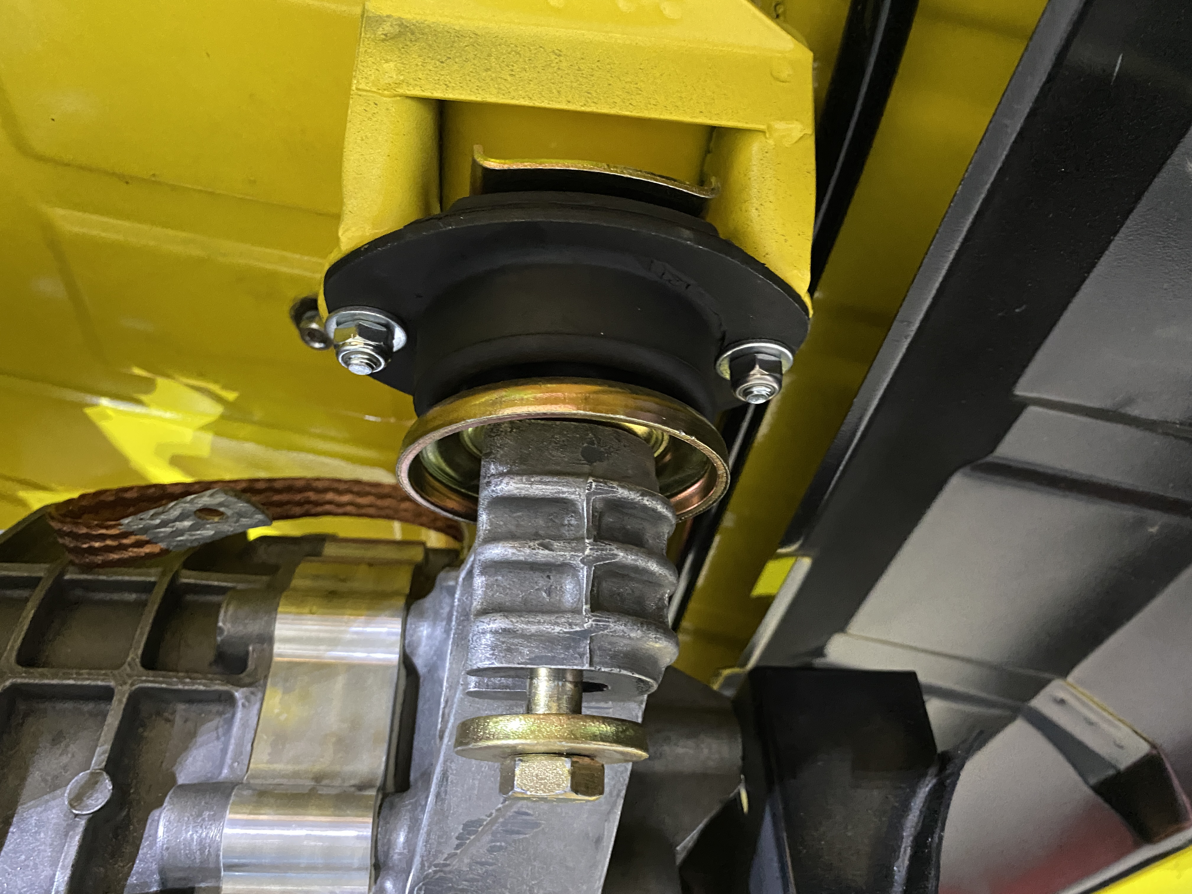And after removing the cross-bar bolts and the trans mount bolts, I started to lower.