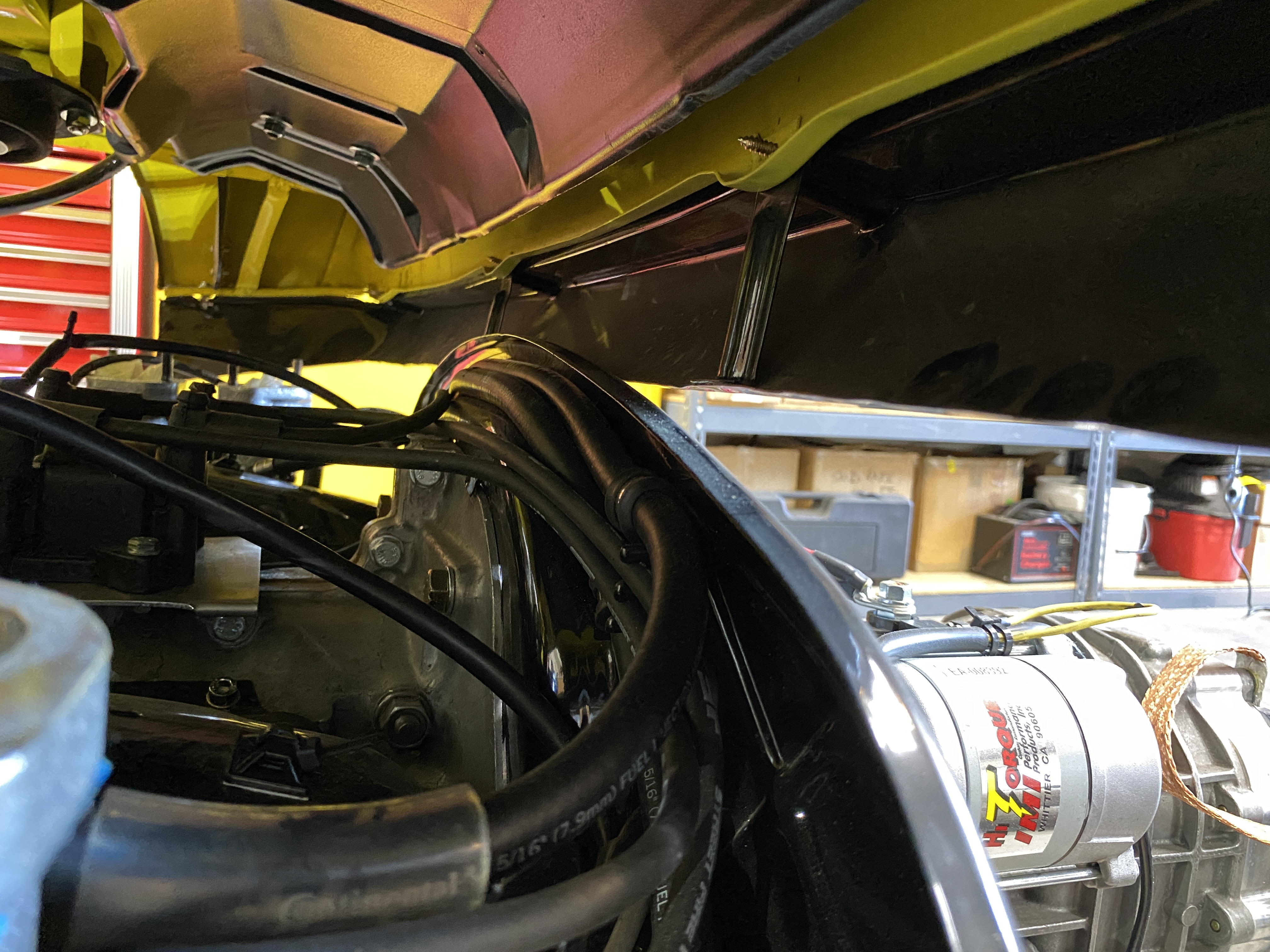 Wires, cables, fuel lines, and other things cleared from the top.