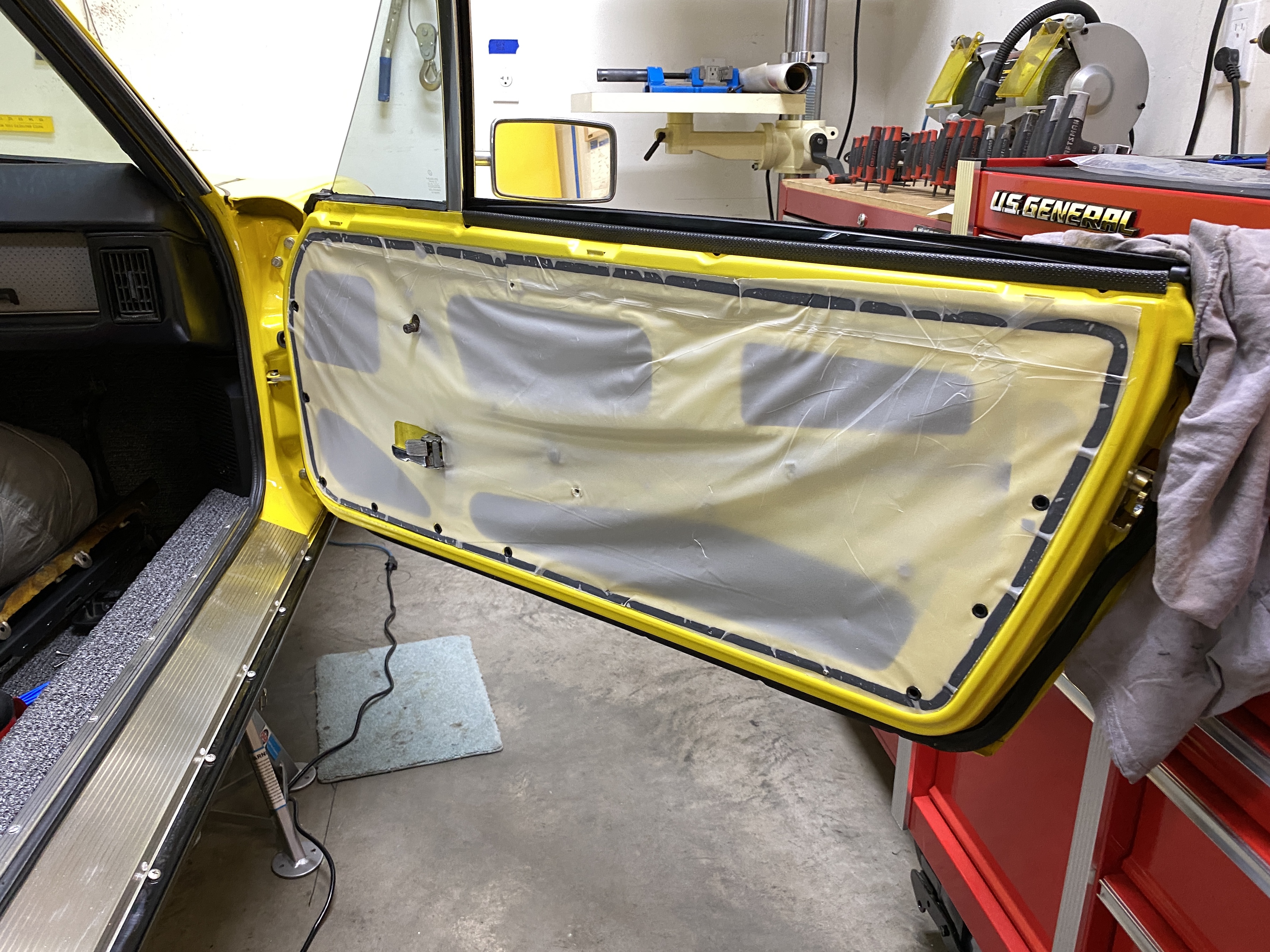 To see if the door card interferes with the locking rod, I temporarily reinstalled it.
