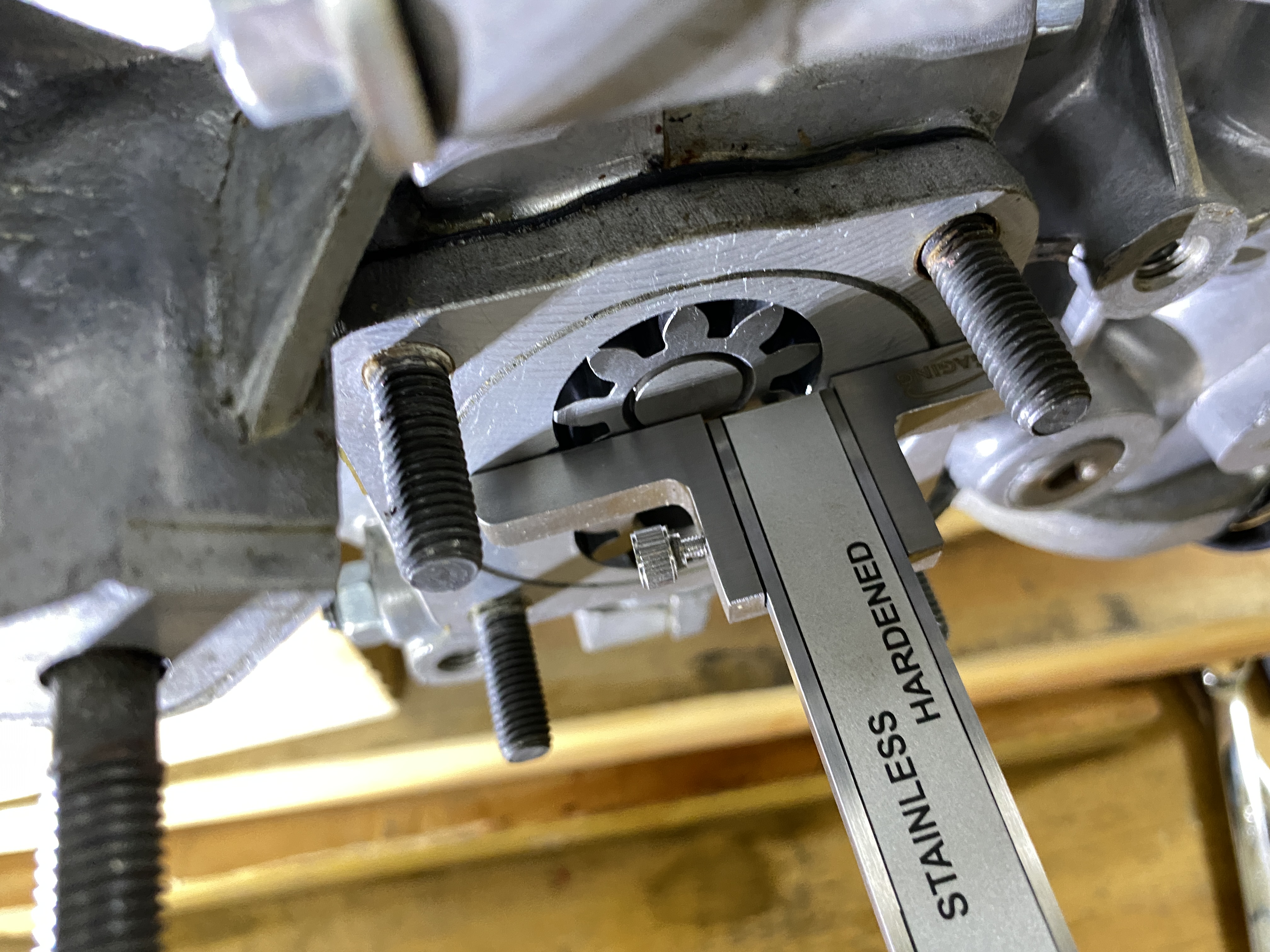 Back to working on oil leaks, and the pump. I set up my digital caliper with a plunge adapter.