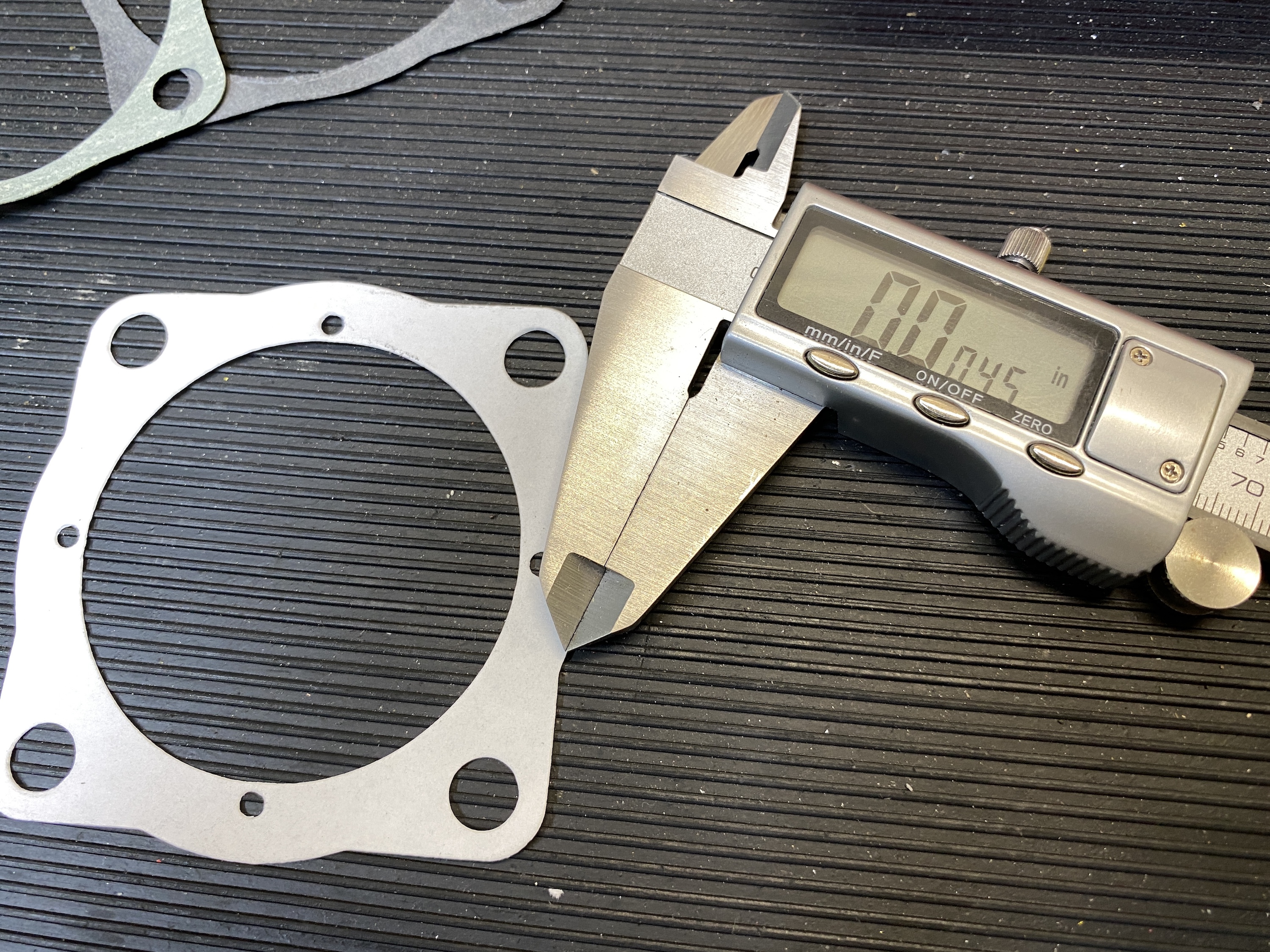 The gasket I have in my supply measures .0045" thick.