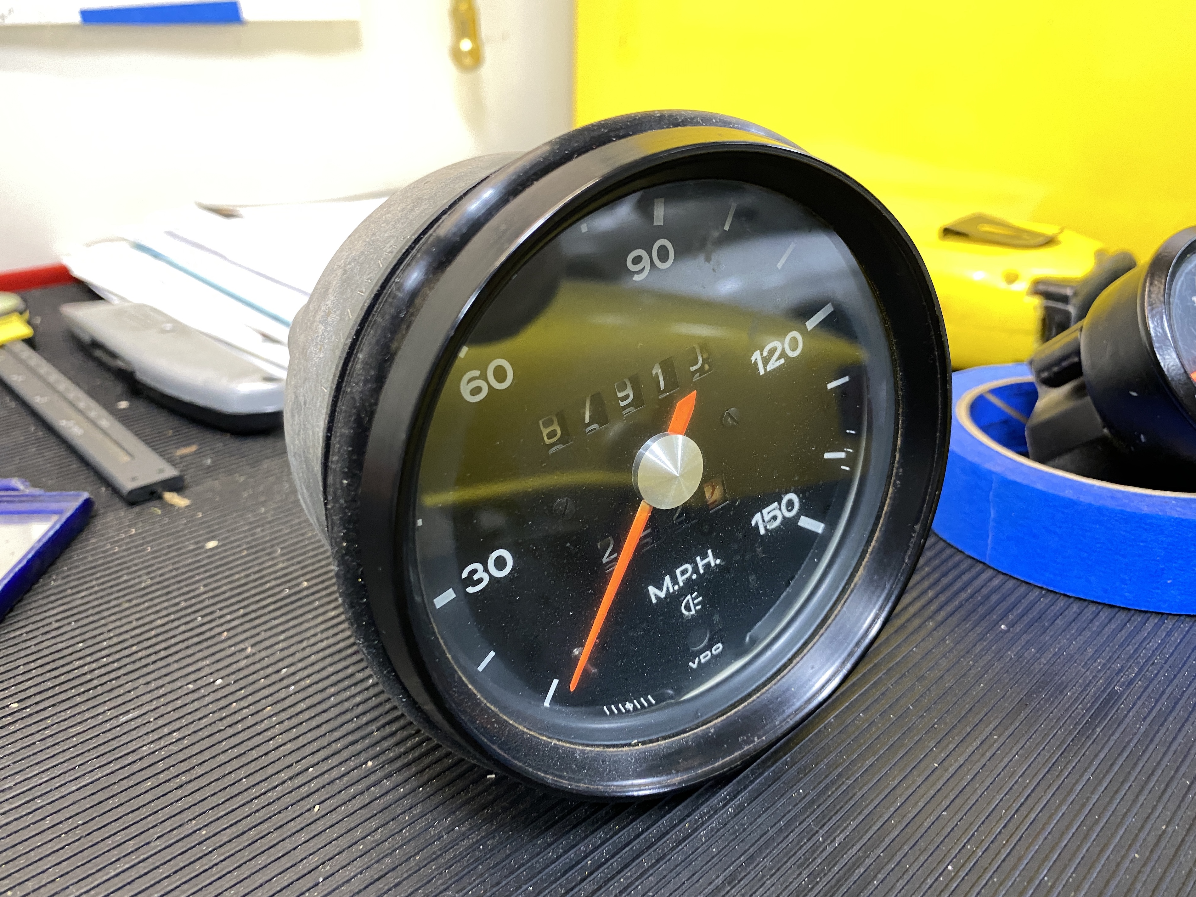 And I pulled the speedometer, too. This read about 10 mph off, and the odo never worked. I still have not decided if I want to try this myself or send it off (or source another one).