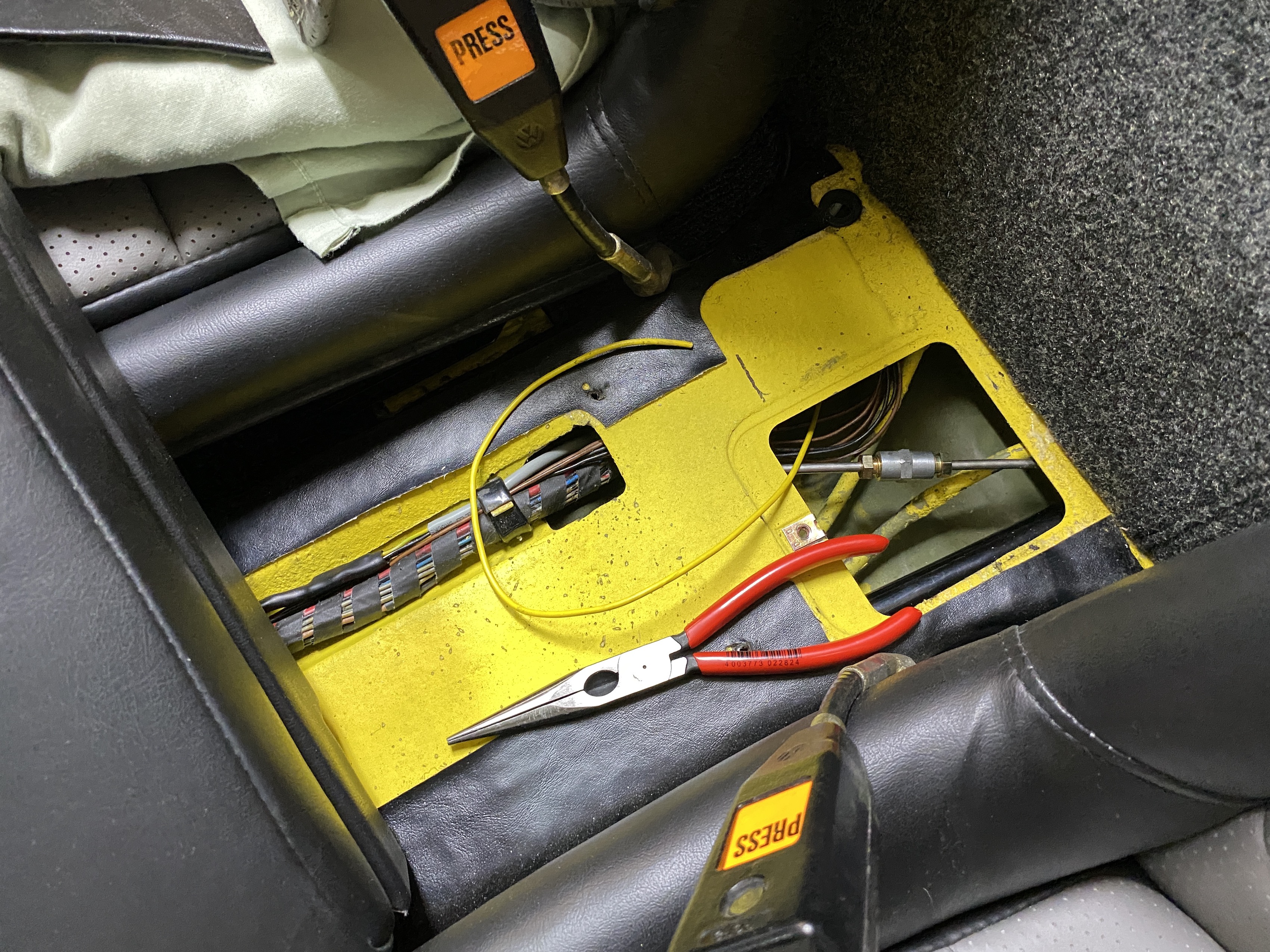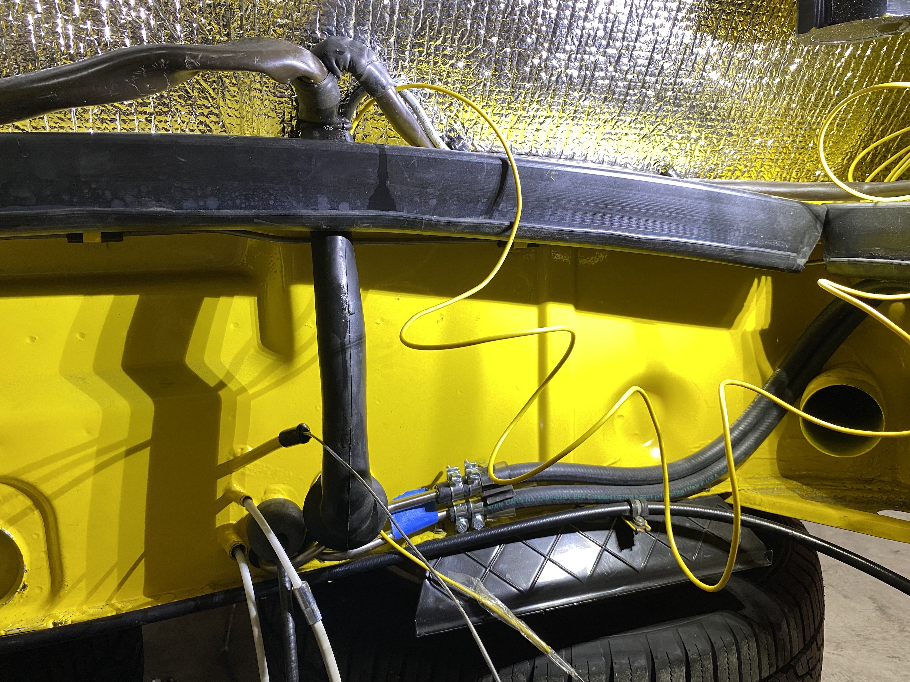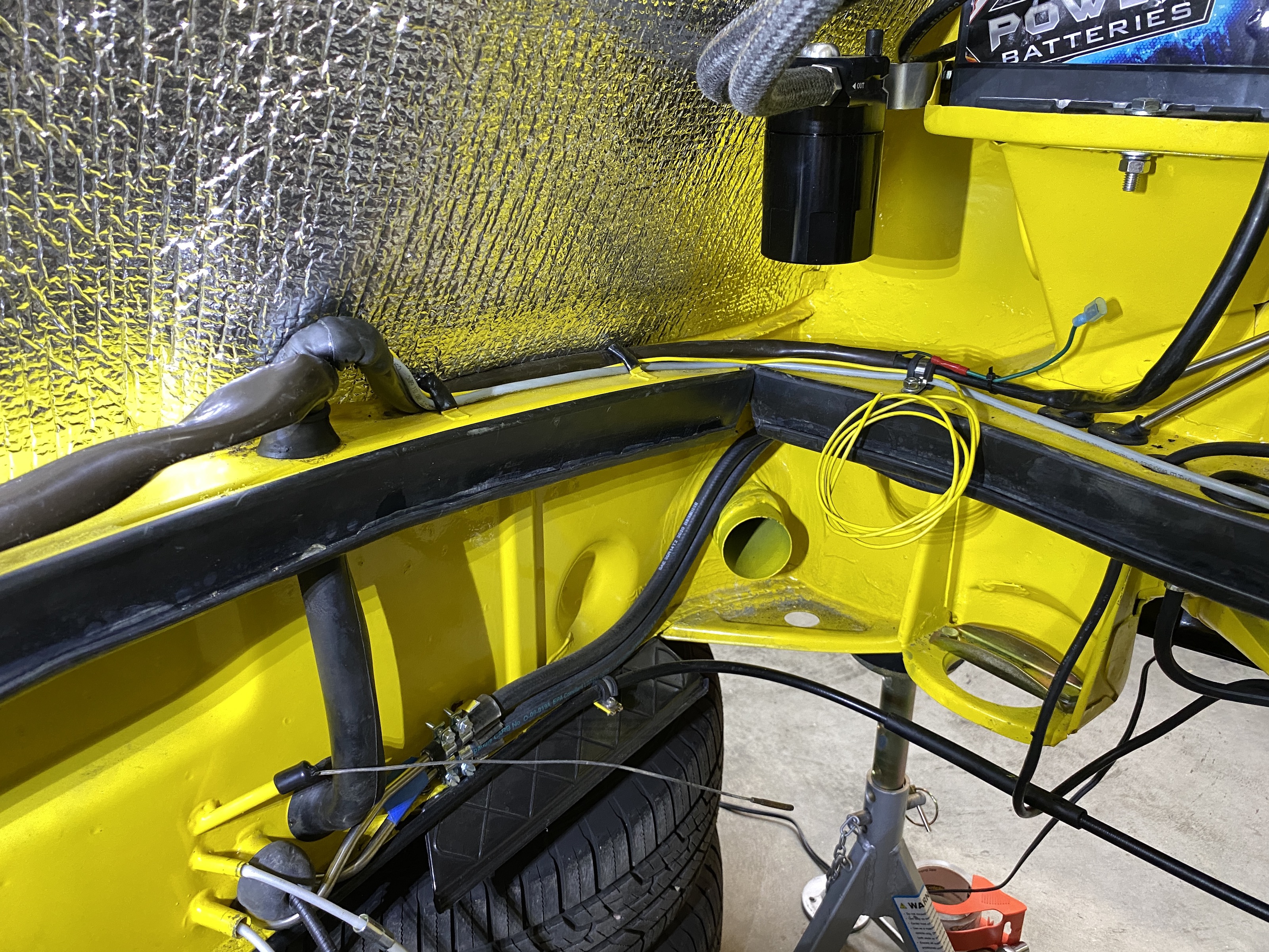 The pressure gauge will also need a new wire from the engine to the center console. Here I started the new yellow wire through the snorkel. Why yellow? Duh.