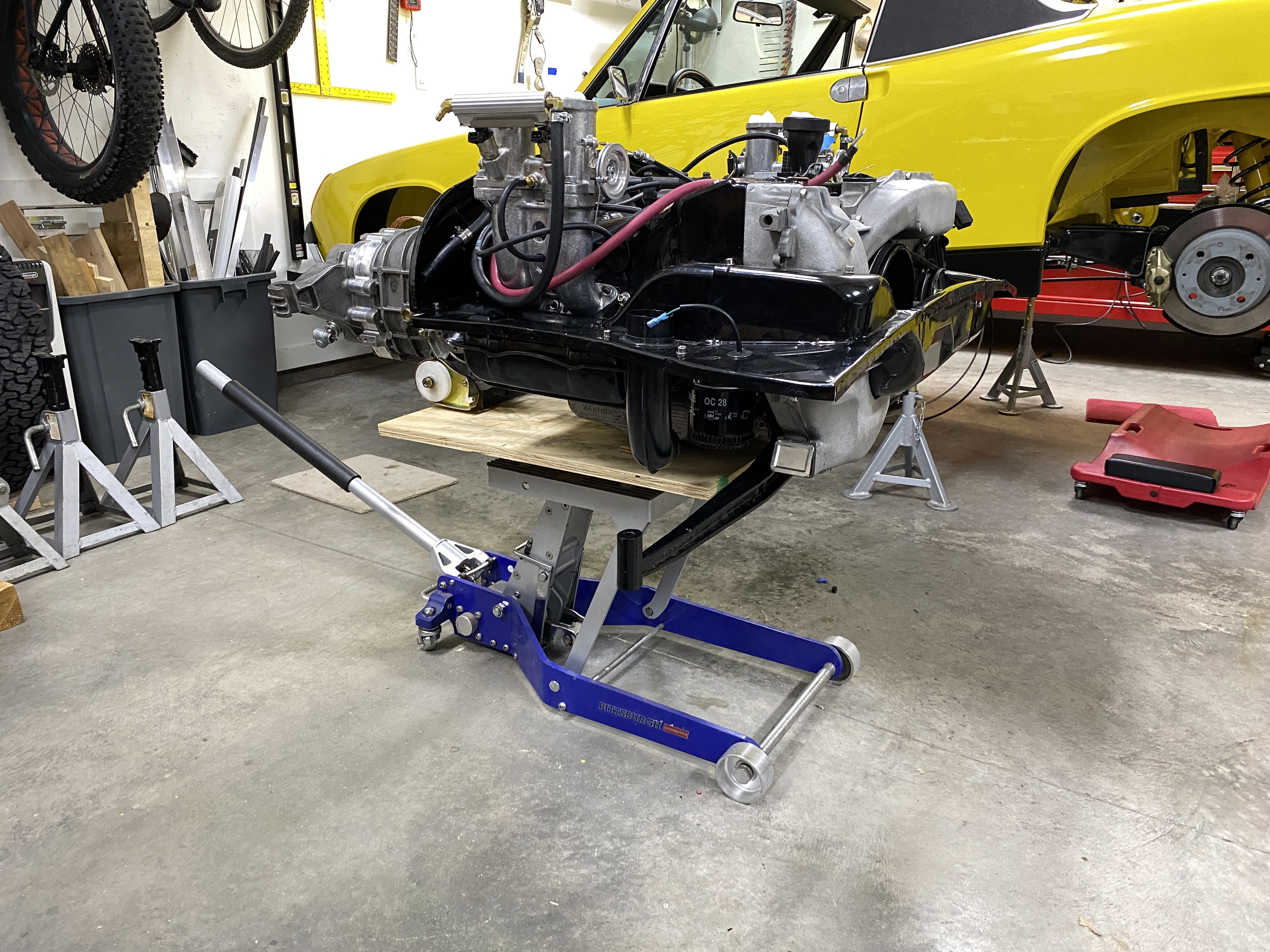 Time for one more step: get the back end hoisted up and check a few more things in the engine compartment. I think I am ready for lifting the engine.