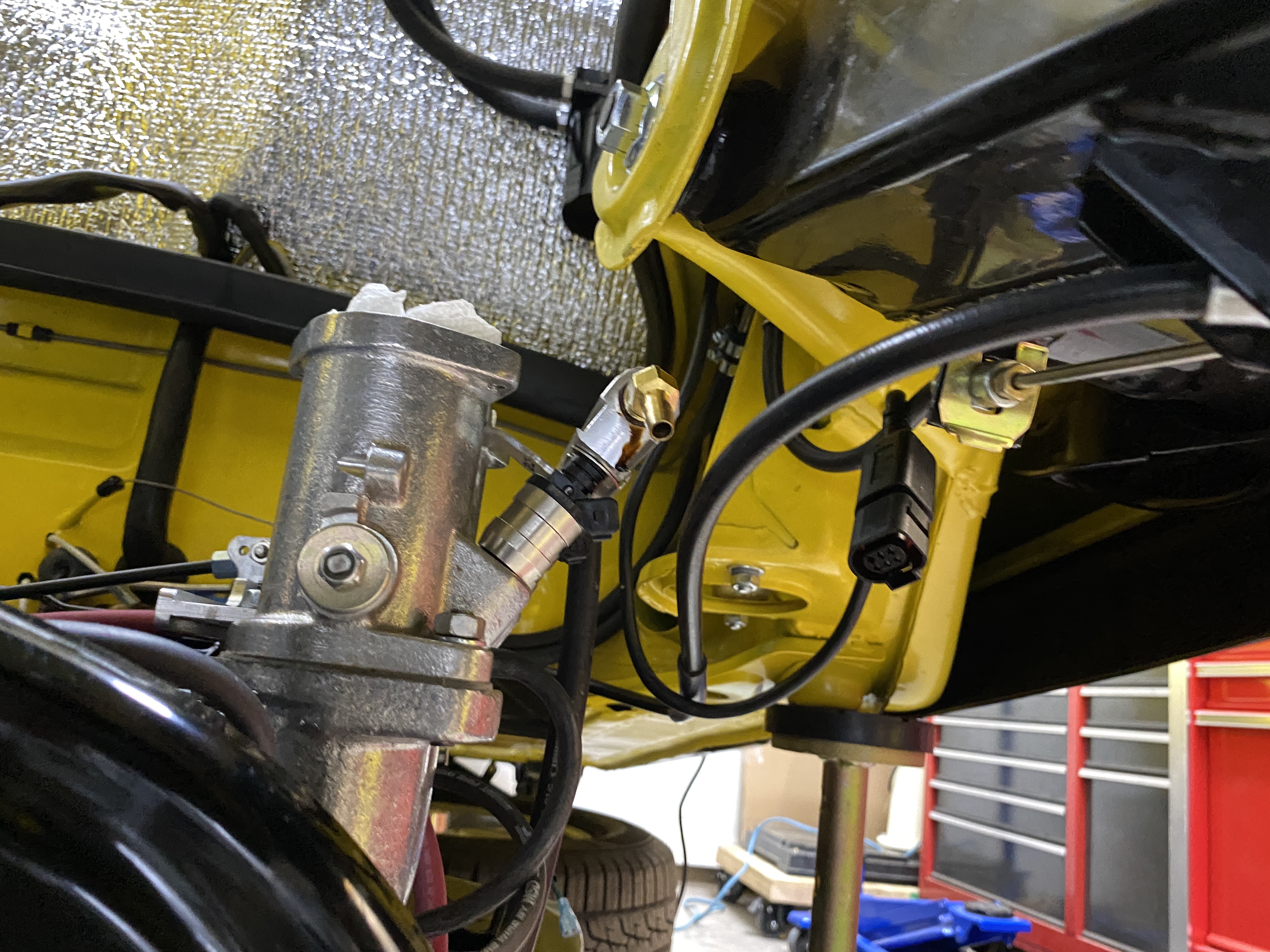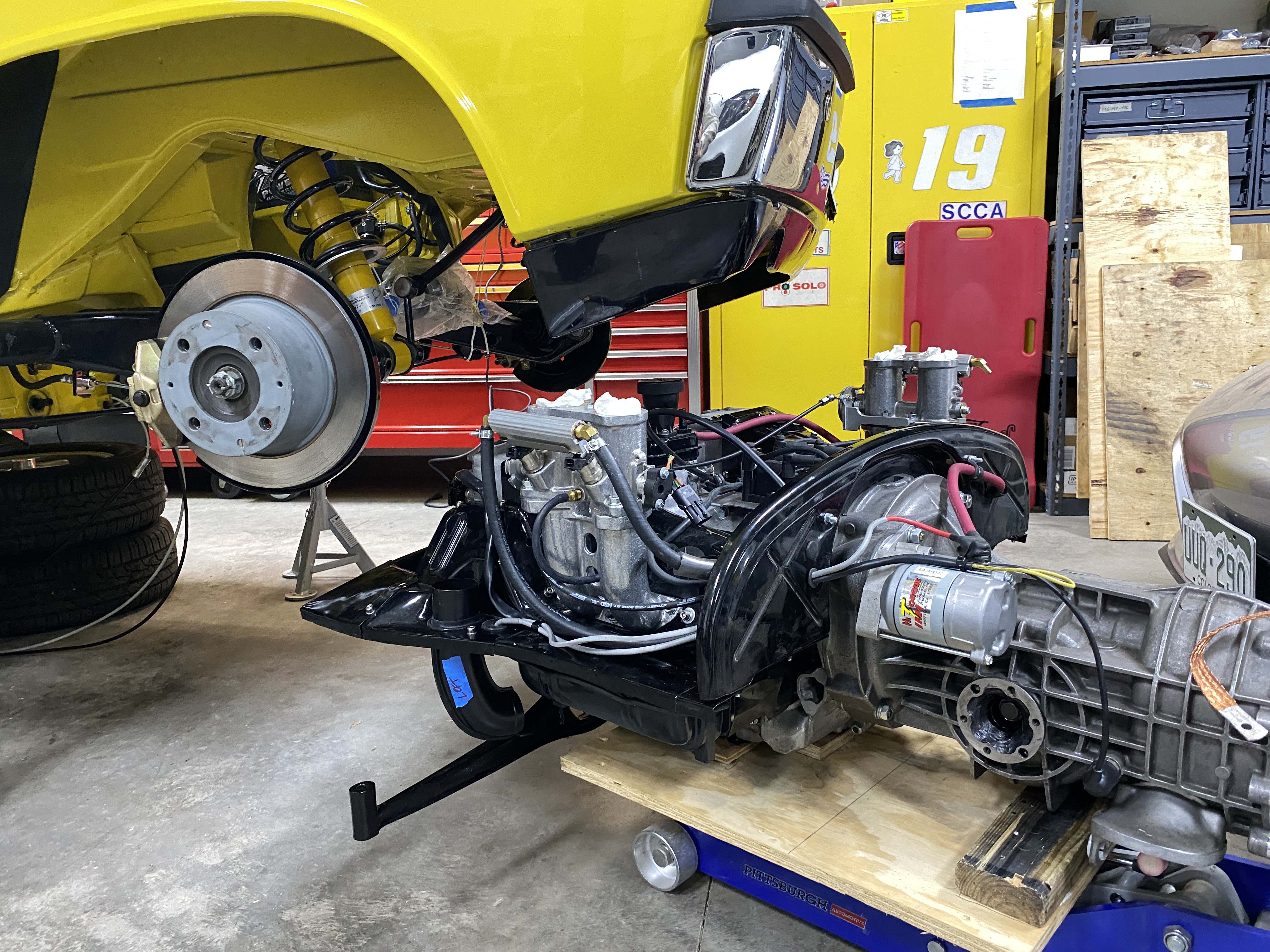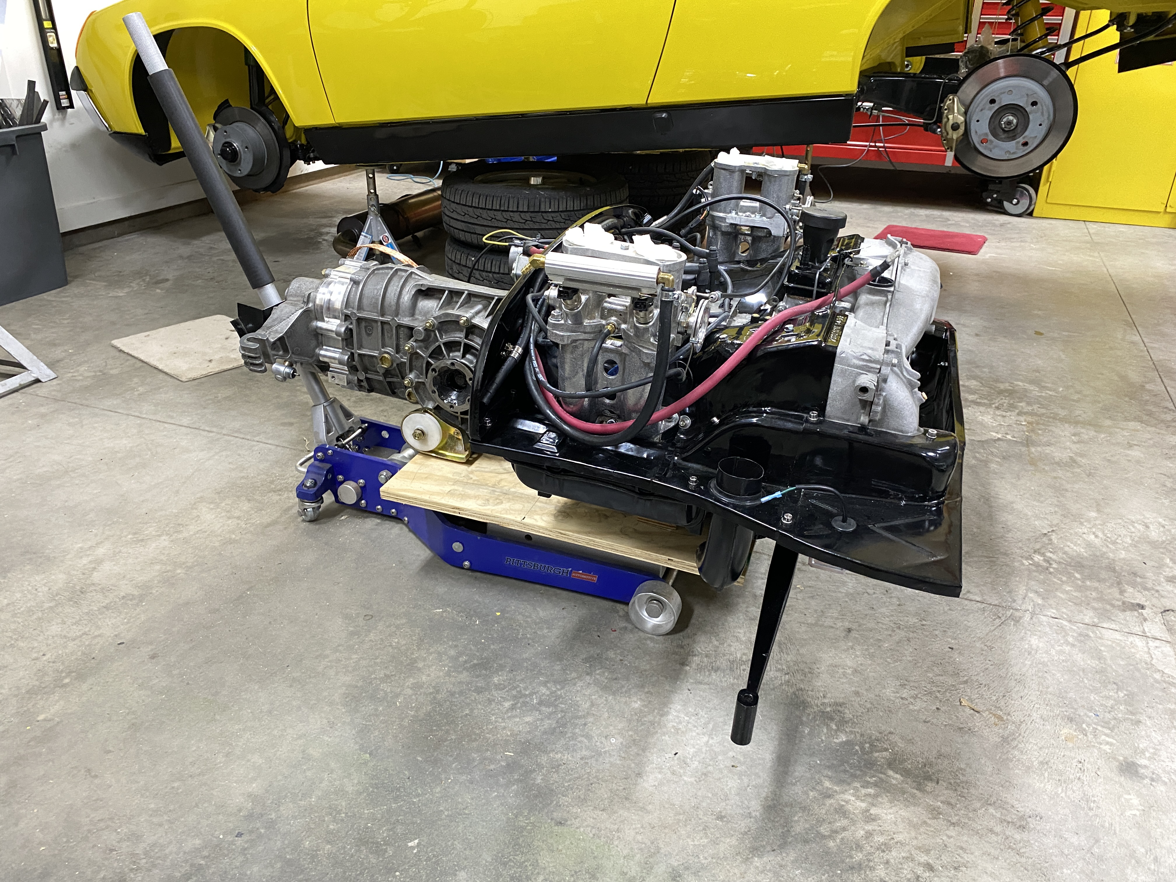 Step 3: roll into place under the car. Plenty of vertical clearance for the ITBs.
