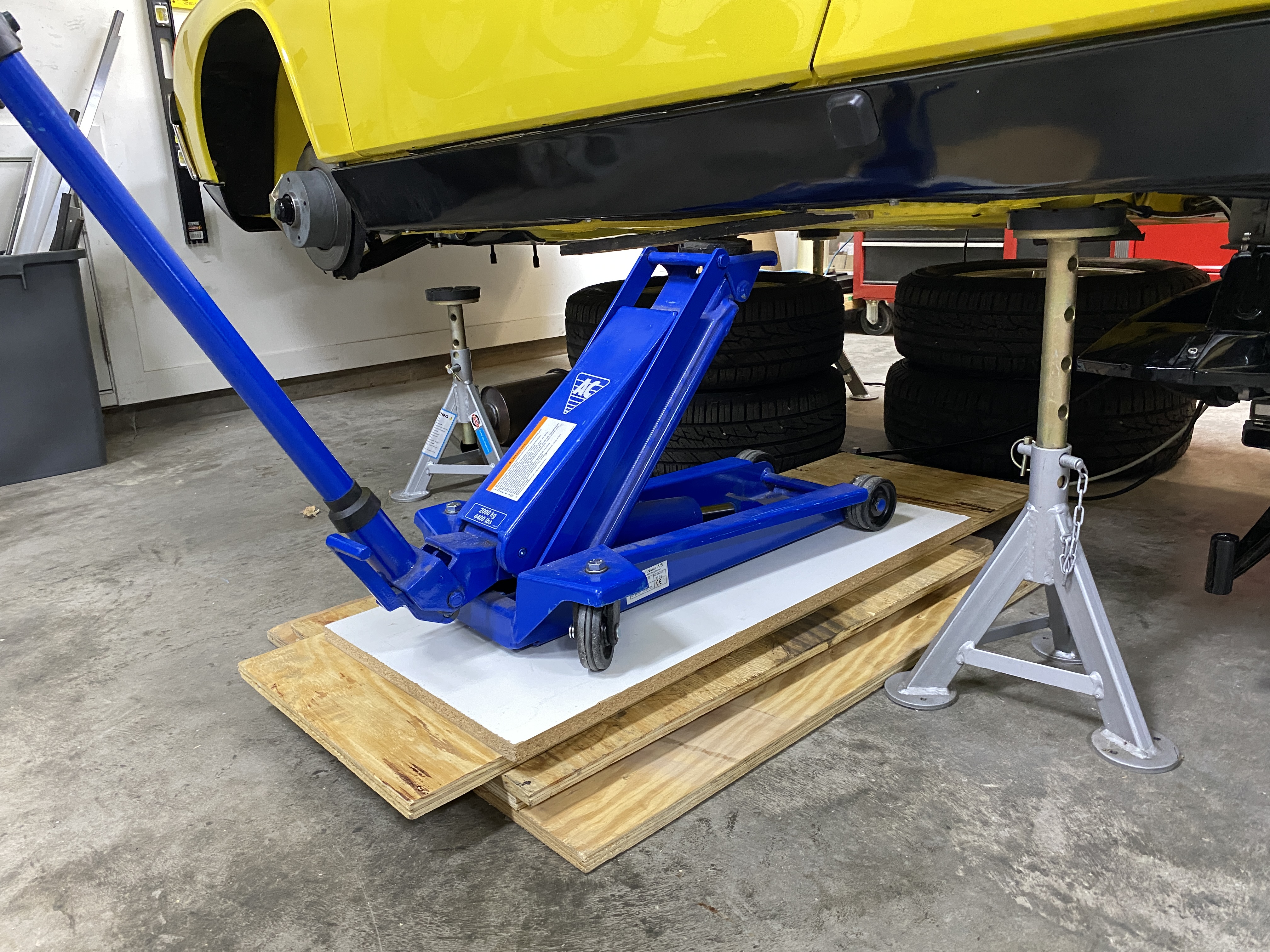 My solution to get another 2 inches of lift from my AC floor jack.