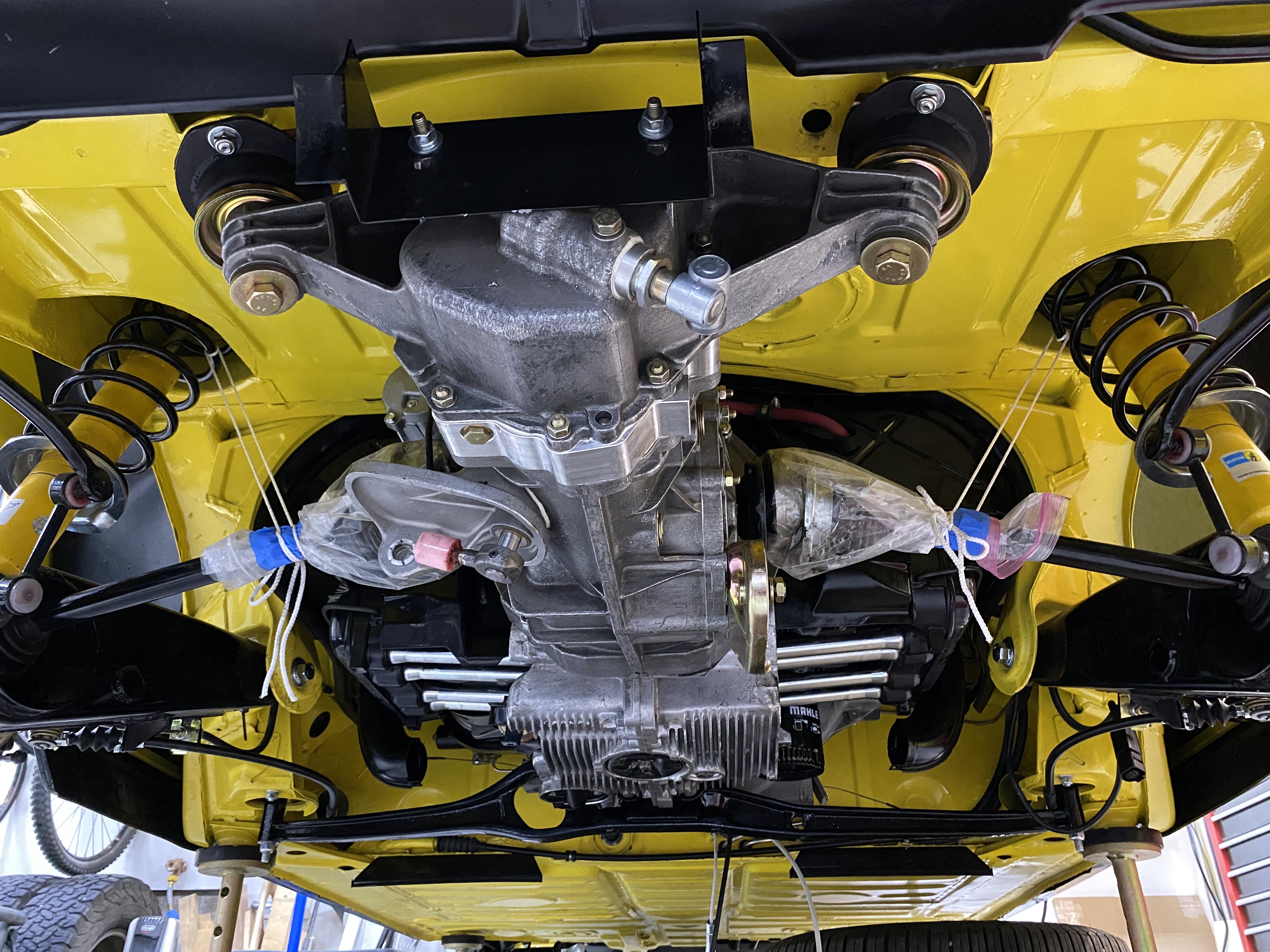 Step 7: bolt the engine and trans in place. Yay, back in again!