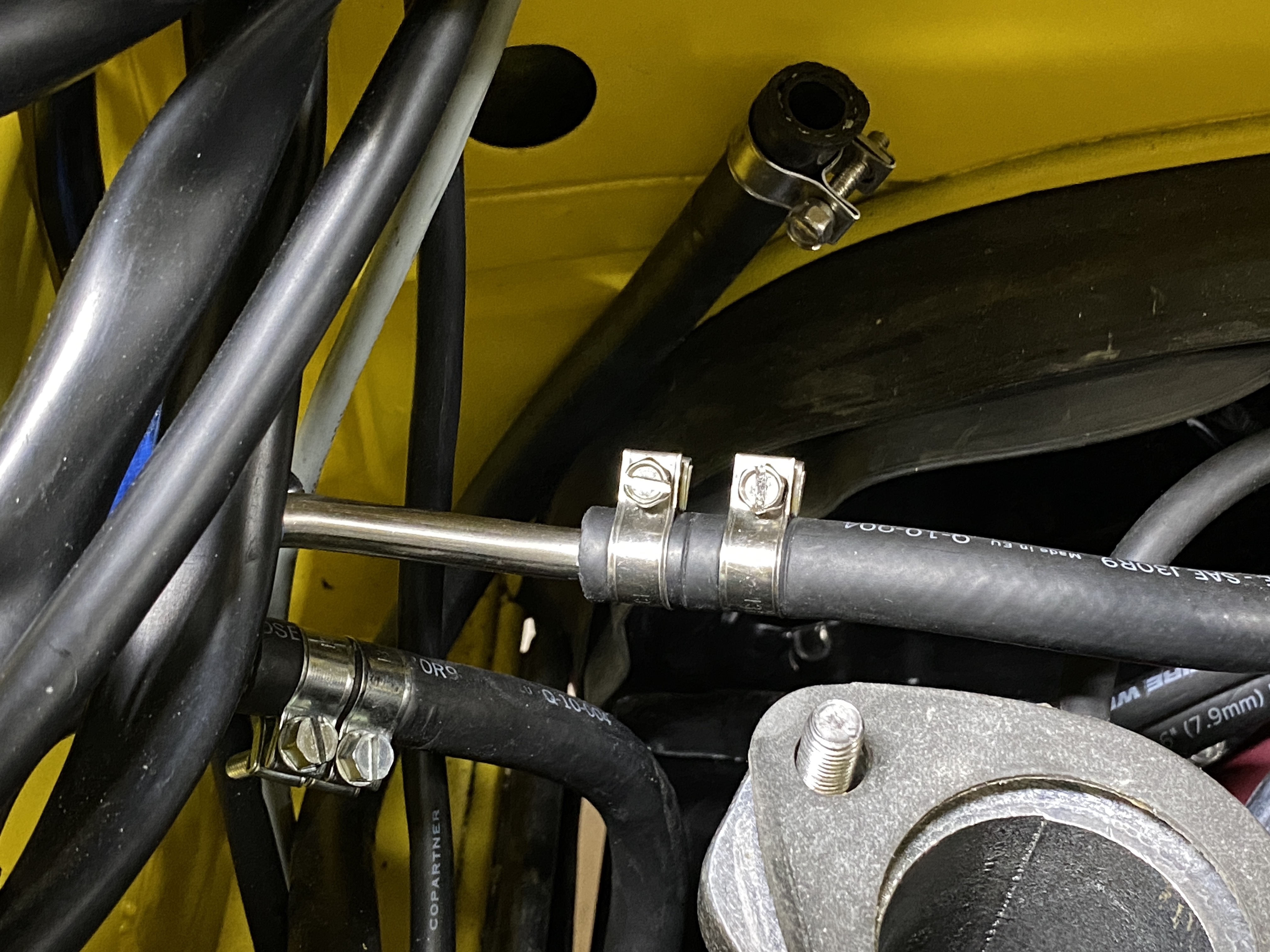 A good chance to connect the fuel lines, before bolting the right ITB in place. My preference is to double clamp all the connections where possible.