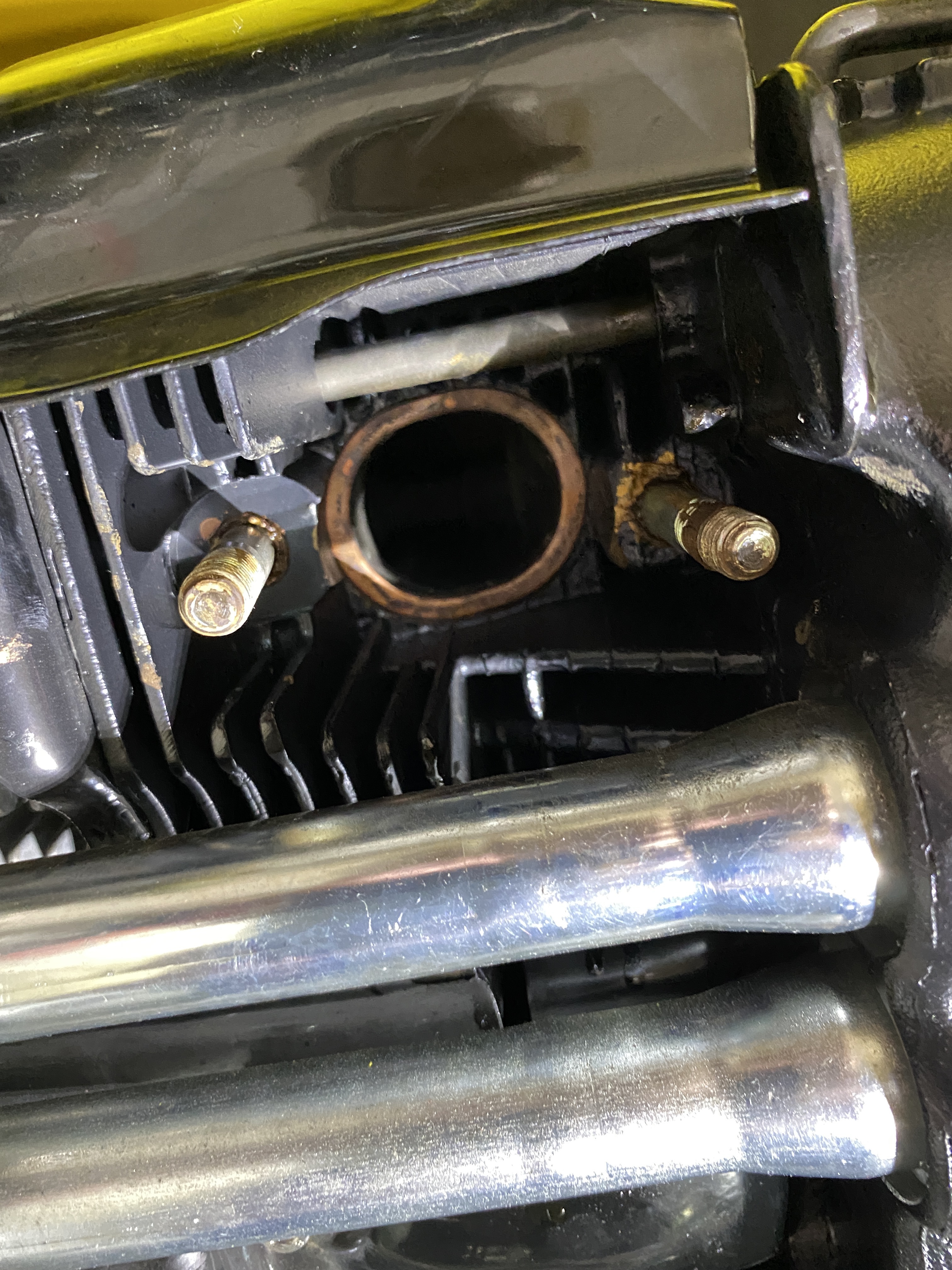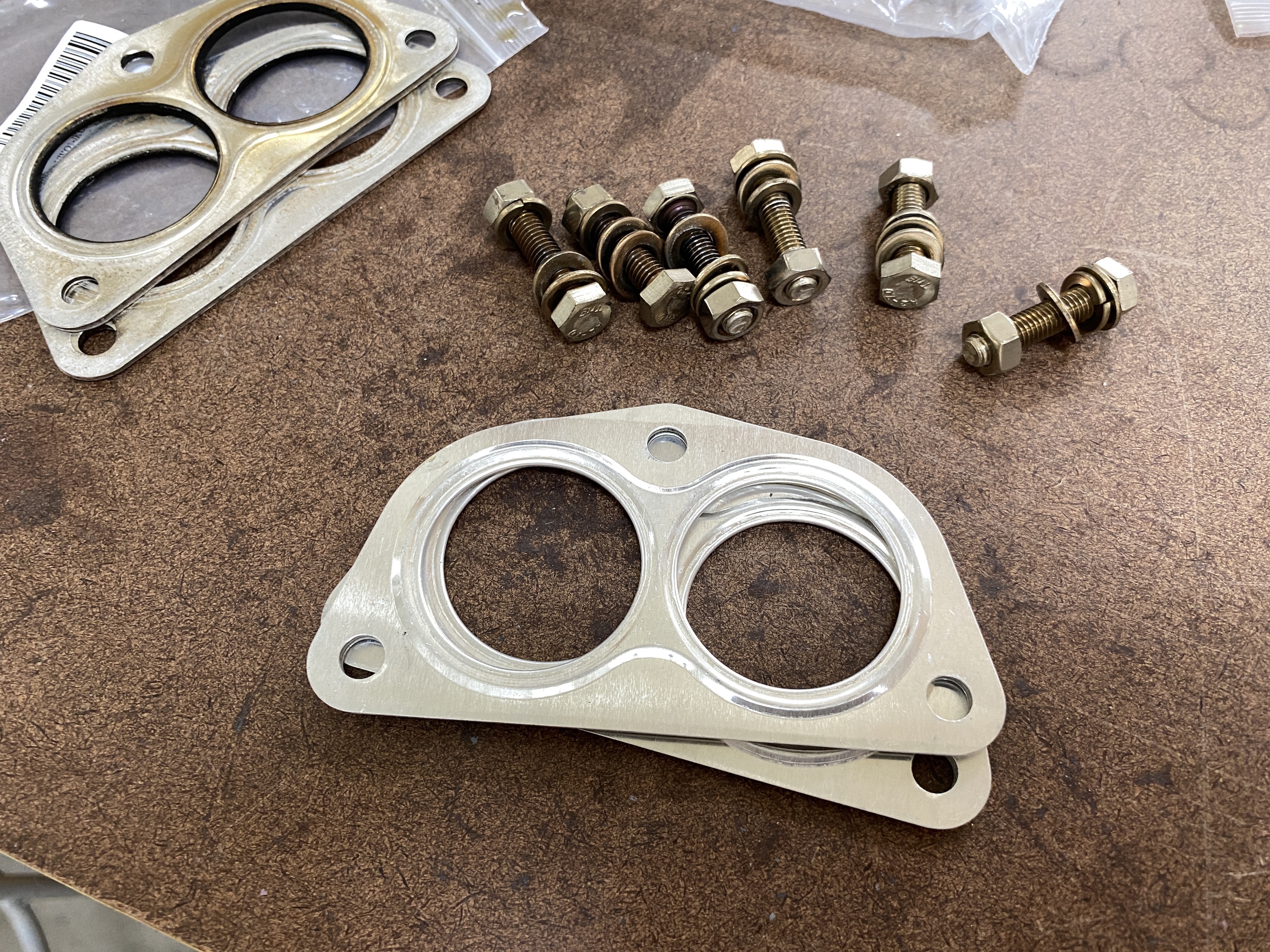 Ready for mounting the exhaust. The copper gaskets are new--the "dirt" is from heat treatment.