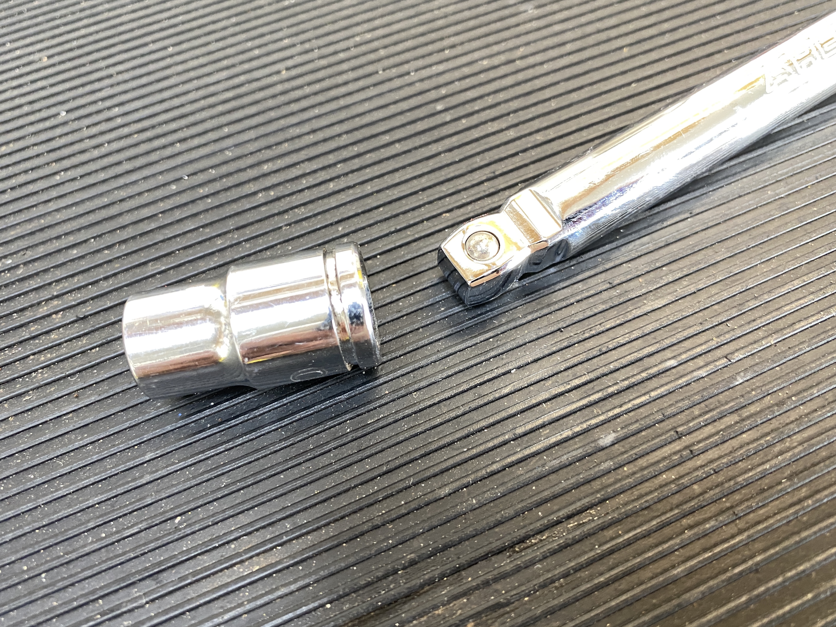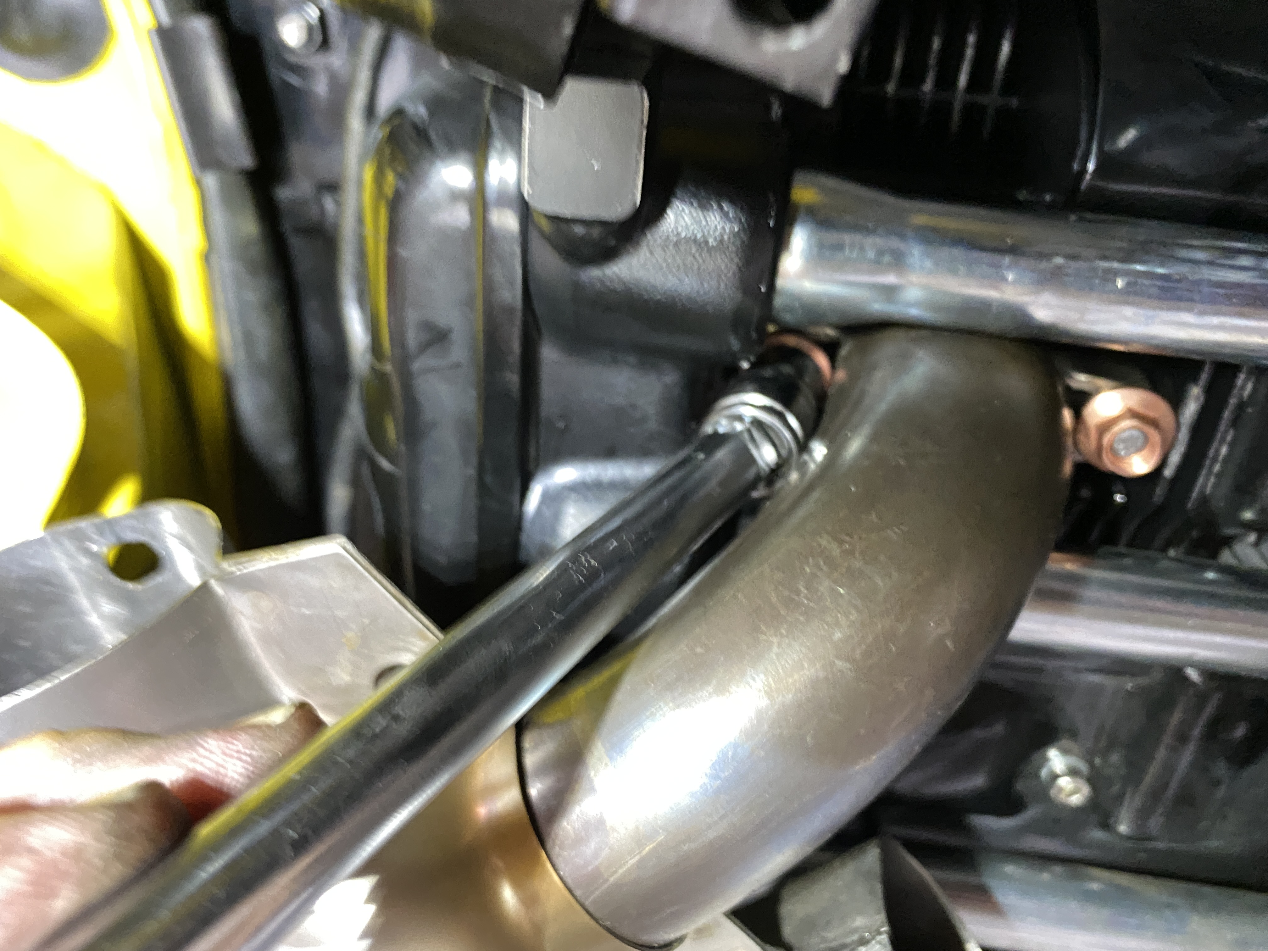 Just enough flex to reach past the exhaust tube.
