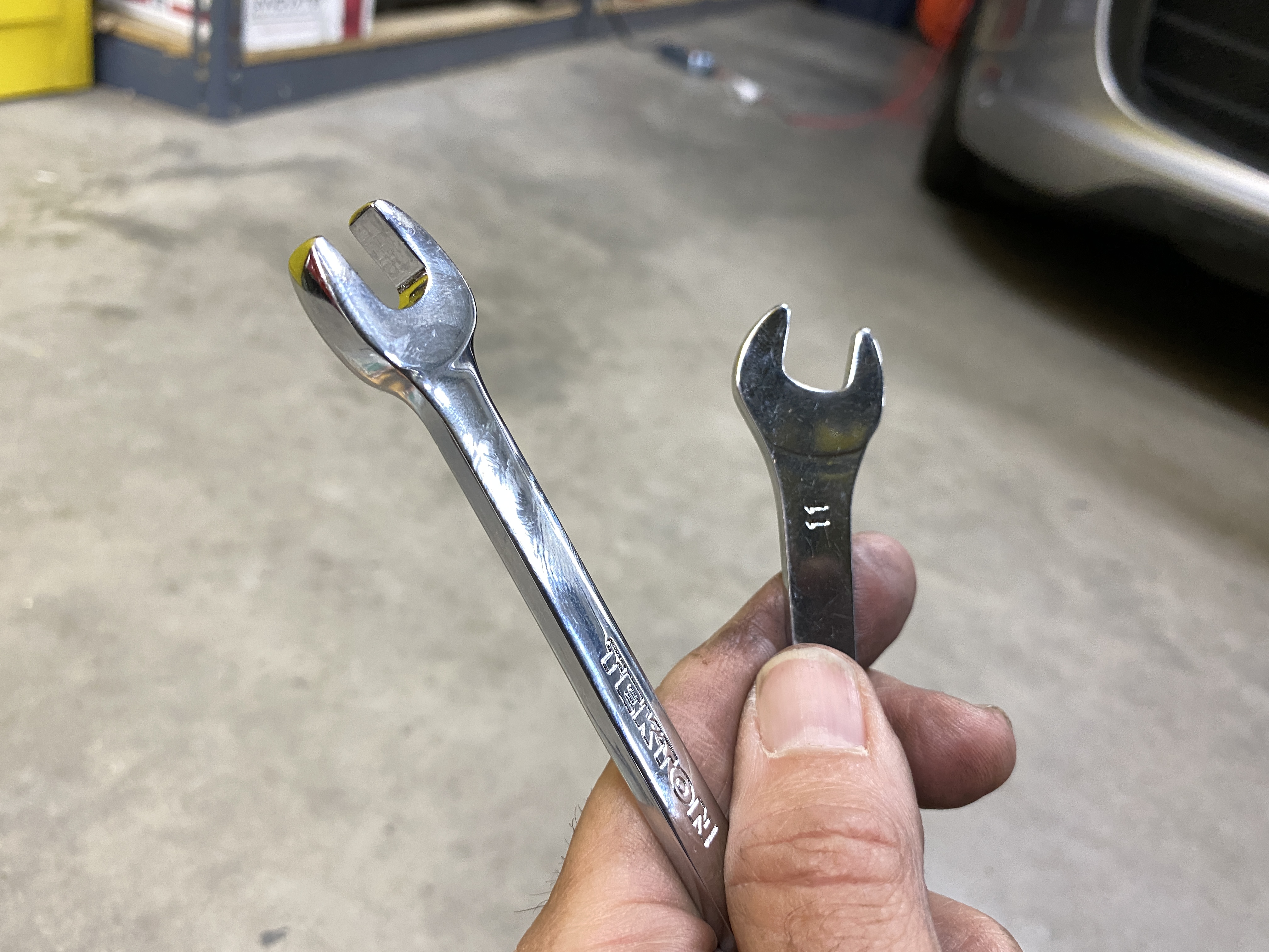 Then time for the clutch cable. That means getting out my 11mm wrenches, including the slim wrench, so I can adjust the cable nut and lock nut.
