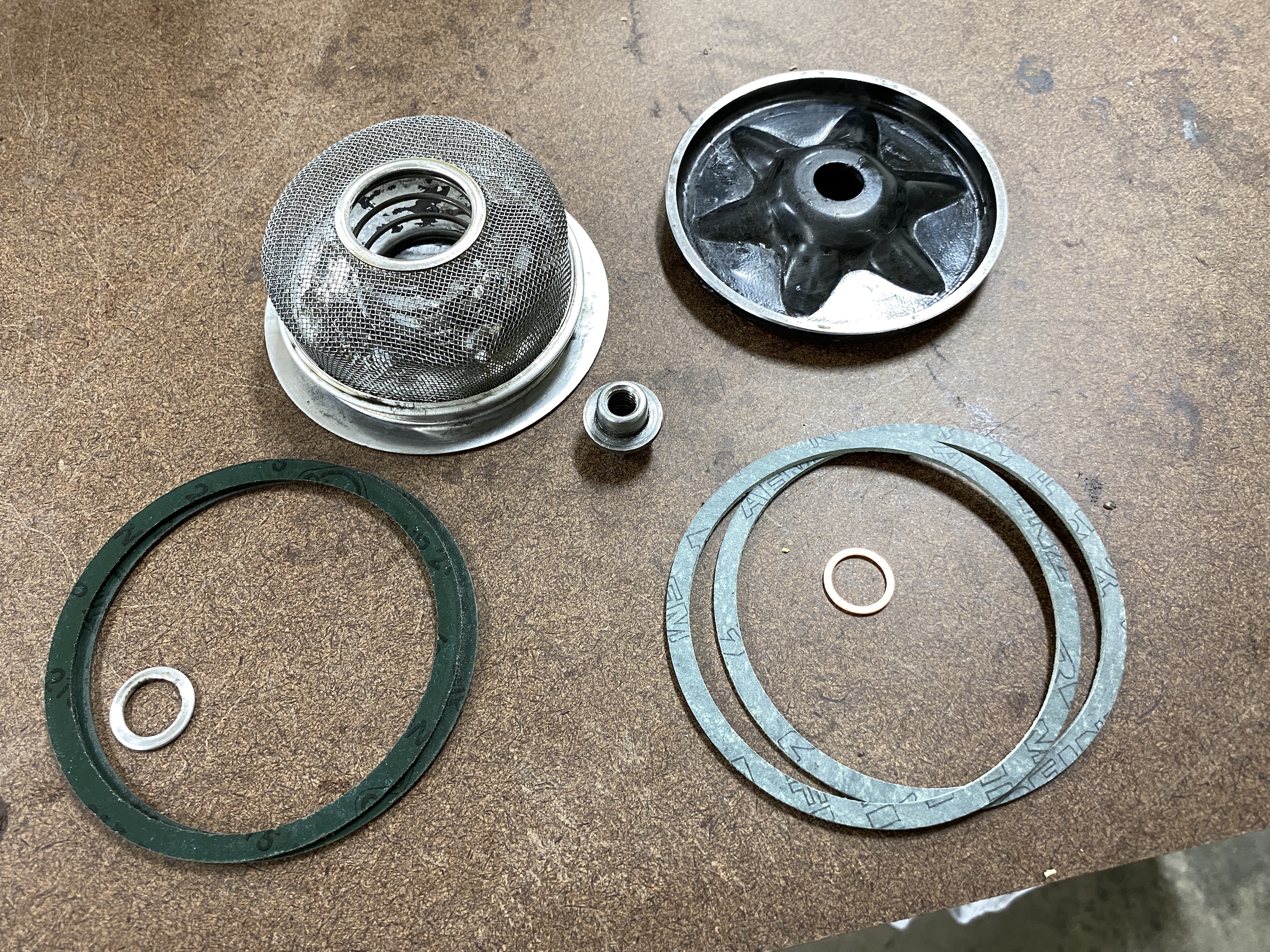 Before filling the case with new oil, I fixed one more potential leak--the strainer cover. It still oozes a drop, even with the case drained.