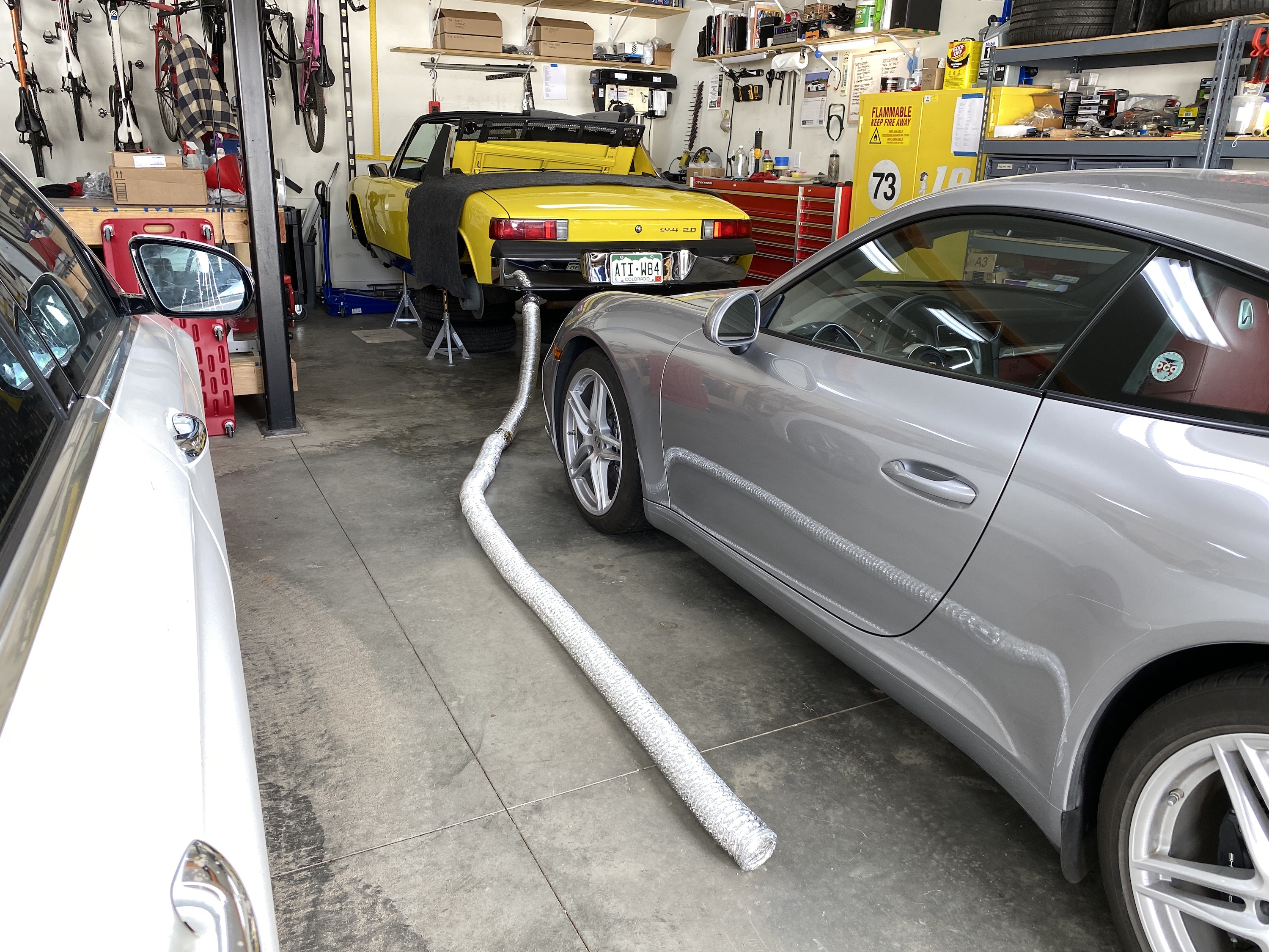 OK, time to try an engine start. I got out the exhaust extension I used last year. Kinda torn, and it only lasted about 10 minutes.