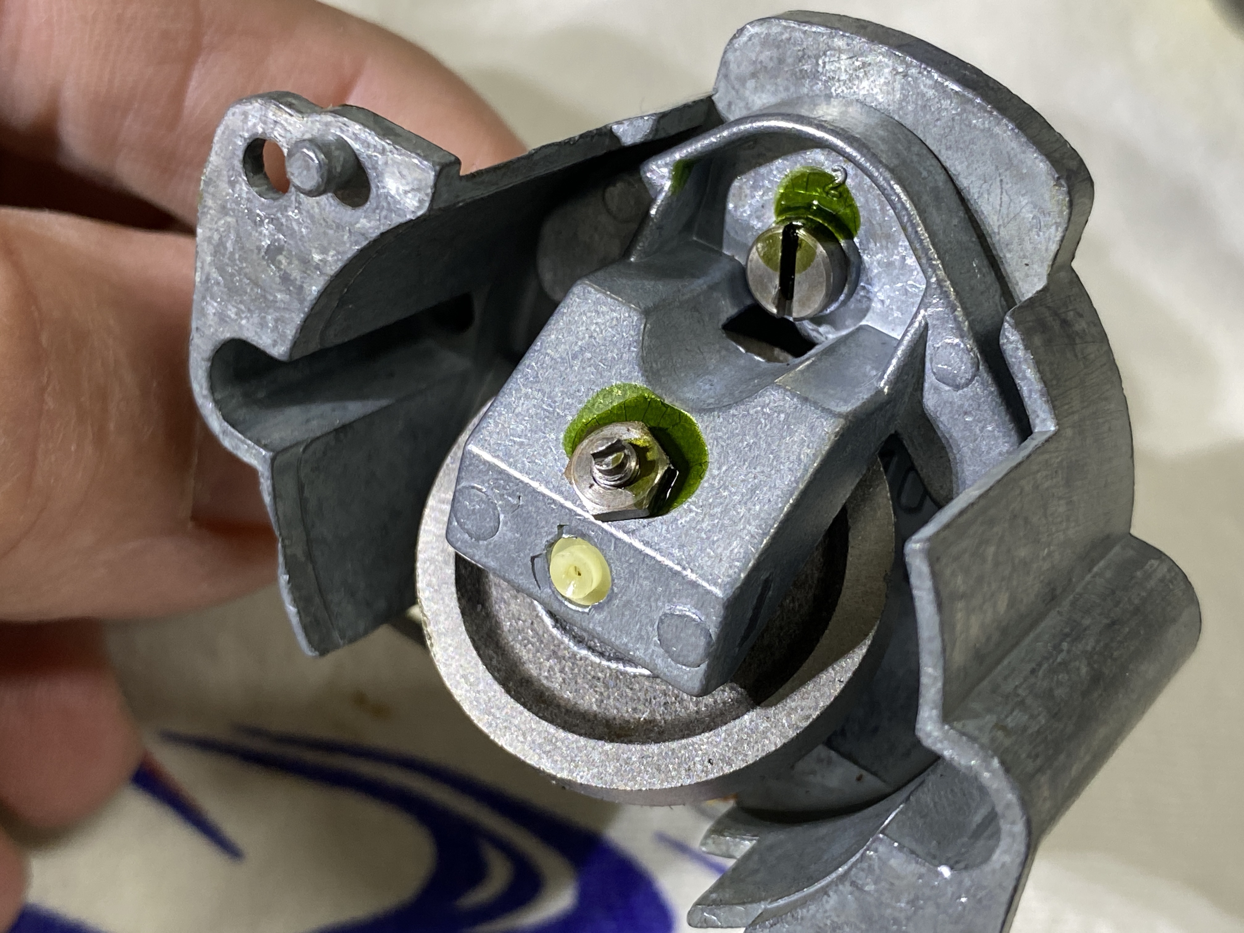 As best I can tell, this is the adjustment screw for the speedometer. But without the right equipment, I decided to put off trying to do something myself. I will live with having to subtract 5 mph from the indicated speed.