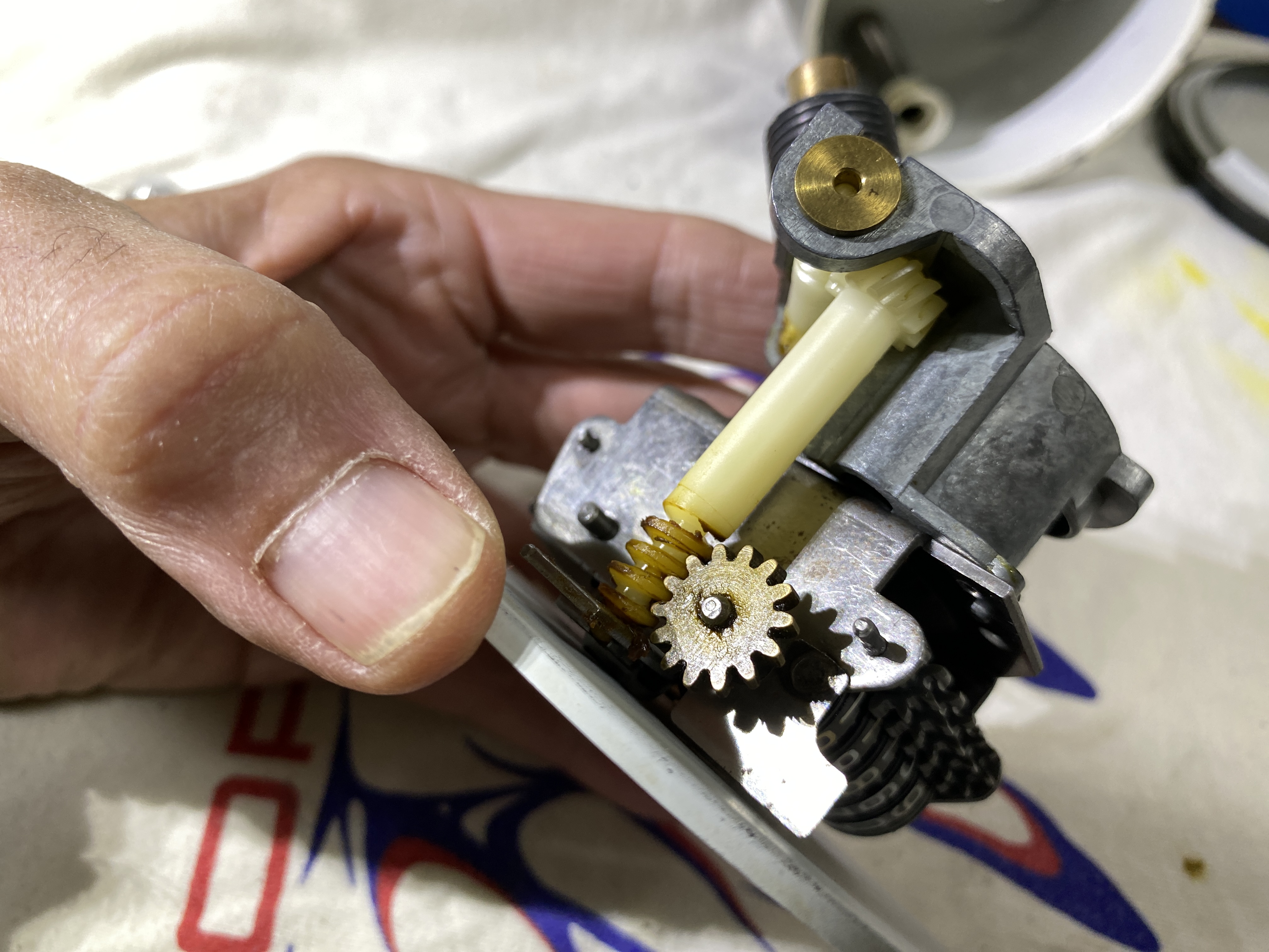 Reassembly: mount the speedo drive on the rest of the assembly, including the odometer drive shaft.