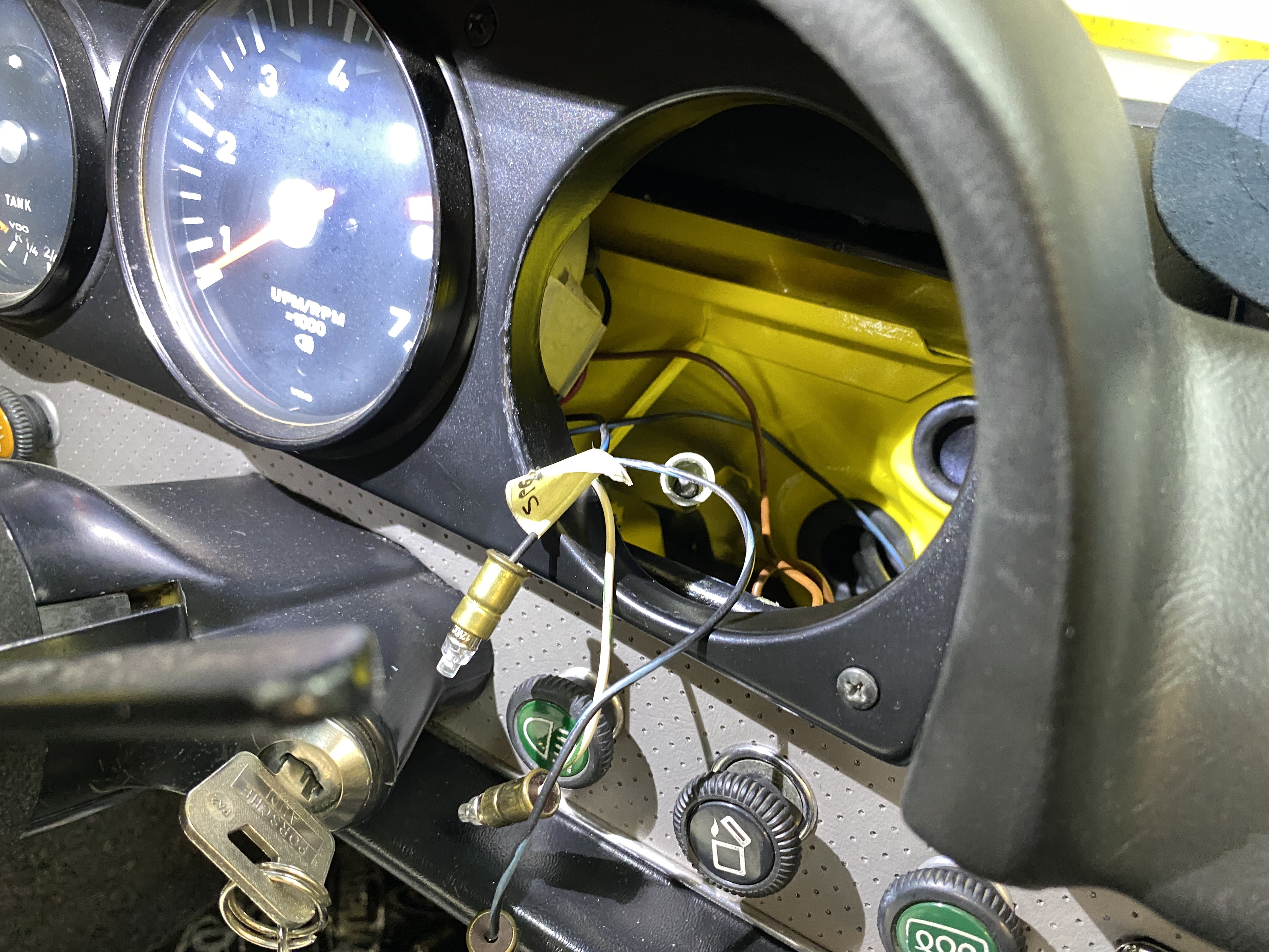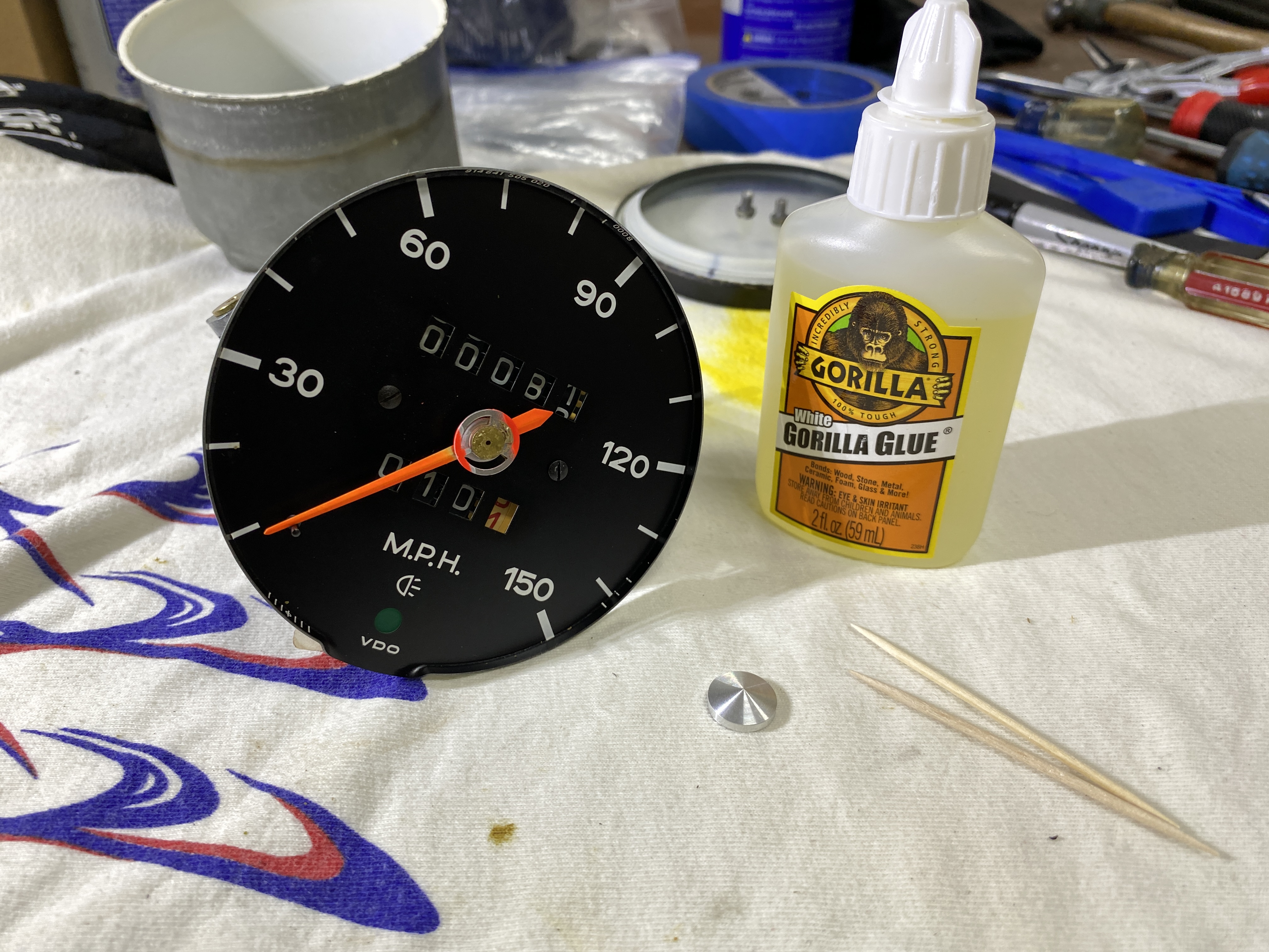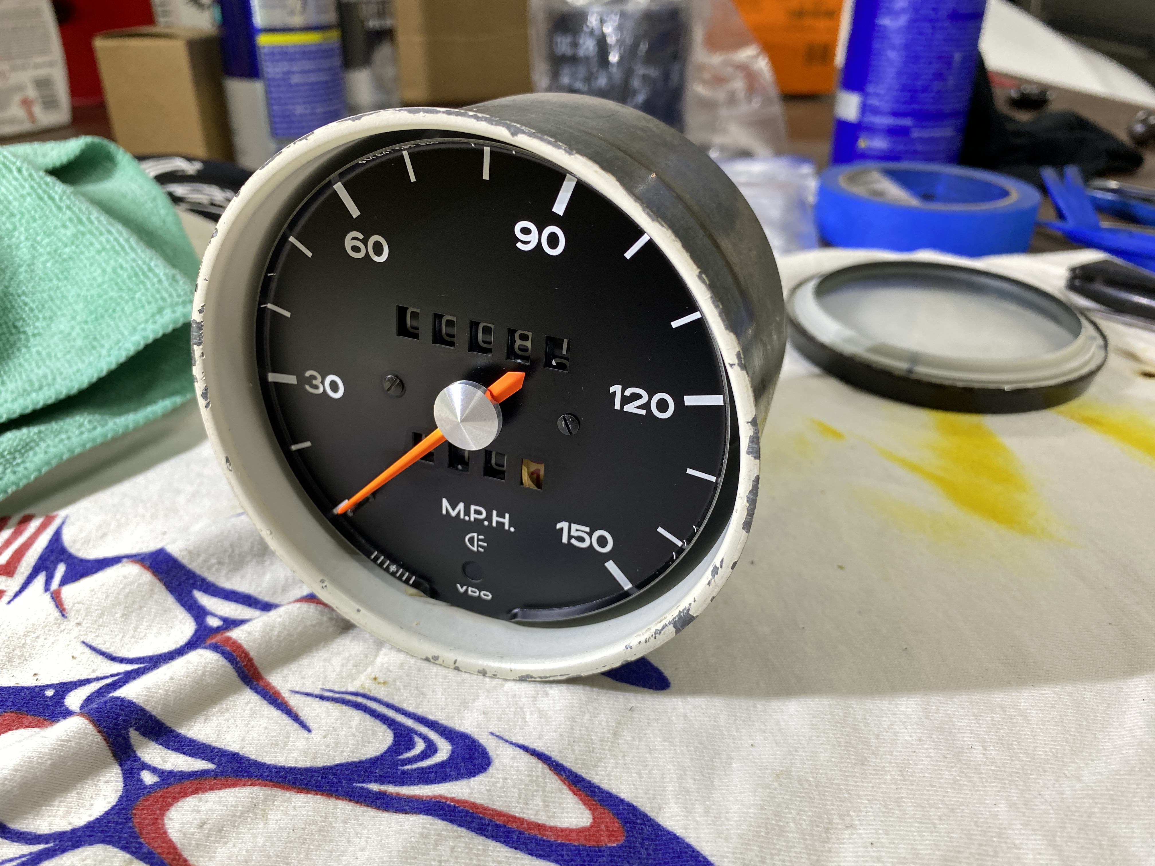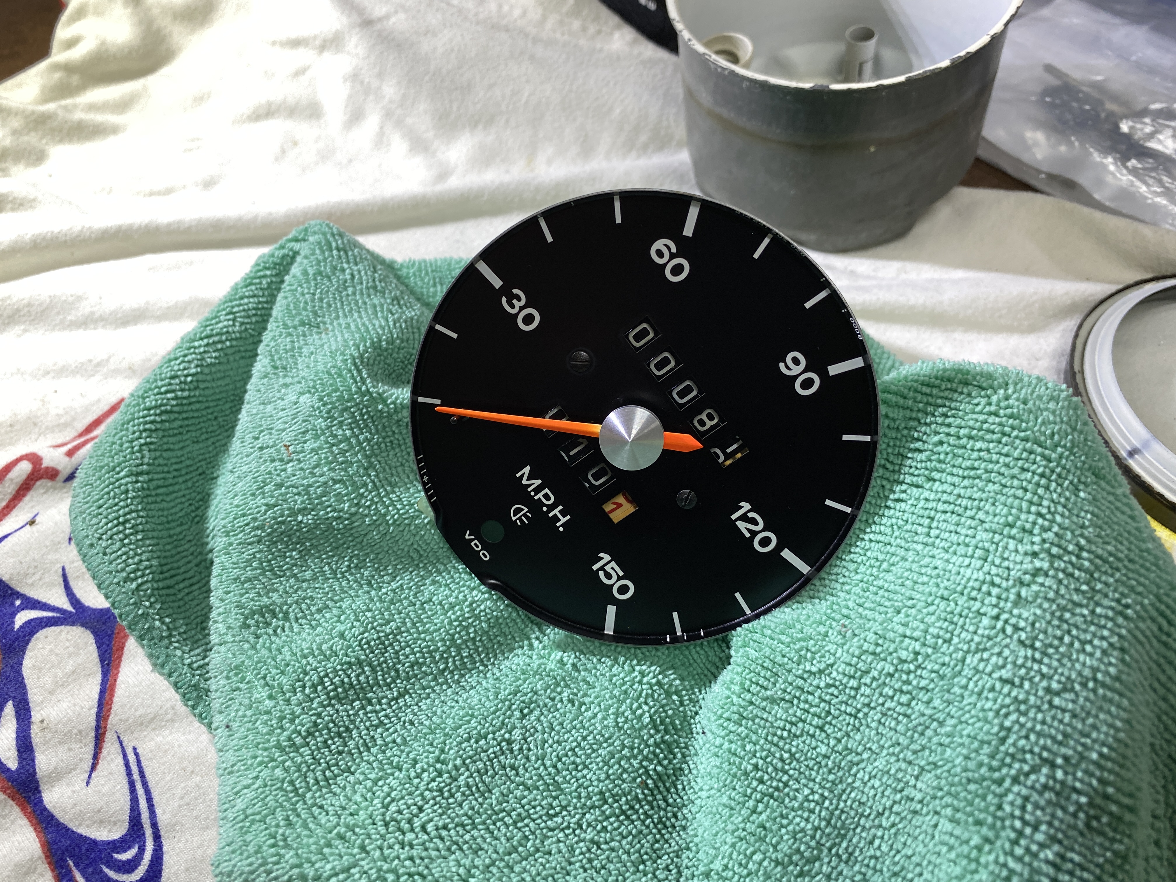 Speedometer installed. It sure looks clean. The tach does not look as bad as the photo shows, but I already feel the need to take the glass off and clean it.