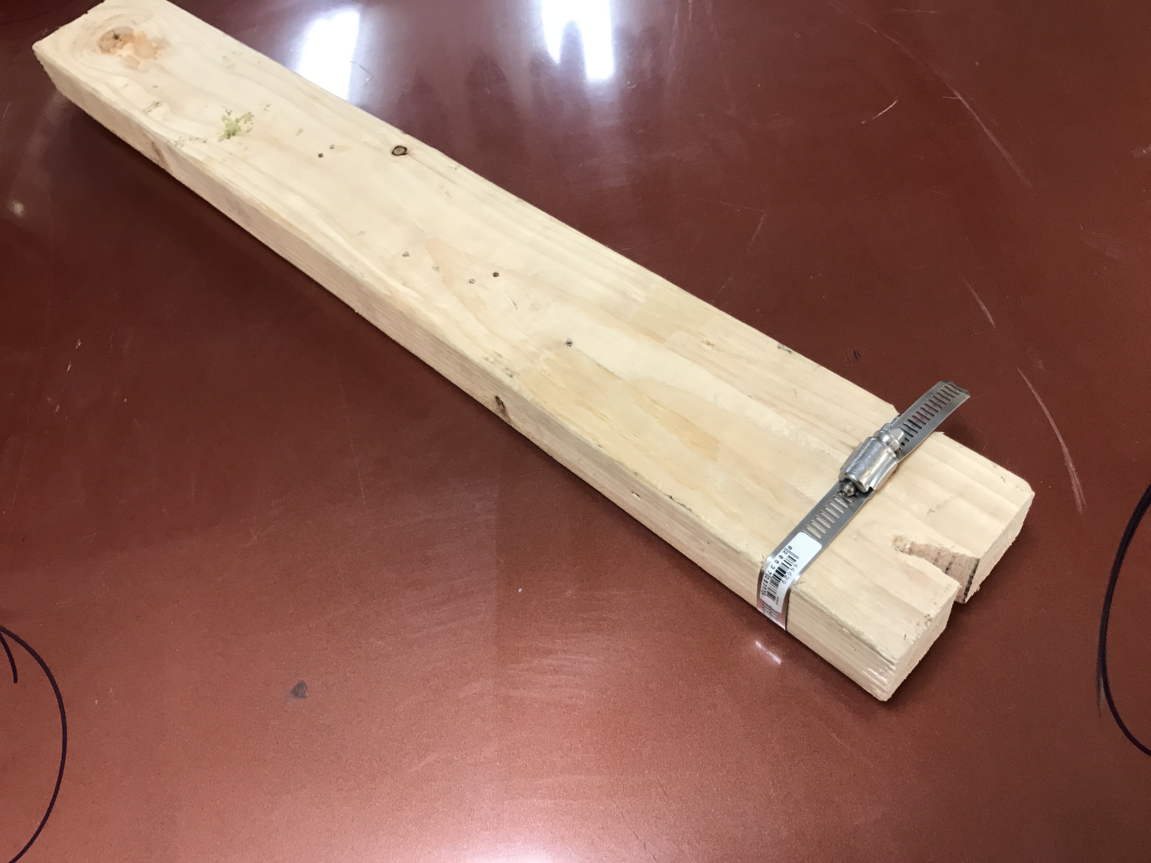 I worked more on the trunk lid today. First I made a tool to grab and pry the trailing edge. (some of the notch fell out during work--the clamp kept the 2x4 from splitting)