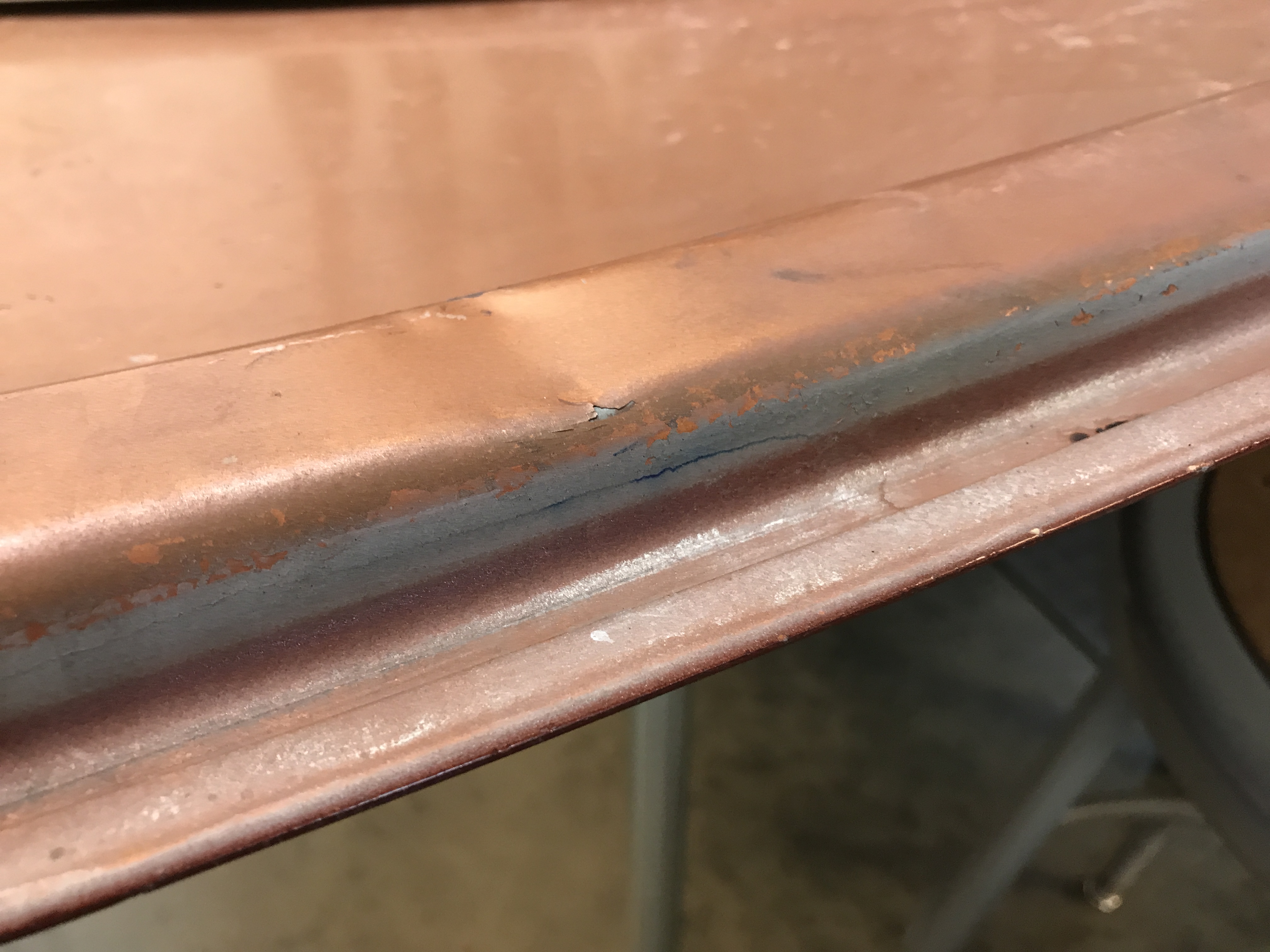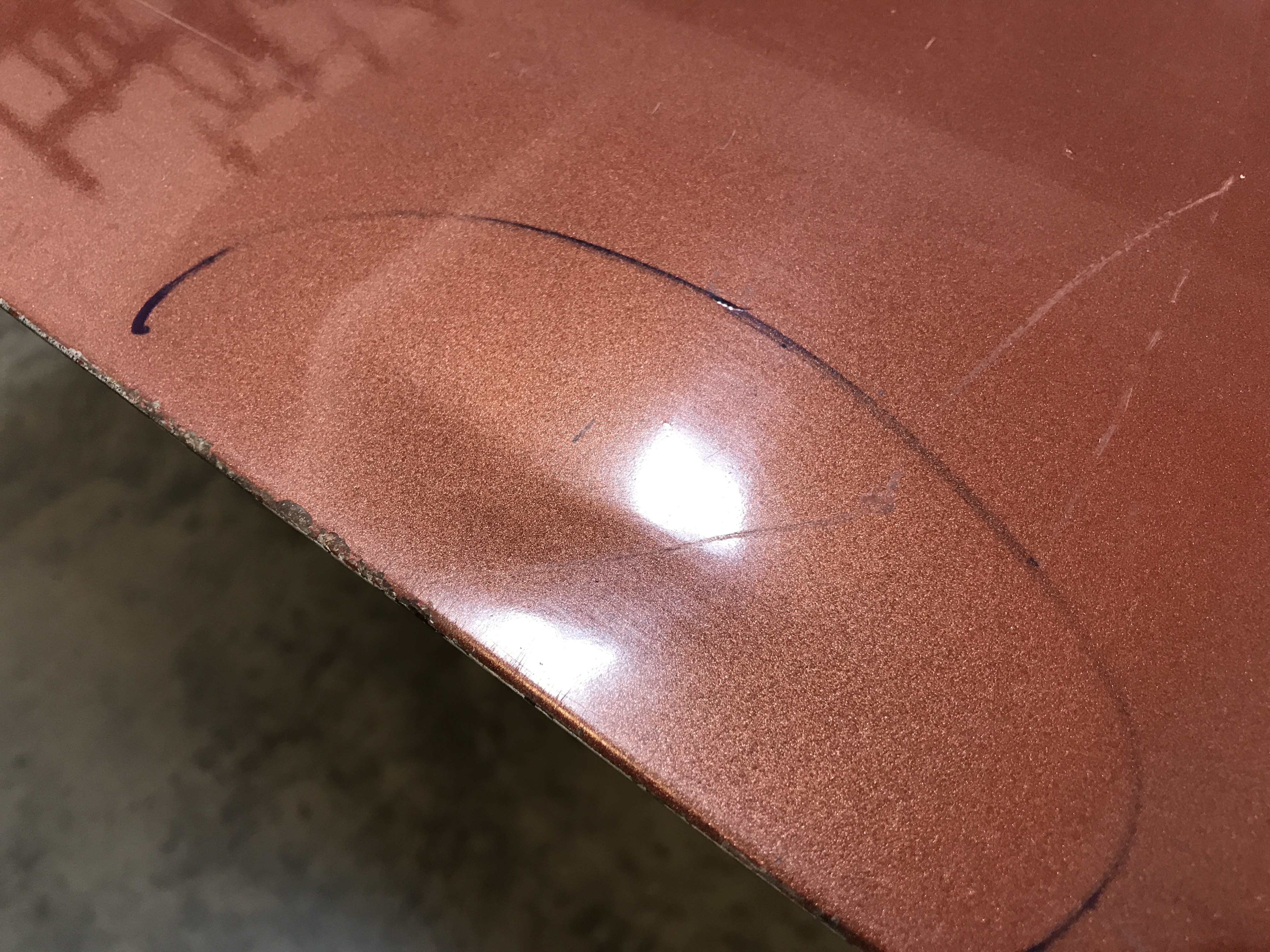 After some gentle prying, plus some more hammer work with a soft-face mallet, I got the edge close to straight, and equally distant from the rear panel along the arc.