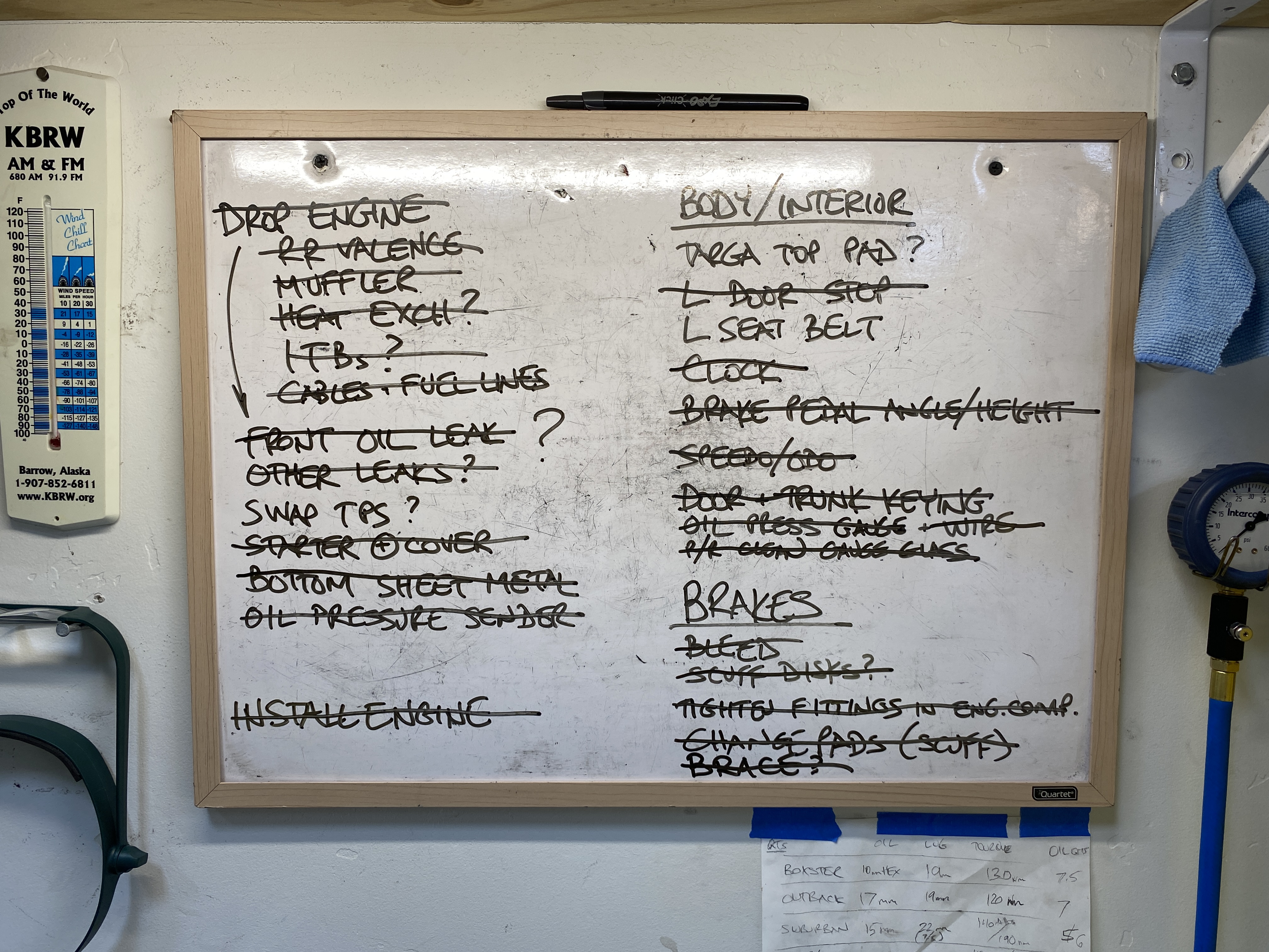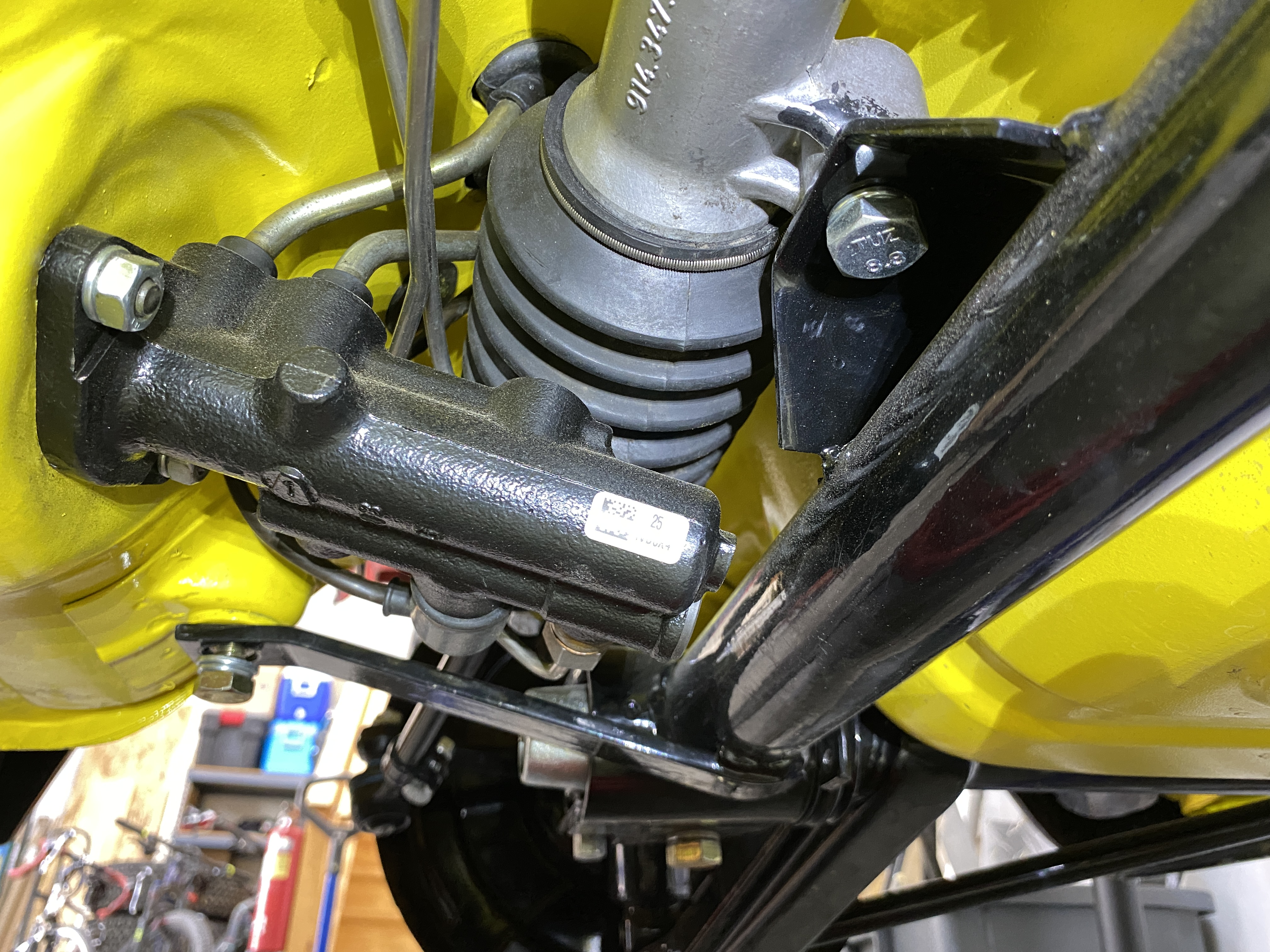 Still thinking about the somewhat weak brake performance from last summer, I remembered to see how much flex the master cylinder shows with the pedal pushed hard. With me in the car and my wife looking in from the side, I pushed and she said "It moves!"