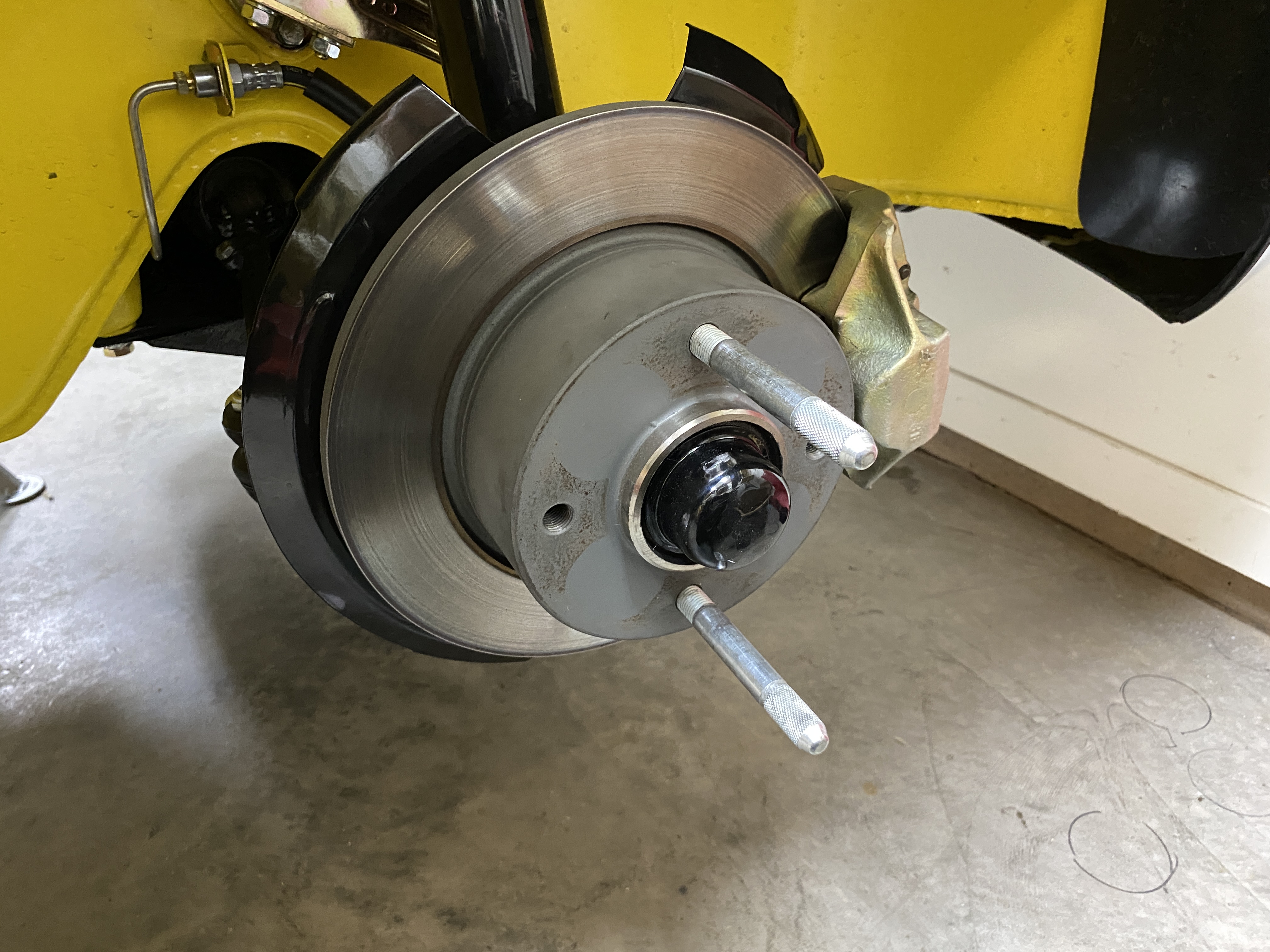 Time to put the wheels on--got out the mounting lugs, even though those little 914 Fuchs wheels are nice and light.